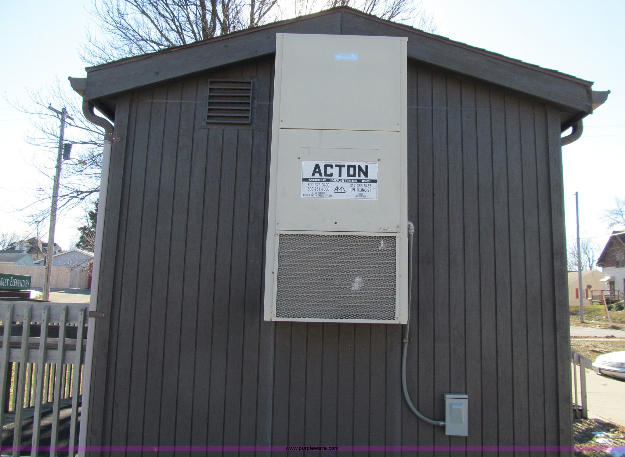 Purple Wave is selling a used Manufactured Home or Office in Iowa. This item is a Action Mobile Industries portable classroom with the following: Approx. 25'L x 10'W, Electric heat, Emergency lighting, Skirting steps, and ramps included, Iowa Certification 90-4632MOD, Running gear available but unattached, Contents not included, Serial 4193