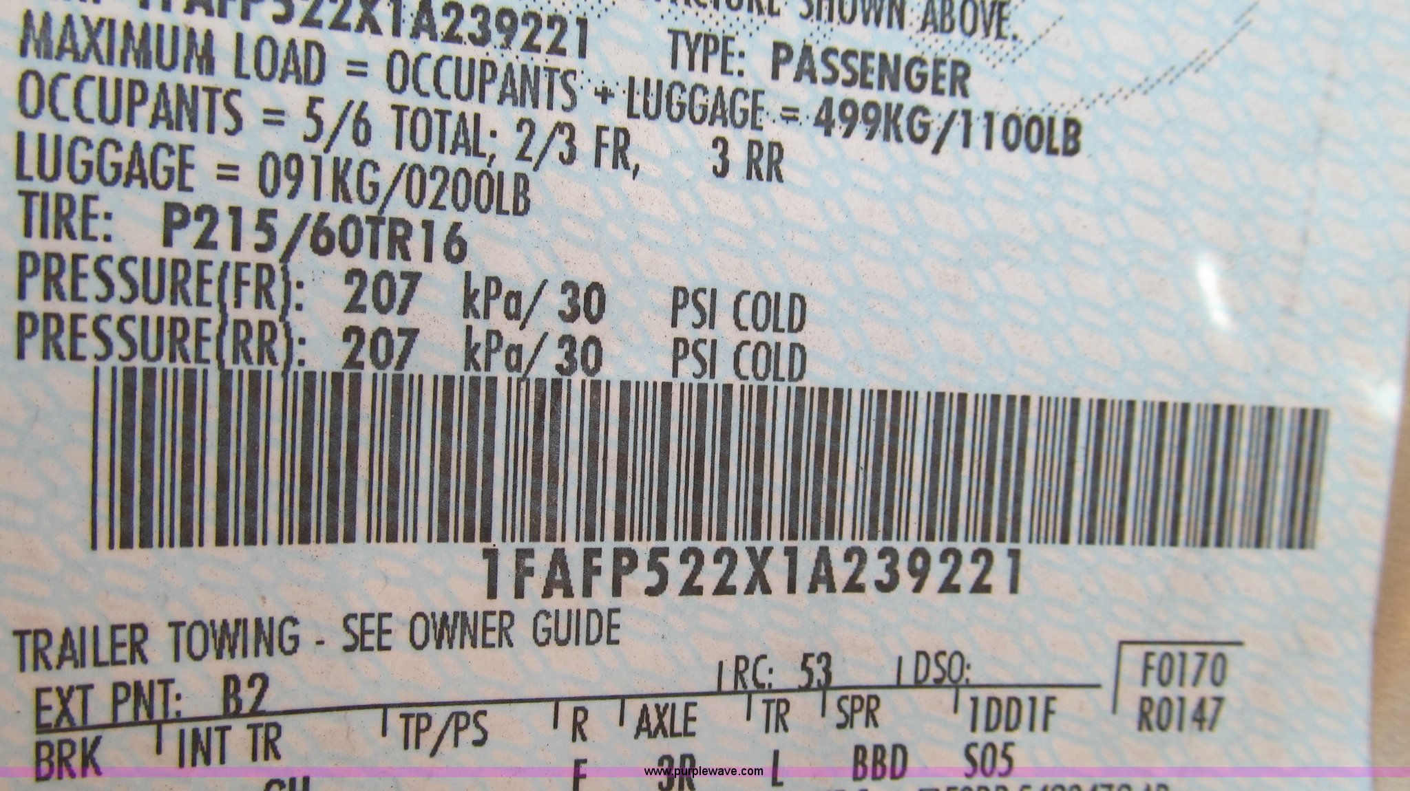 2001 Ford Taurus LX. 126,172 miles on odometer, 3.0L V6 OHV 12V FFV gas engine, Automatic transmission, AC and heat, Tilt, Cruise, AM/FM, Power windows and locks, Cloth interior, 215/60R16 tires, Exterior cosmetic damage, Unit# B5072. 1FAFP522X1A239221. Shipping quotes available. Missouri Department of Transportation - Central District. 1511 Missouri Blvd.. Jefferson City, MO 65102
