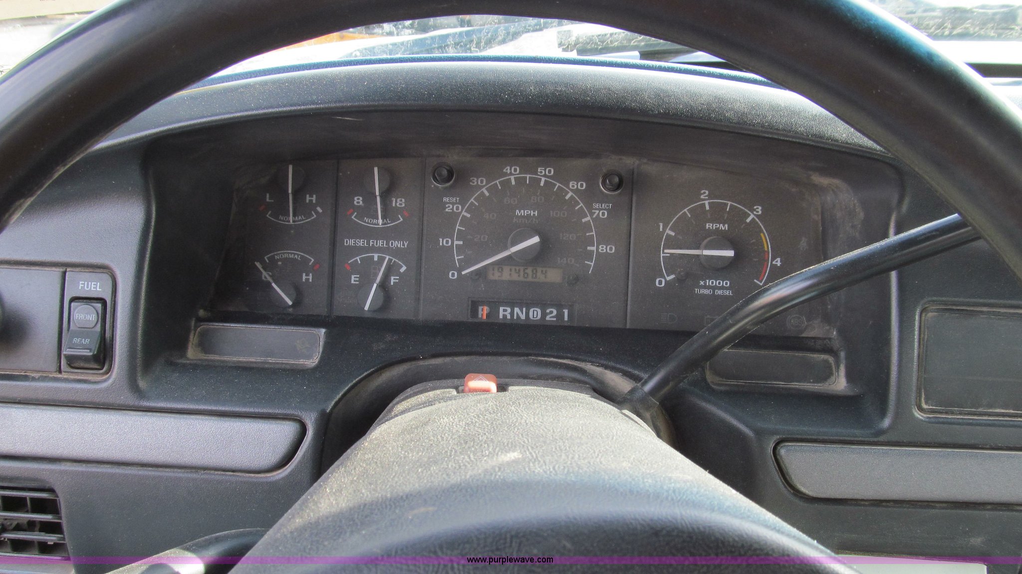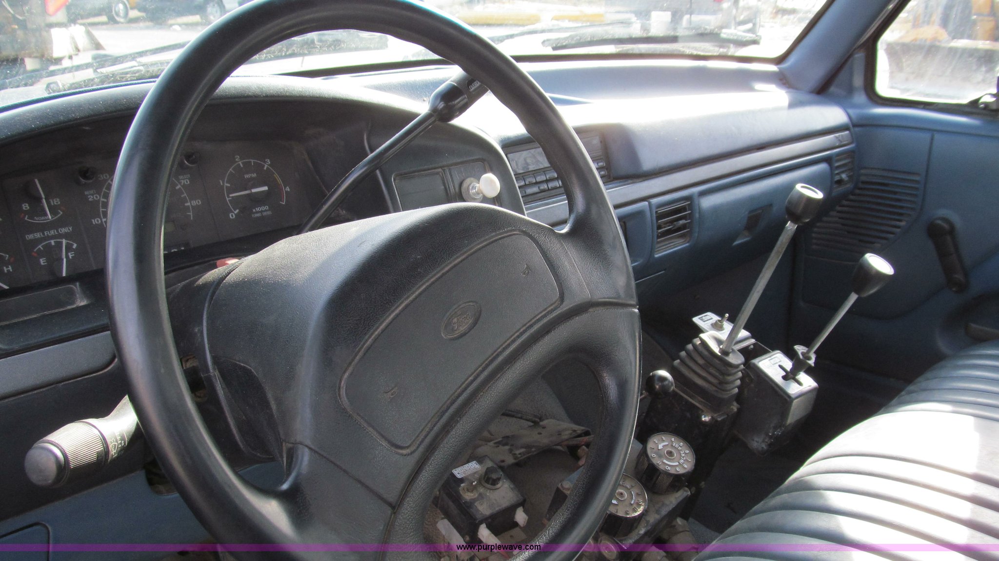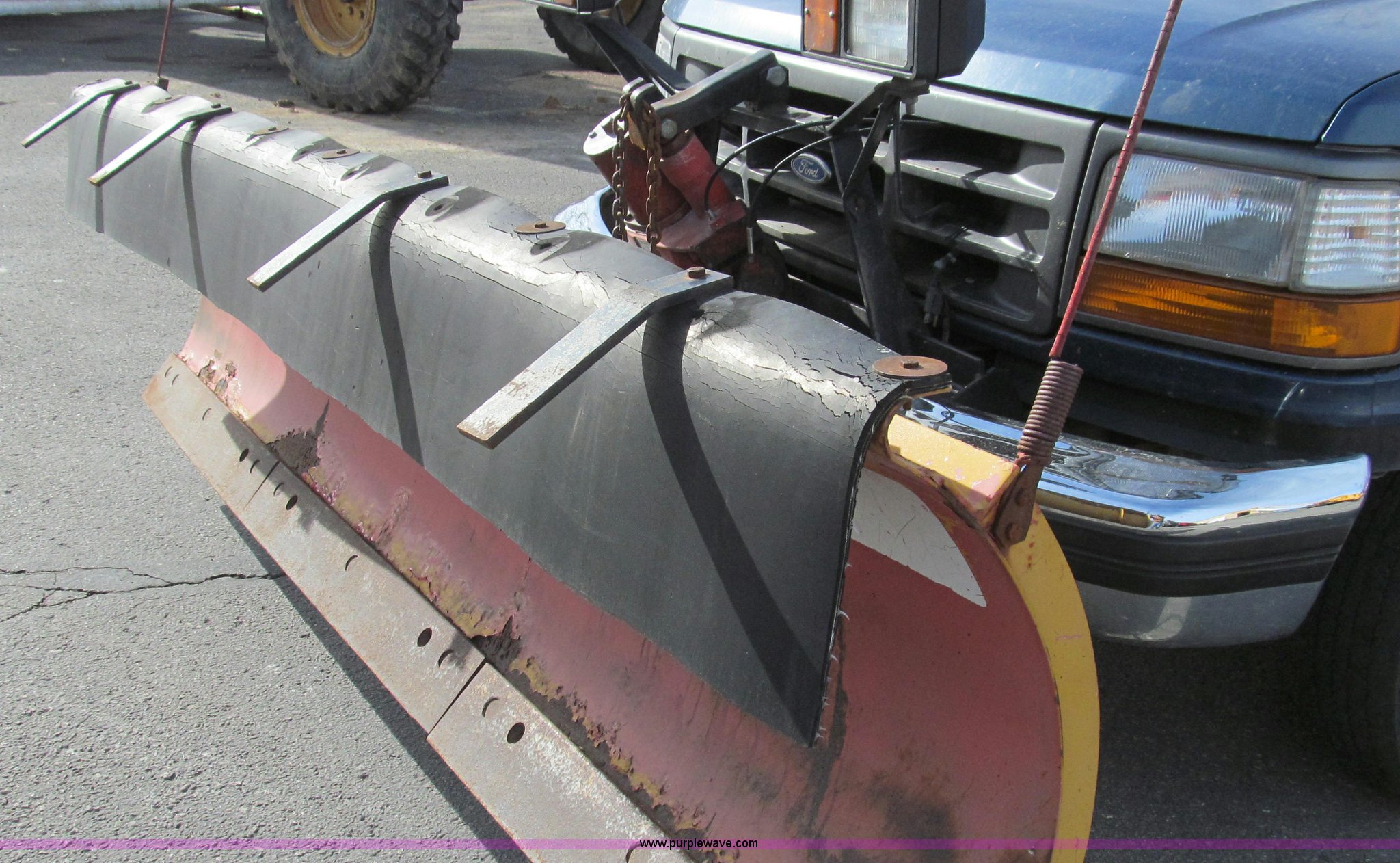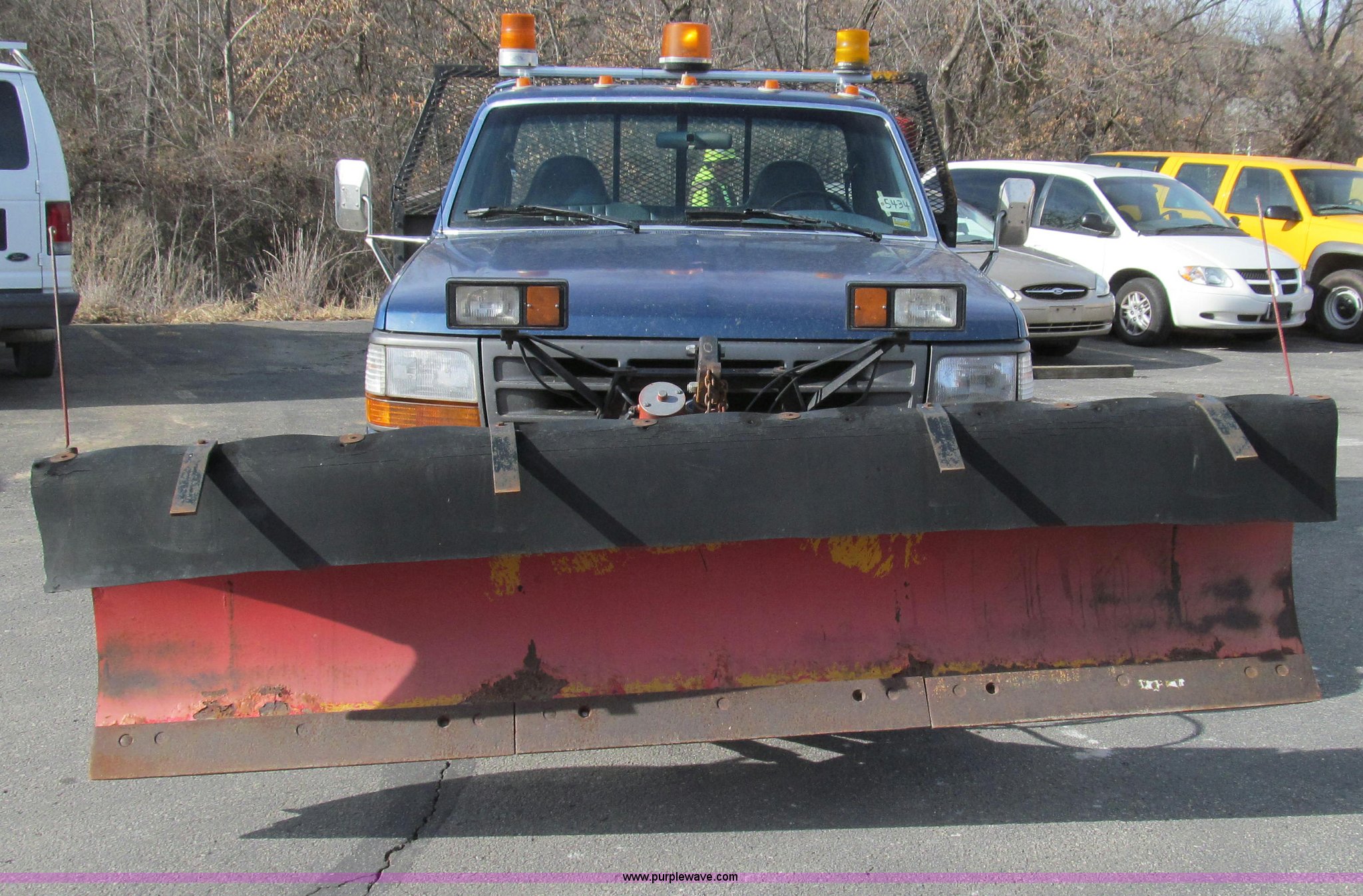 Purple Wave is selling a used Passenger Vehicle in Missouri. This item is a 1995 Ford F350 XL flatbed truck with the following: 191,468 miles on odometer, 7.3L V8 OHV 16V turbo diesel engine, Automatic transmission, AC and heat, AM/FM, Manual windows and locks, Vinyl interior, Reading 8' flat bed with hoist, Rear hydraulic outlets, Western 9' front mounted snow plow, Raise and lower inoperable, Sliding rear window, LT215/85R16 tires, Exterior cosmetic damage, Front fenders are rusted, Chip in windshield, Unit# 5434