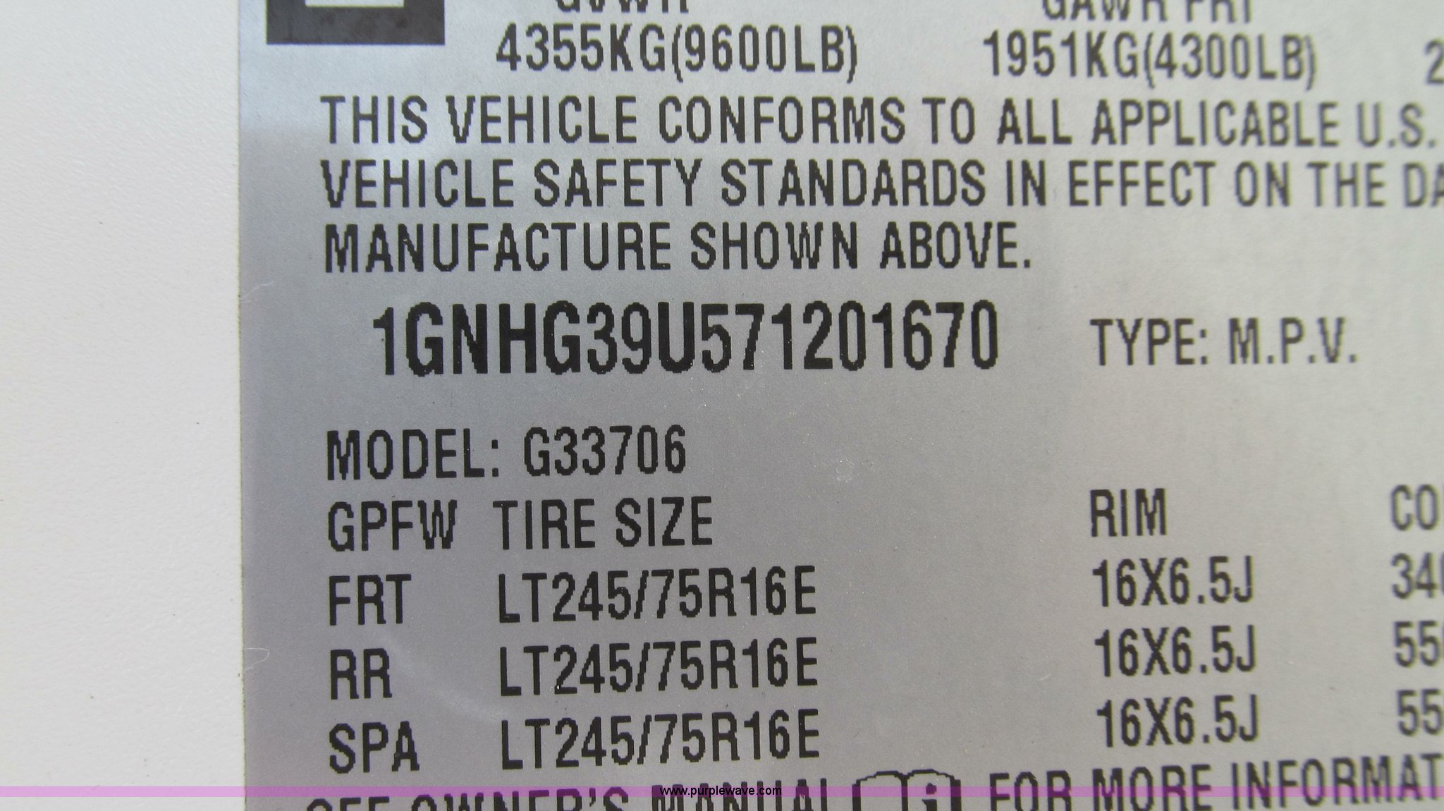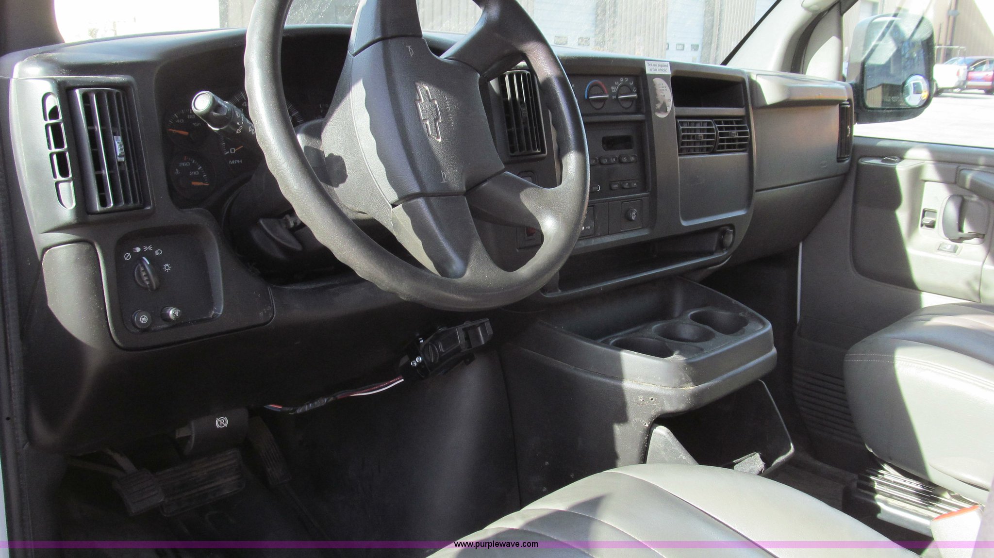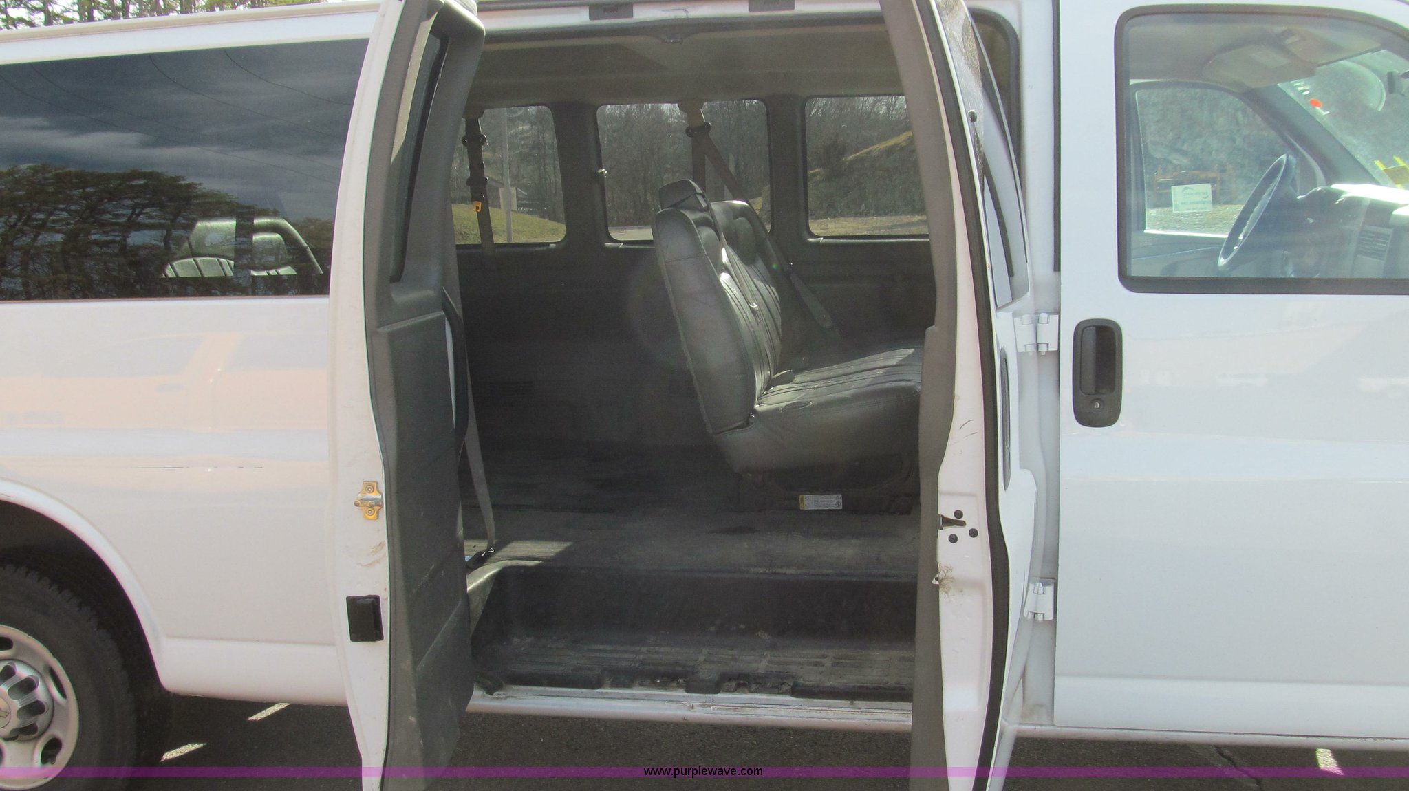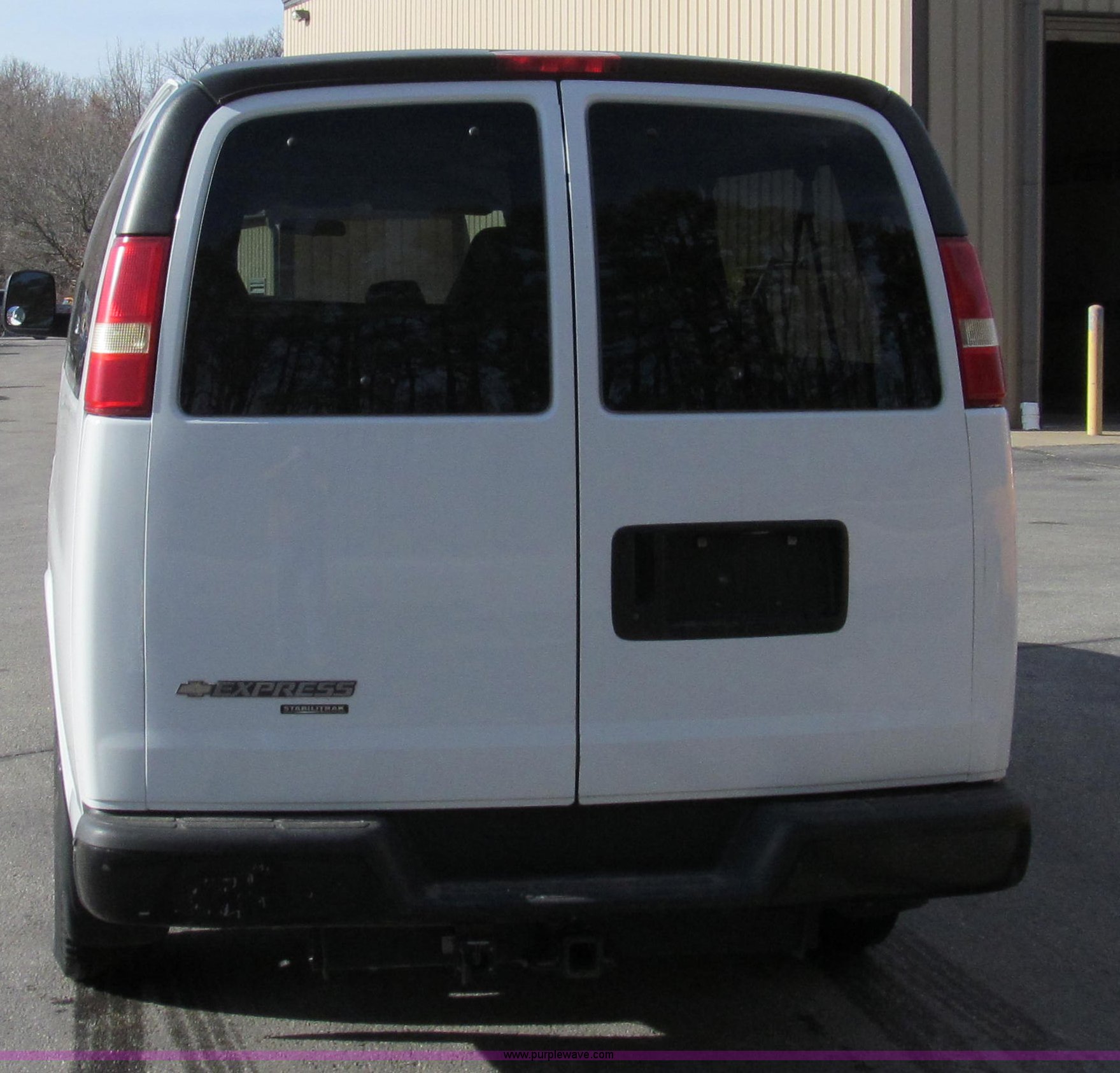 Purple Wave is selling a used Passenger Vehicle in Missouri. This item is a 2007 Chevrolet Express G3500 van with the following: 164,946 miles on odometer, 6.0L V8 OHV 16V gas engine, Automatic transmission, AC and heat, Tilt, Cruise, AM/FM, Power windows and locks, Vinyl interior, Brake controller, Receiver hitch, Trailer wiring, LT245/75R16 tires, GVWR 9,600 lbs, Paint peeling on hood, Exterior cosmetic damage, Third row seat is missing, Front and rear bumper damage, Rear heat unhooked, Unit# 7934