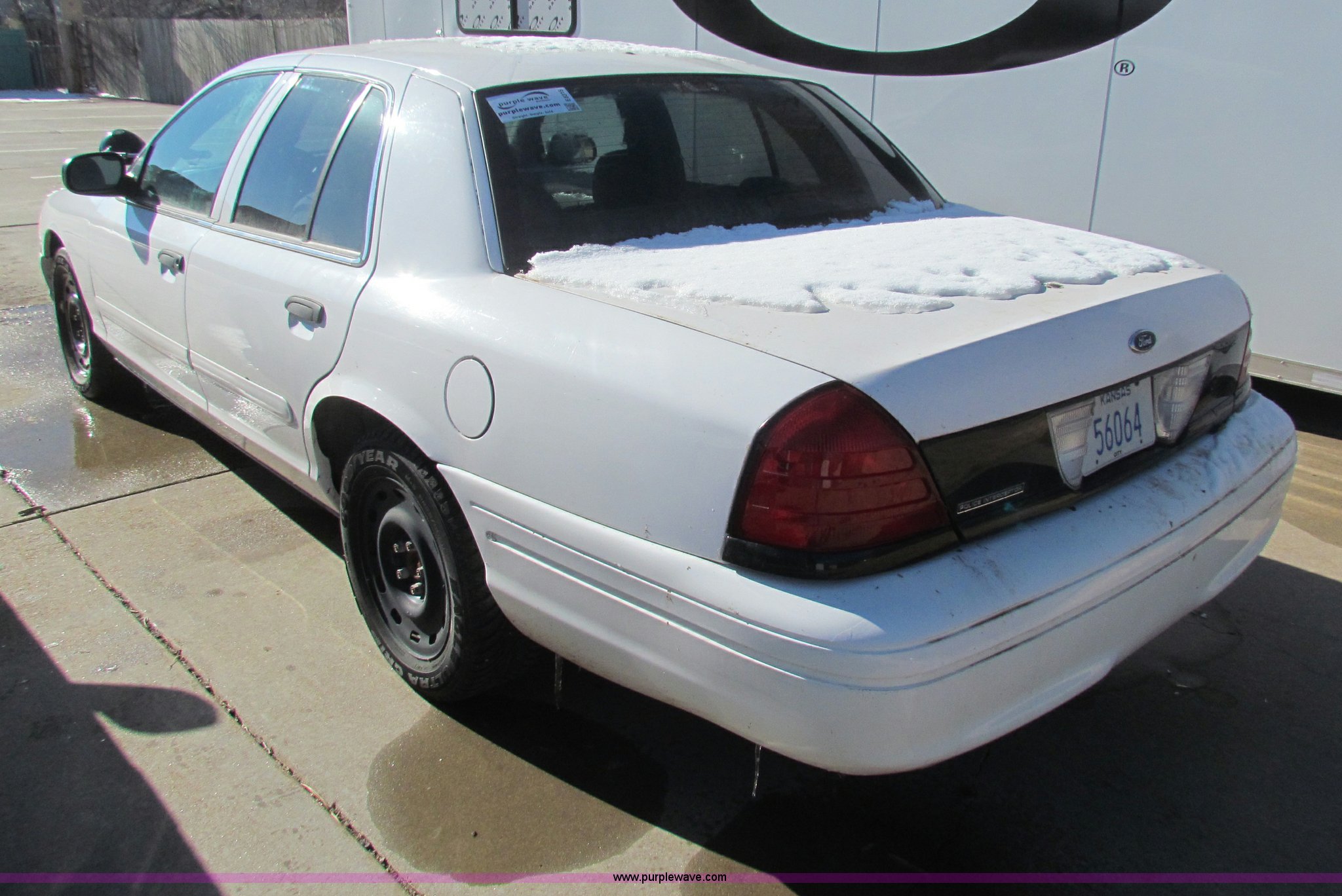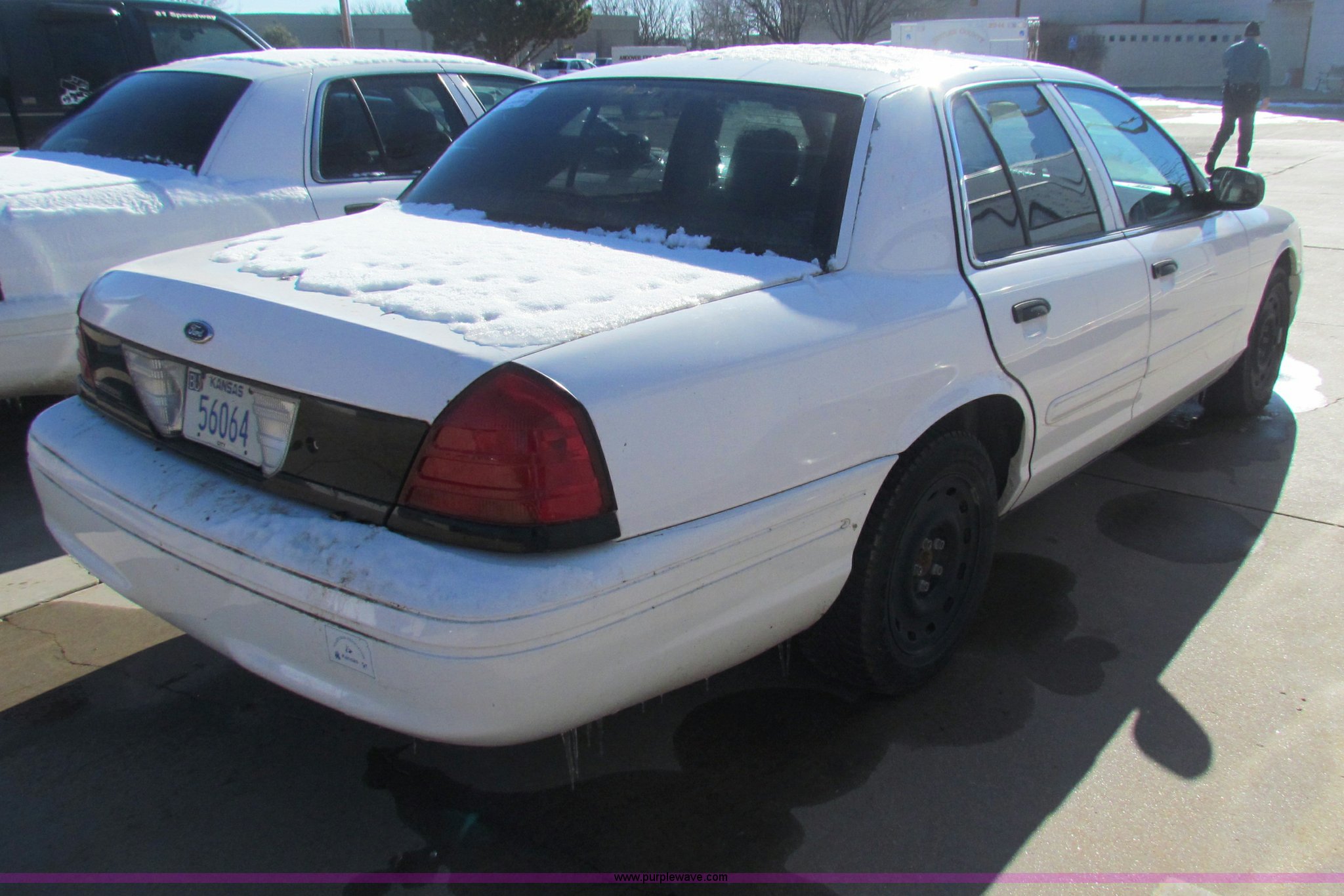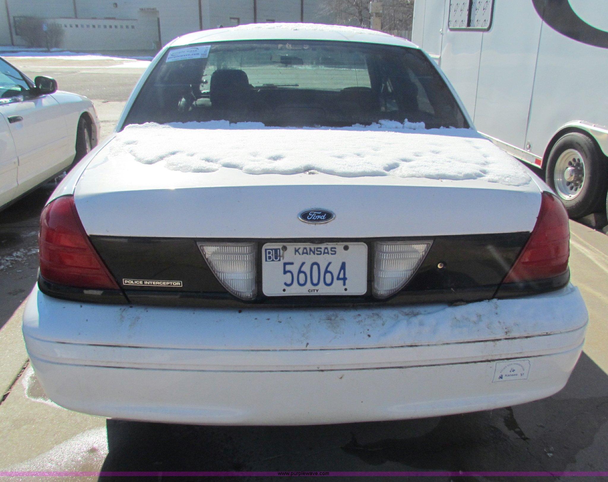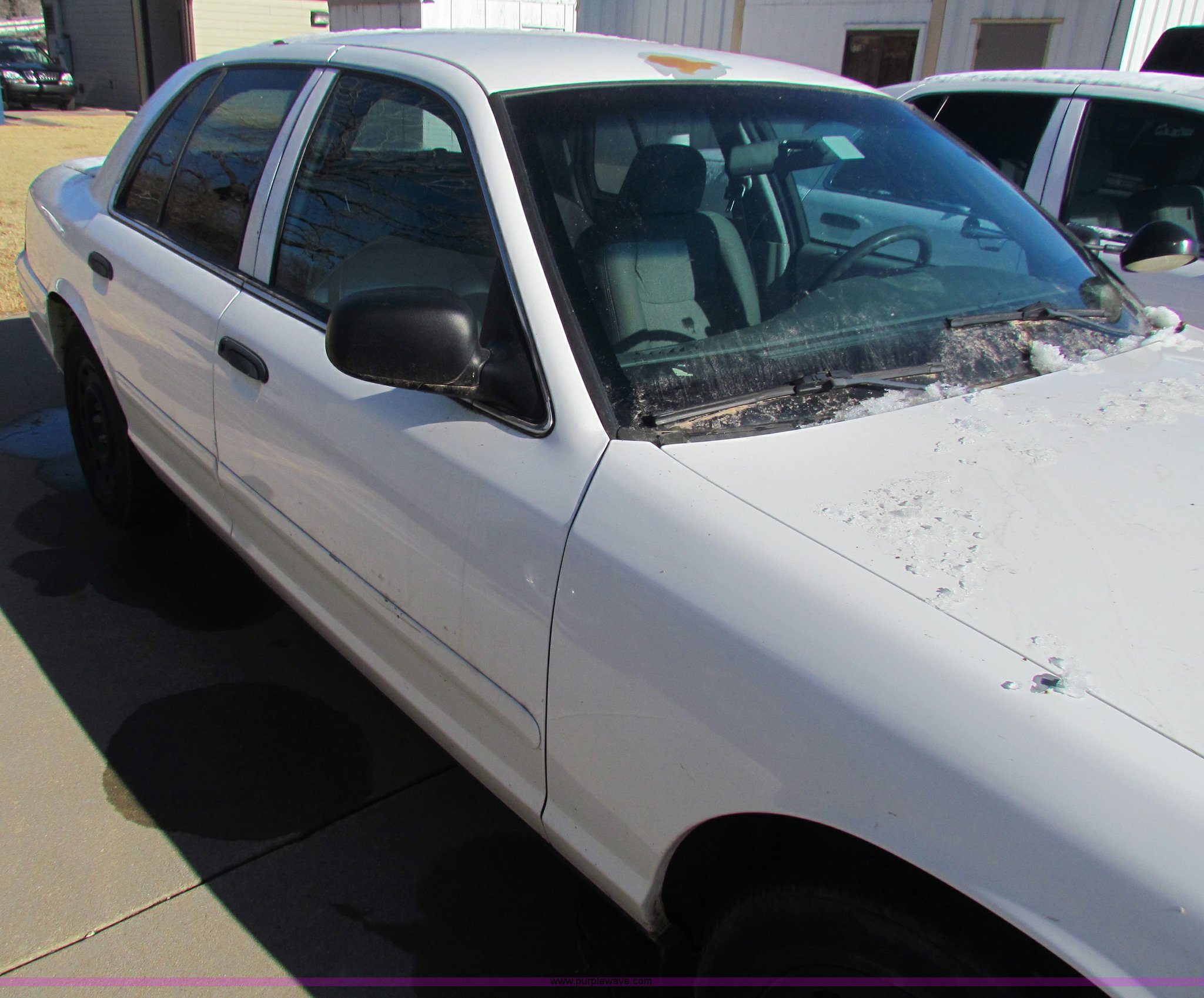 Purple Wave is selling a used Passenger Vehicle in Kansas. This item is a 2003 Ford Crown Victoria Police Interceptor with the following: 117,098 miles on odometer, 4.6L V8 SOHC 16V gas engine, Automatic transmission, AC and heat, Tilt, Cruise, Power windows, locks, and mirrors, 225/60R16 tires, Interior/exterior cosmetic damage, Hail damage, Radio has been removed, Rear seat and door panels unattached