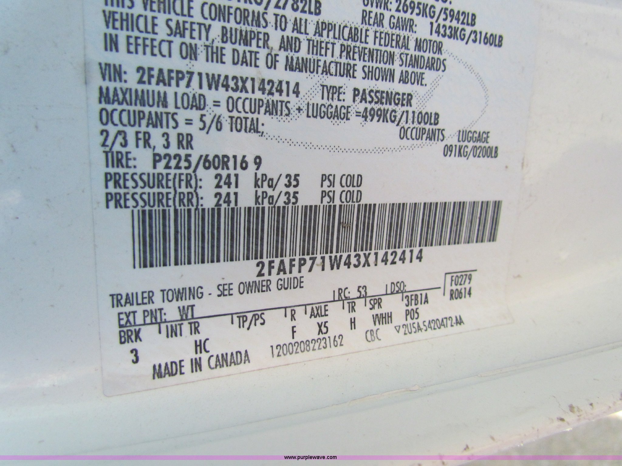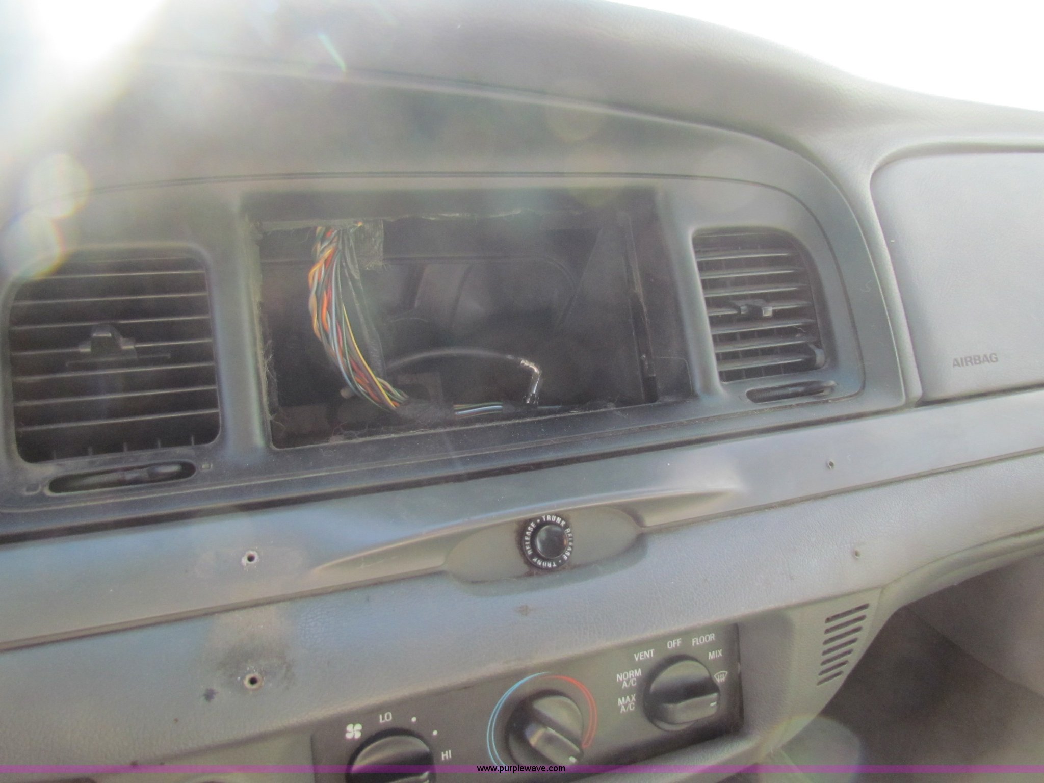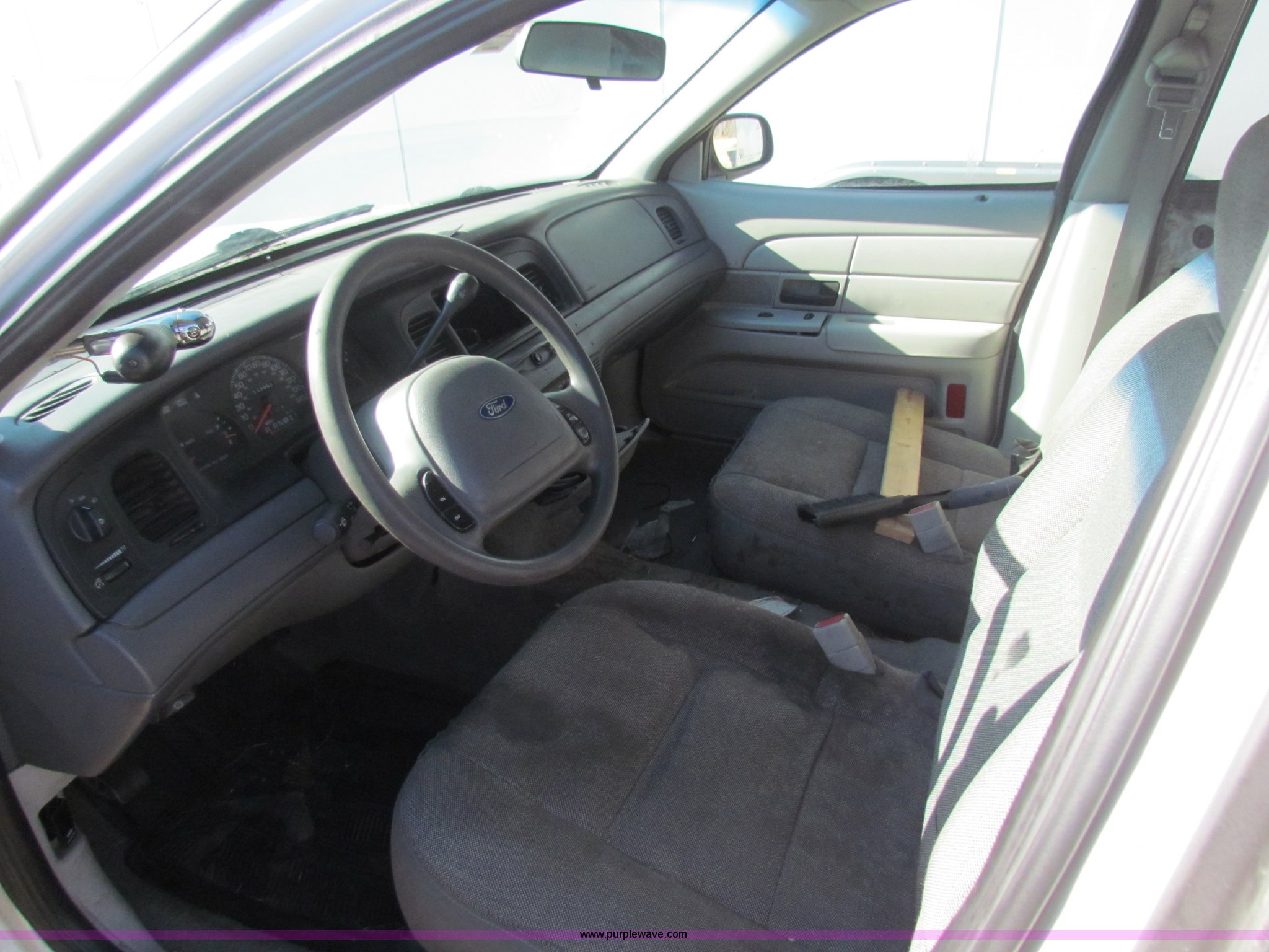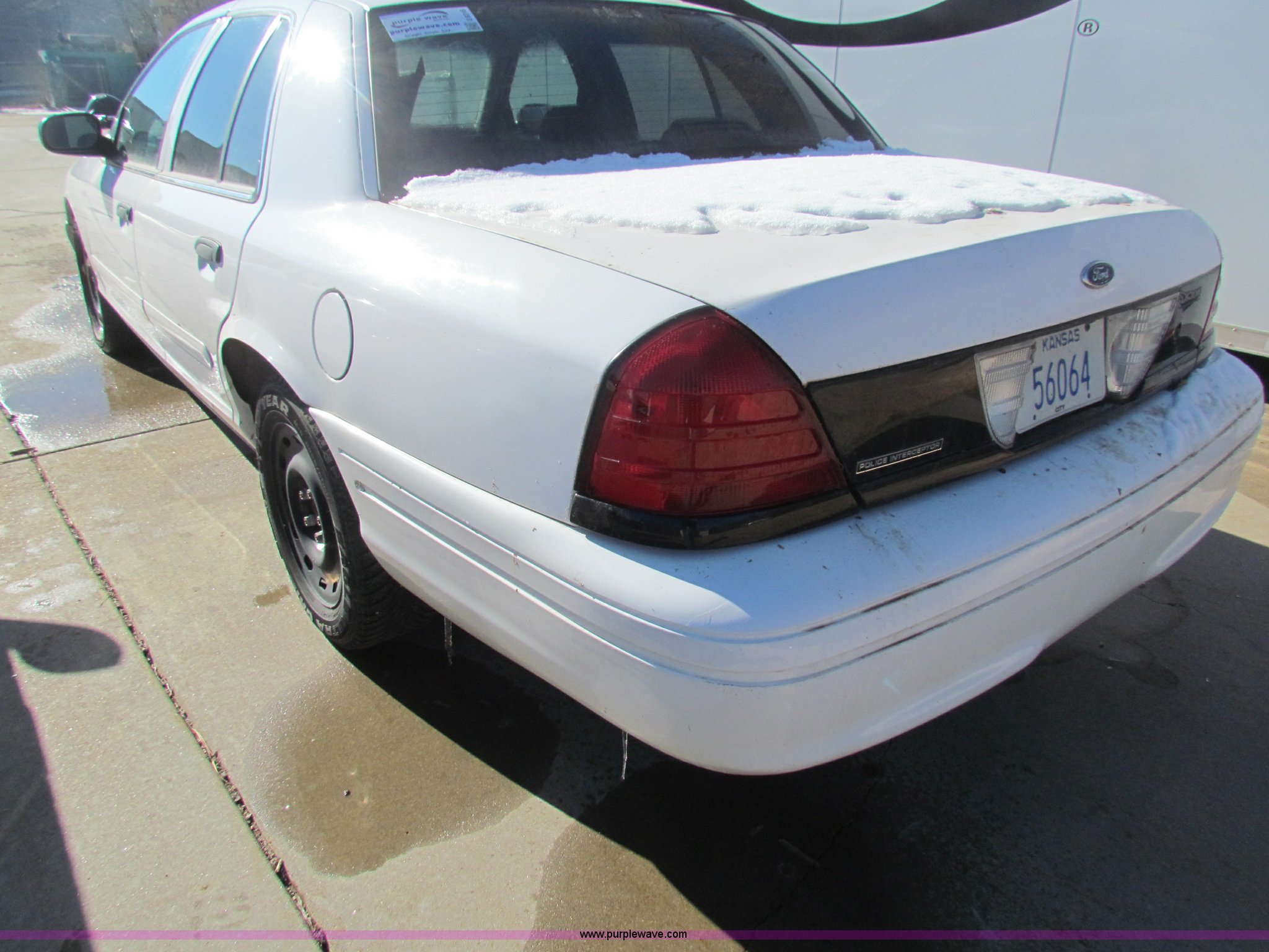 Purple Wave is selling a used Passenger Vehicle in Kansas. This item is a 2003 Ford Crown Victoria Police Interceptor with the following: 117,098 miles on odometer, 4.6L V8 SOHC 16V gas engine, Automatic transmission, AC and heat, Tilt, Cruise, Power windows, locks, and mirrors, 225/60R16 tires, Interior/exterior cosmetic damage, Hail damage, Radio has been removed, Rear seat and door panels unattached