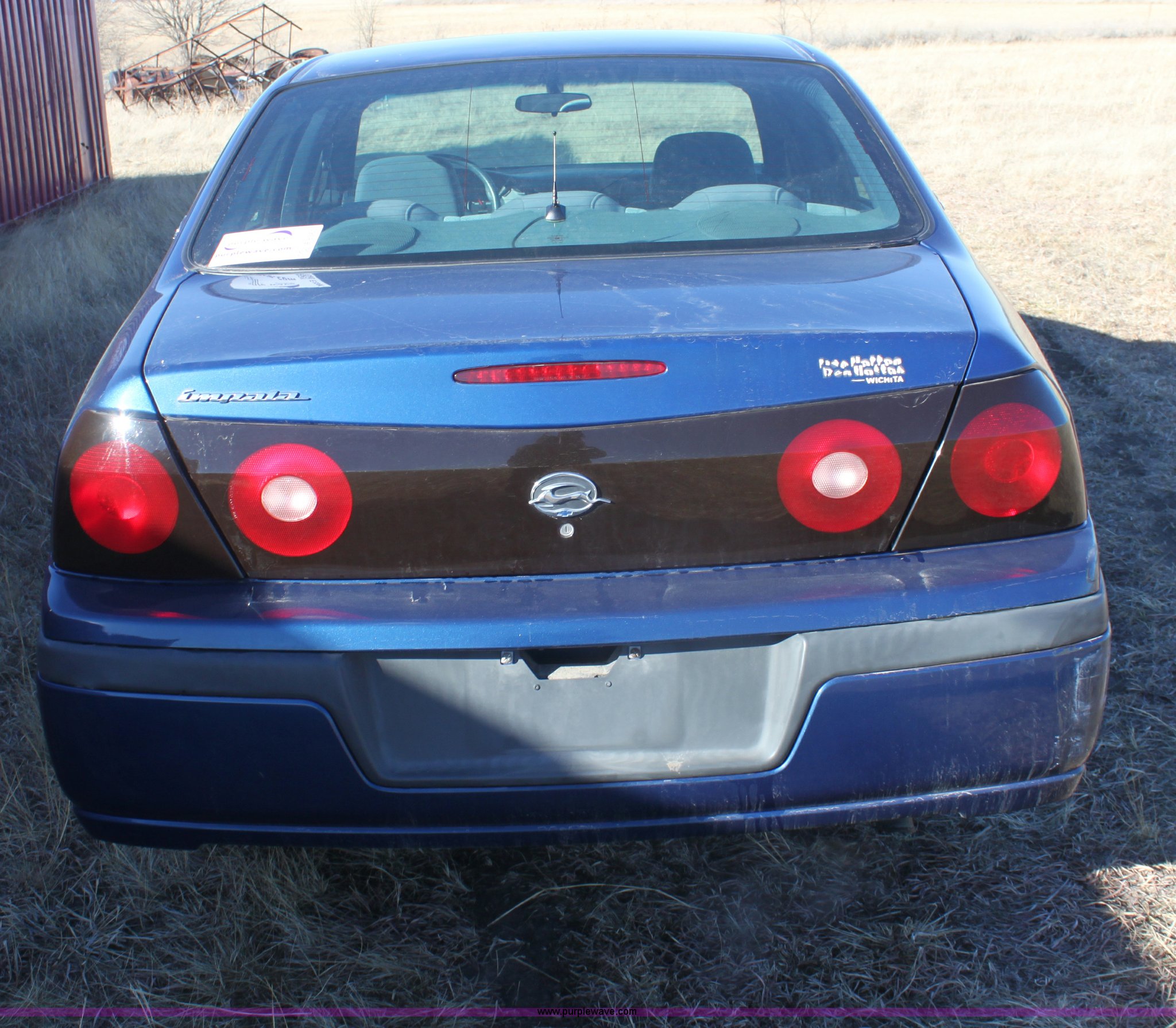 2004 Chevrolet Impala. 80,528 miles on odometer, 3.4L V6 OHV 12V gas engine, Automatic transmission, AC and heat, Tilt, Cruise, AM/FM/cassette, Power windows, locks, mirrors, and seats, Cloth interior, Keyless entry, 225/60R16 tires, Interior/exterior cosmetic damage, Light hail damage, Unit# 3201. 2G1WF52EX49236920. Shipping quotes available. Sedgwick County. Rose Hill, KS 67133
