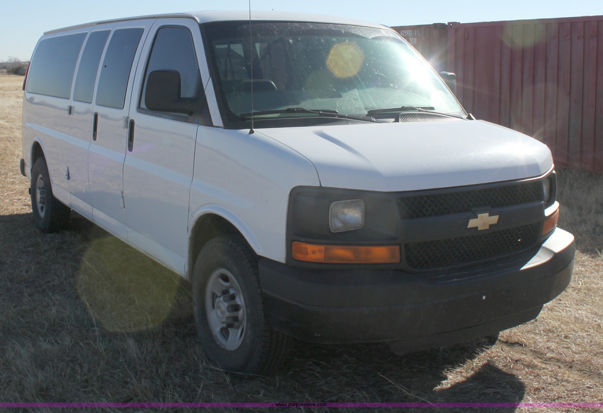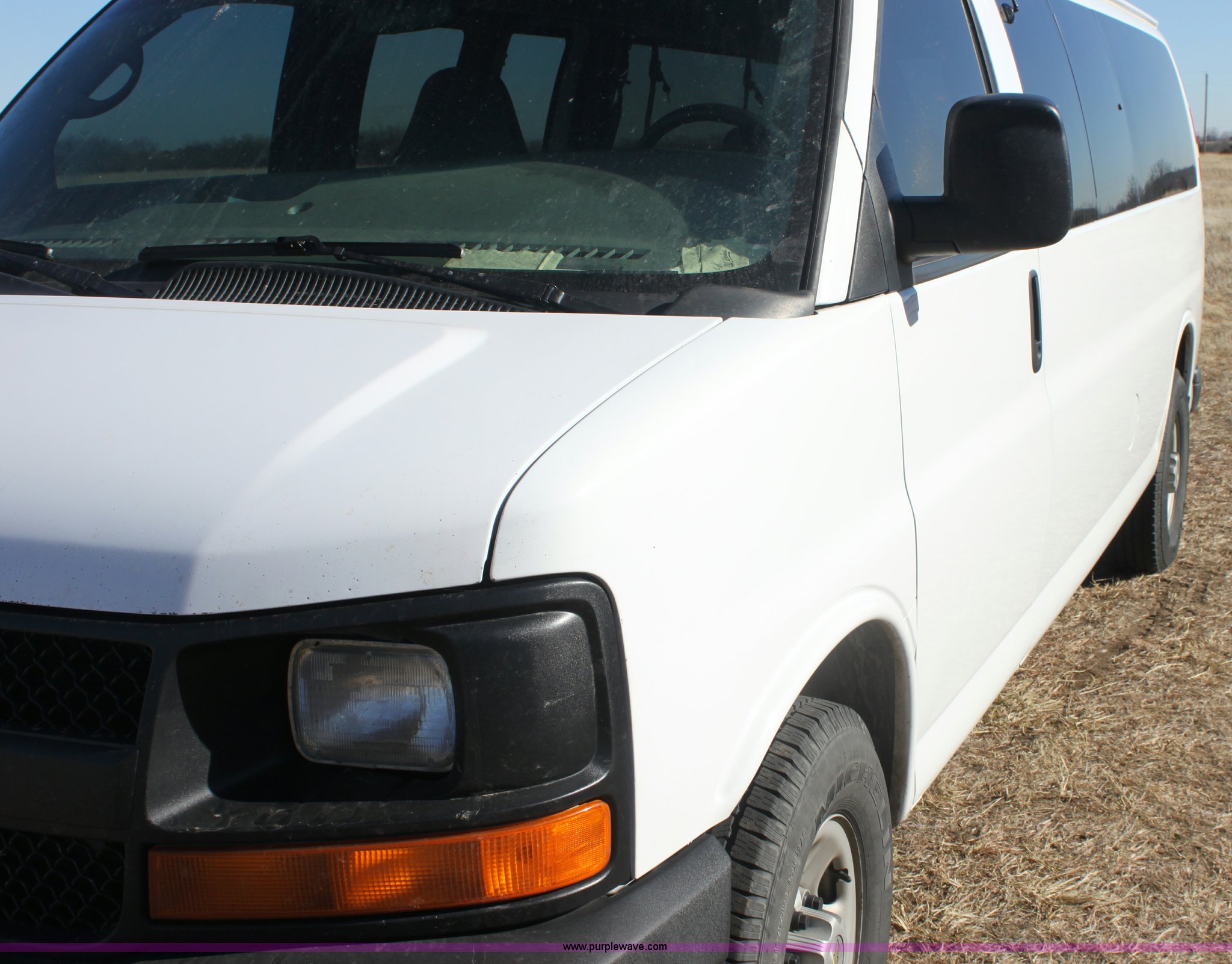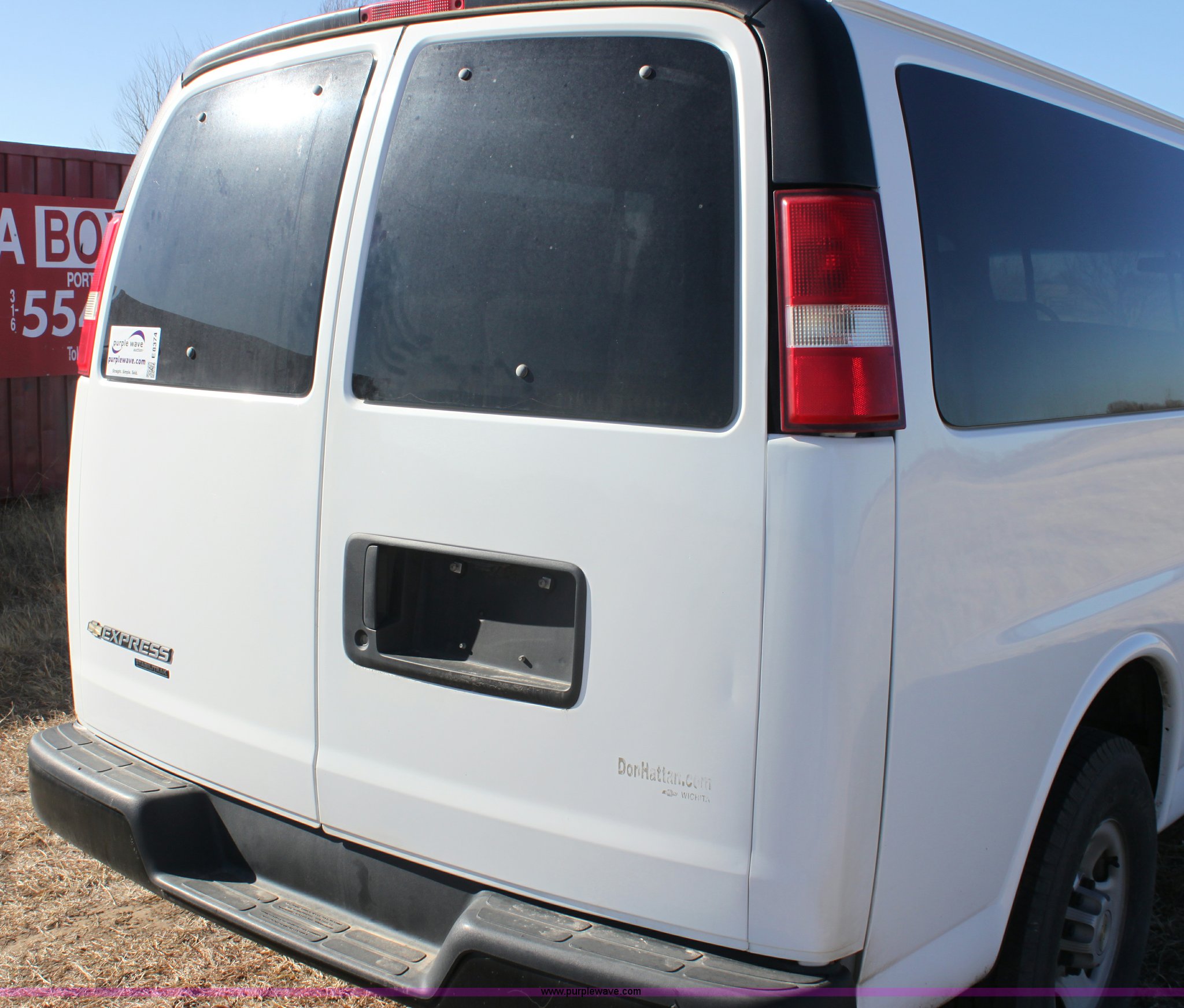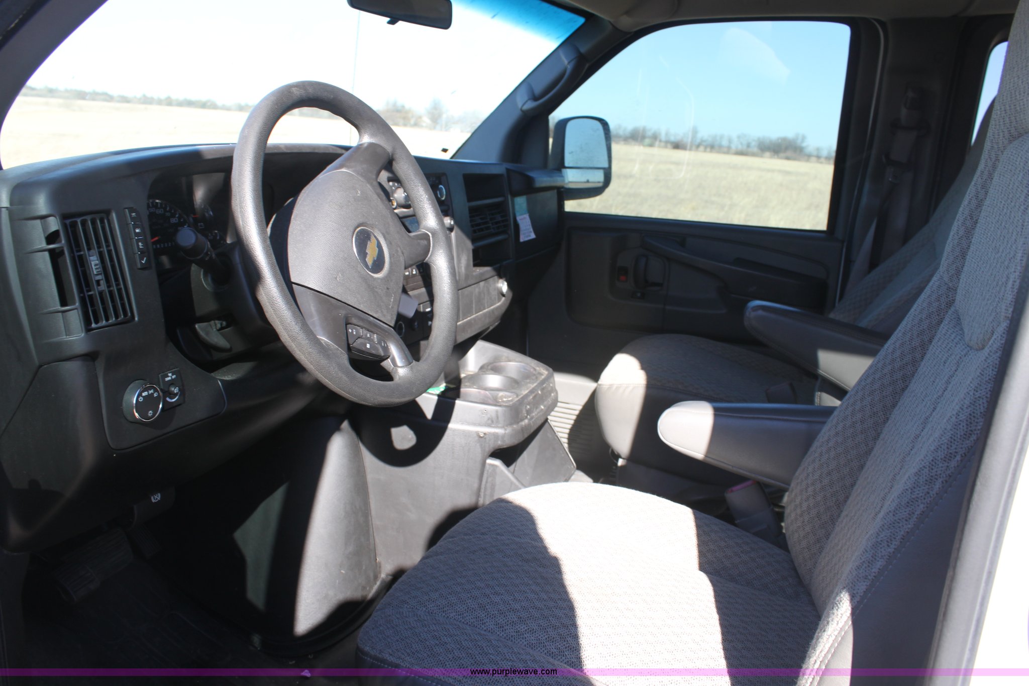 Purple Wave is selling a used 3/4 or 1 Ton Pickup or Van in Kansas. This item is a 2009 Chevrolet Express 3500 van with the following: 222,479 miles on odometer, 6.0L V8 OHV 16V gas engine, Automatic transmission, AC and heat, Tilt, Cruise, AM/FM, Power windows, locks, and mirrors, Vinyl interior, Keyless entry, Stabilitrak, 245/75R16 tires, Low fuel light on, Interior/exterior cosmetic damage, Hail damage