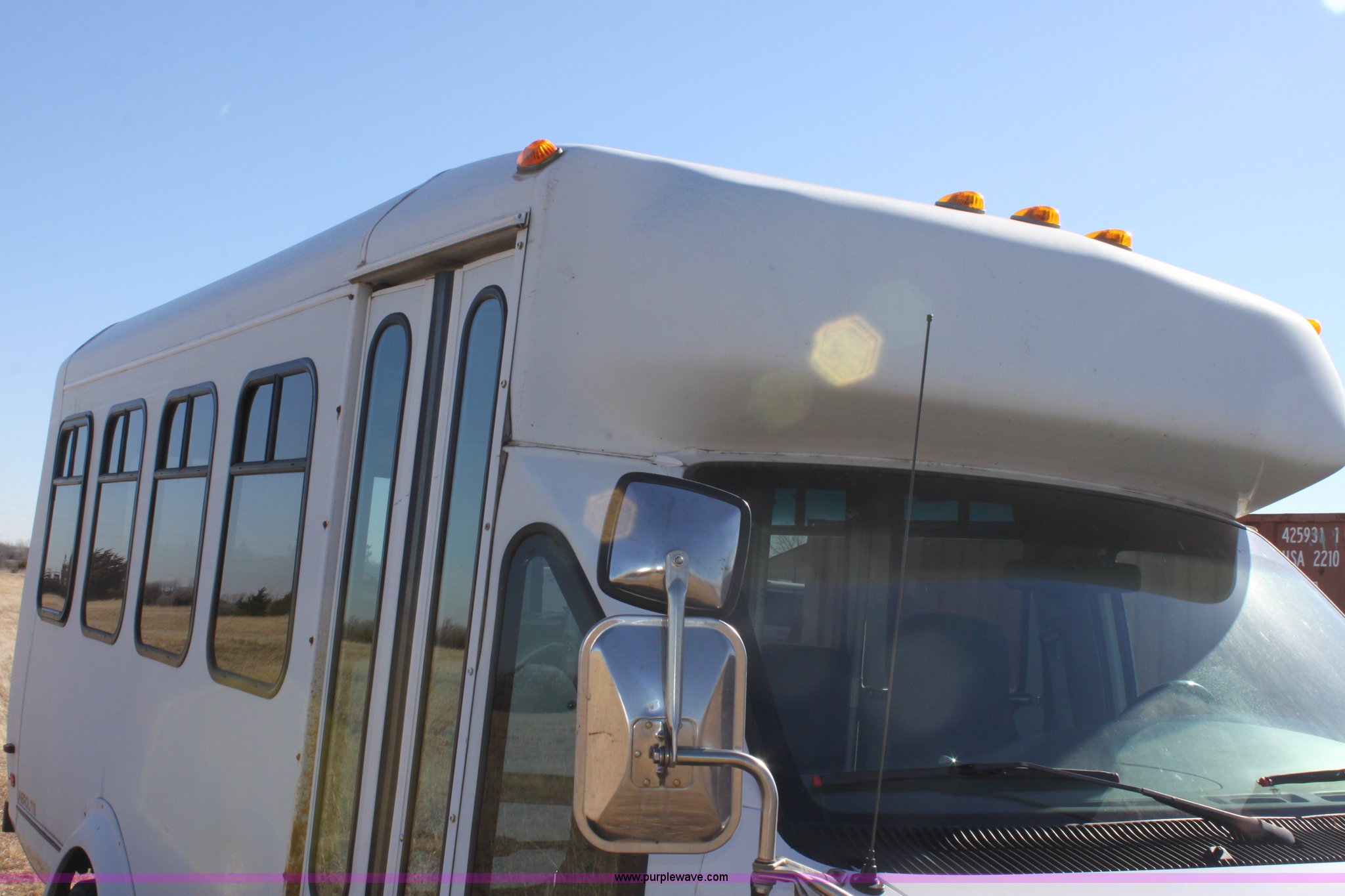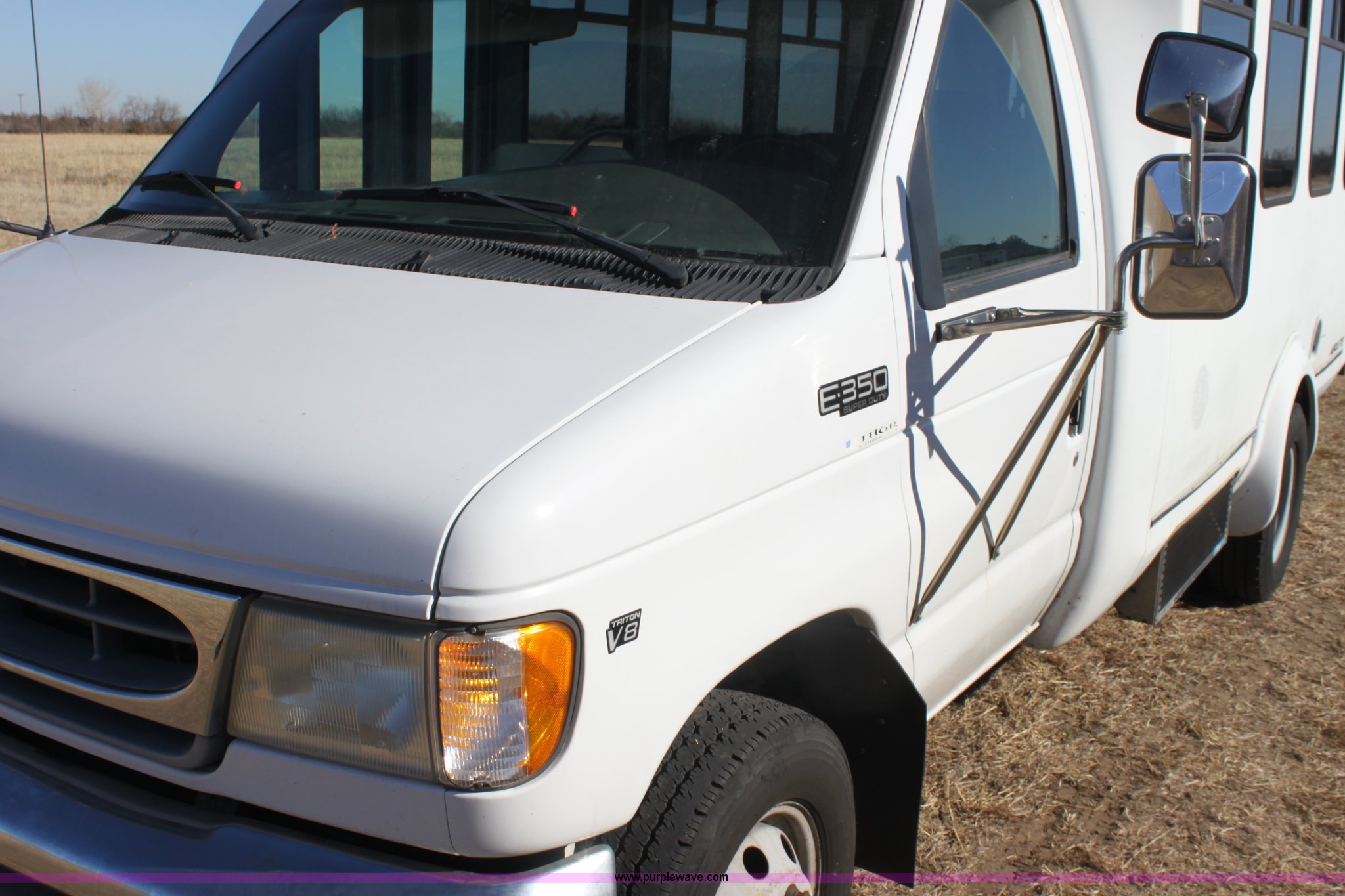Purple Wave is selling a used Bus in Kansas. This item is a 2001 Ford Econoline E350 Super Duty bus with the following: 106,013 miles on odometer, 5.4L V8 SOHC 16V gas engine, Automatic transmission, AC and heat, AM/FM, Manual windows and locks, Vinyl interior, 225/75R16 tires, Interior/exterior cosmetic damage