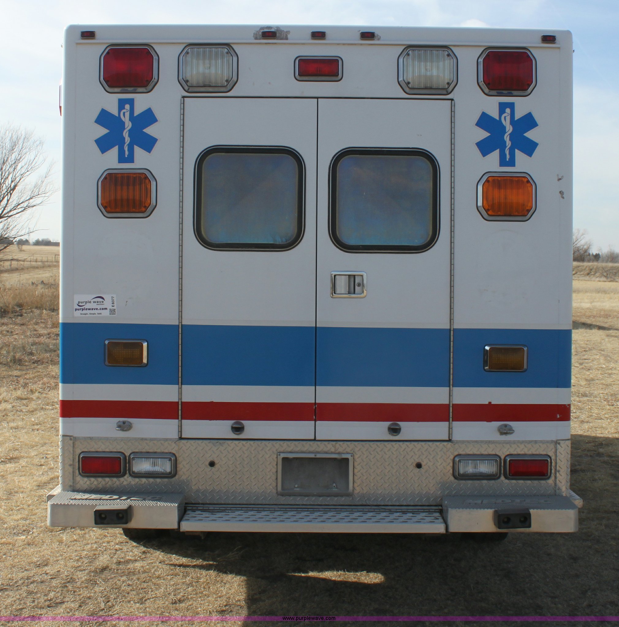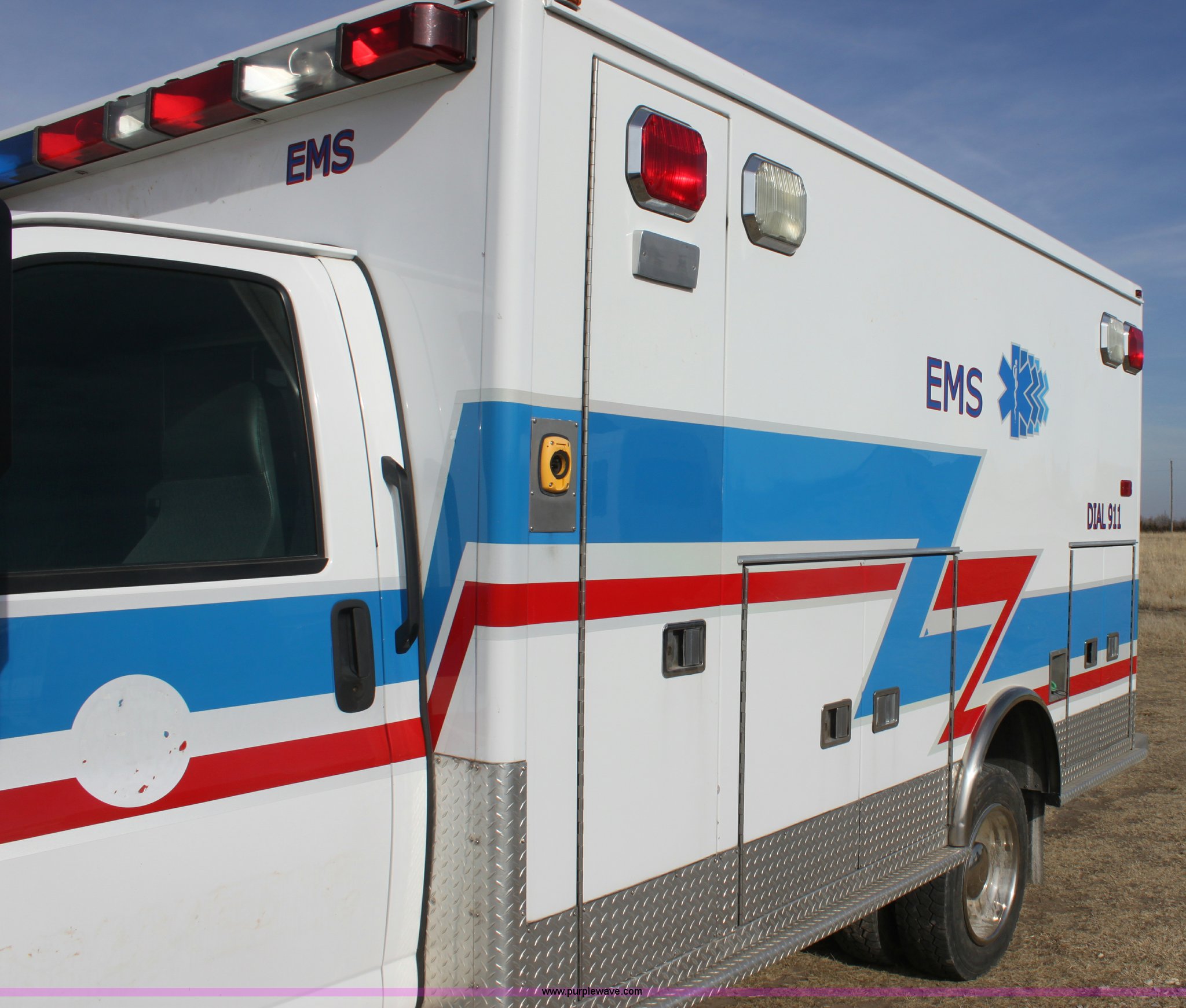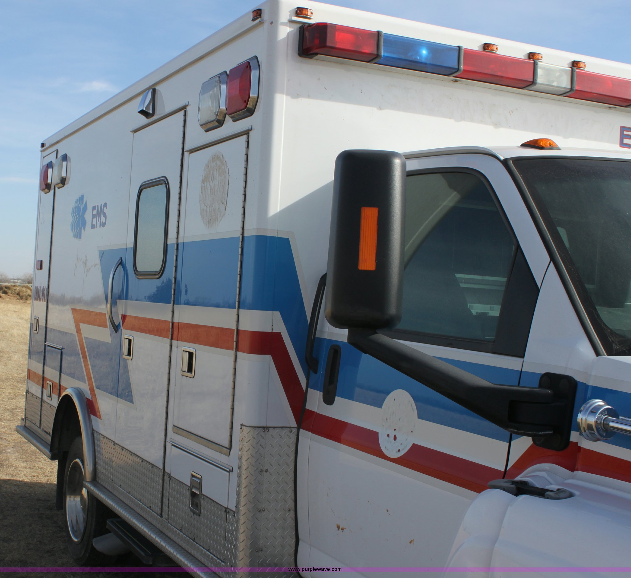 Purple Wave is selling a used Fire Truck or Emergency Vehicle in Kansas. This item is a 2008 Chevrolet ambulance with the following: 135,834 miles on odometer, Duramax 6.6L V8 OHV 32V turbo diesel engine, Allison automatic transmission, Power windows and locks, Mec Tec body, Air ride seat, Air ride suspension, 225/70R19.5 tires, Interior/exterior cosmetic damage, Needs batteries