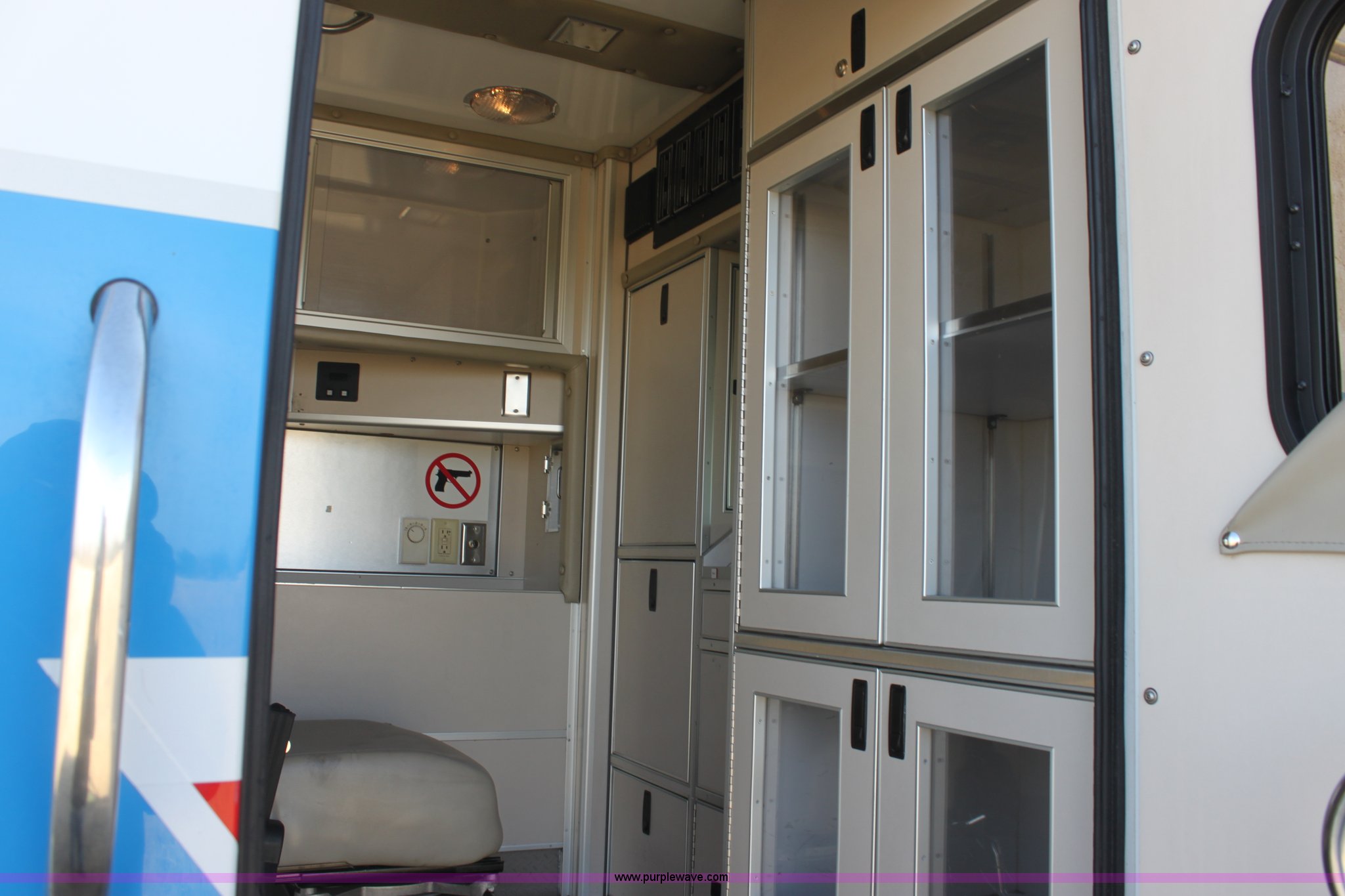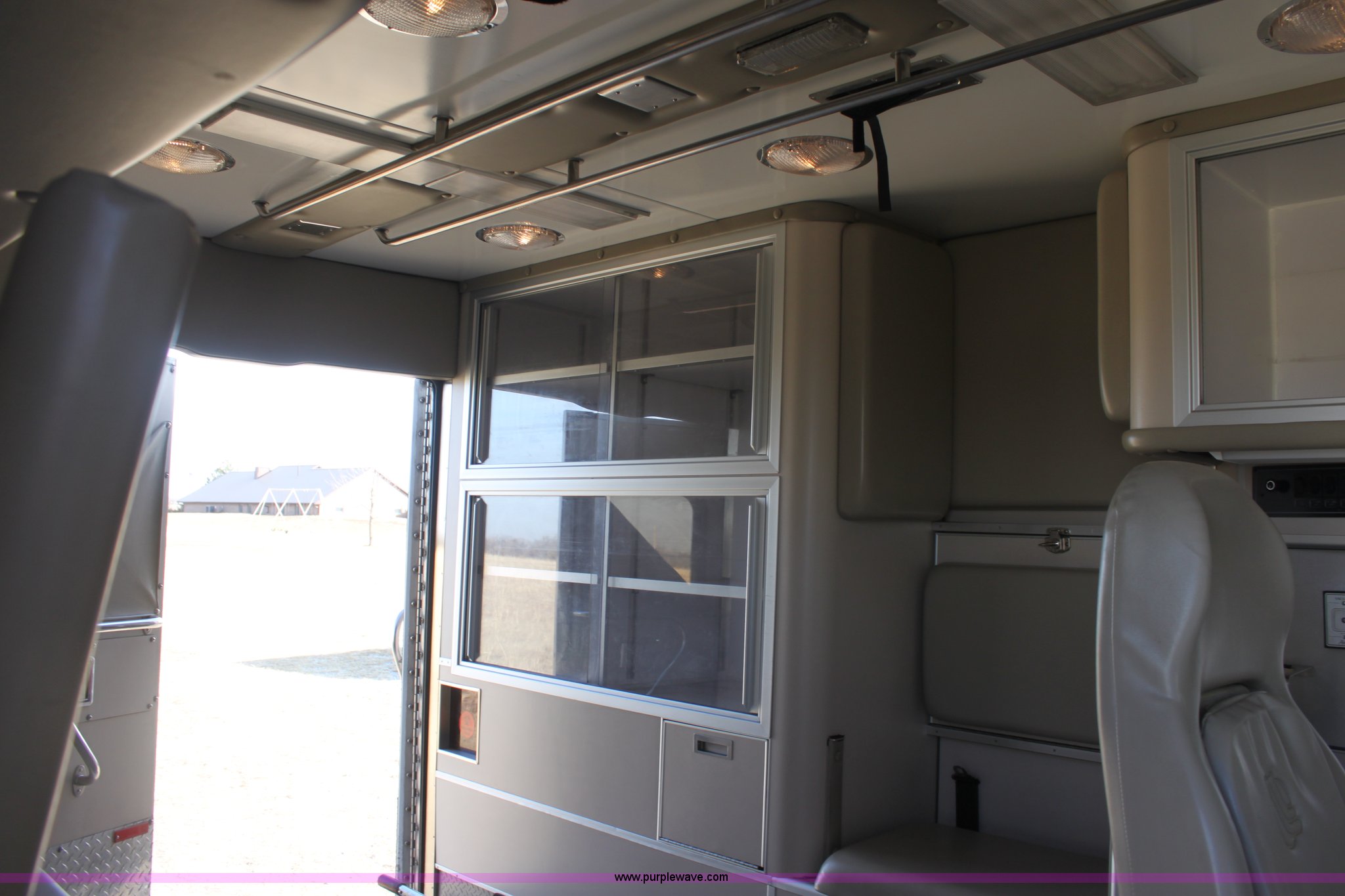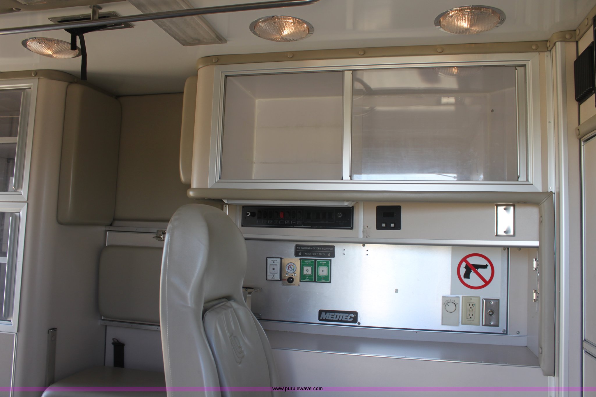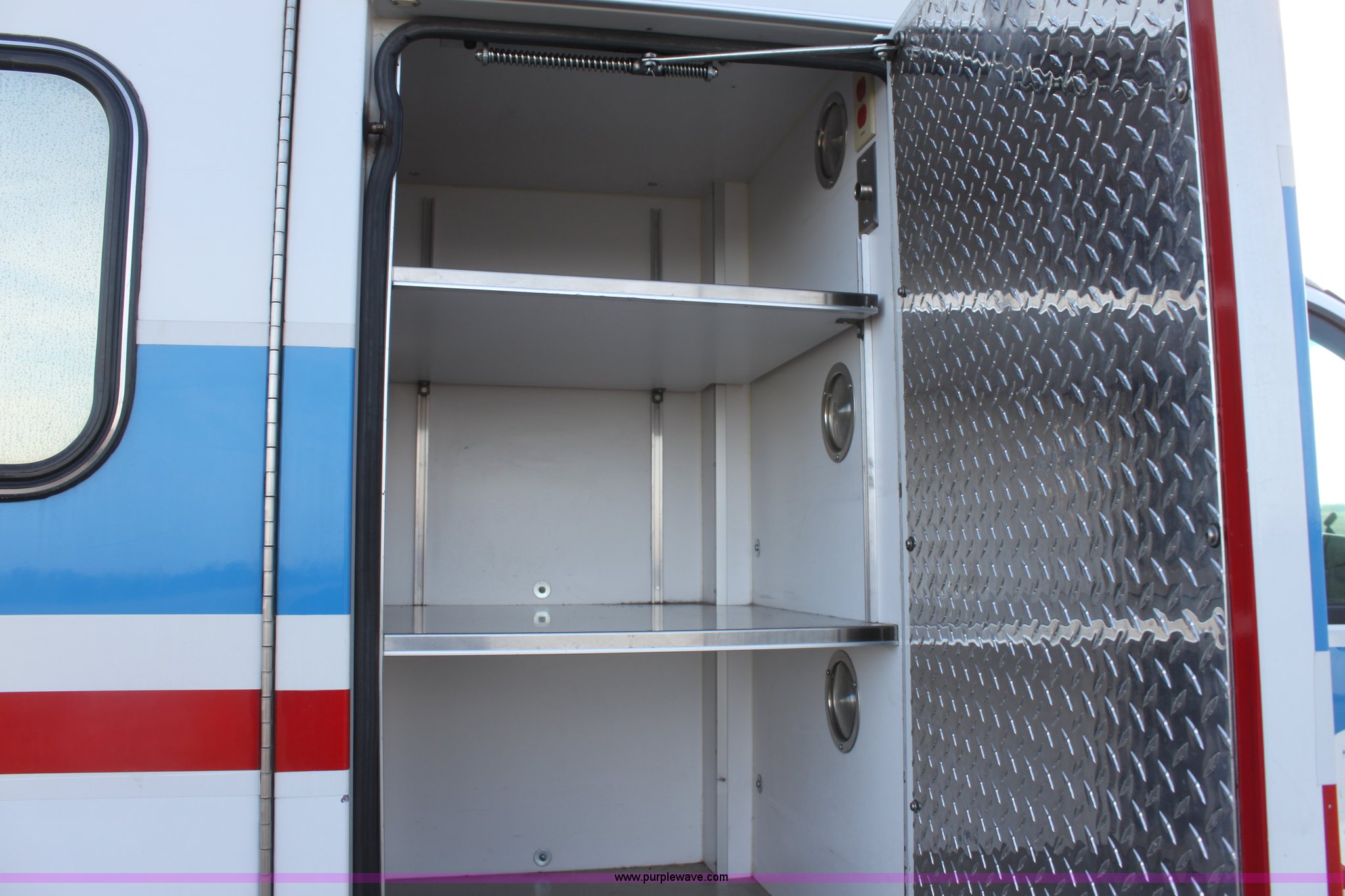 Purple Wave is selling a used Fire Truck or Emergency Vehicle in Kansas. This item is a 2008 Chevrolet ambulance with the following: 135,834 miles on odometer, Duramax 6.6L V8 OHV 32V turbo diesel engine, Allison automatic transmission, Power windows and locks, Mec Tec body, Air ride seat, Air ride suspension, 225/70R19.5 tires, Interior/exterior cosmetic damage, Needs batteries