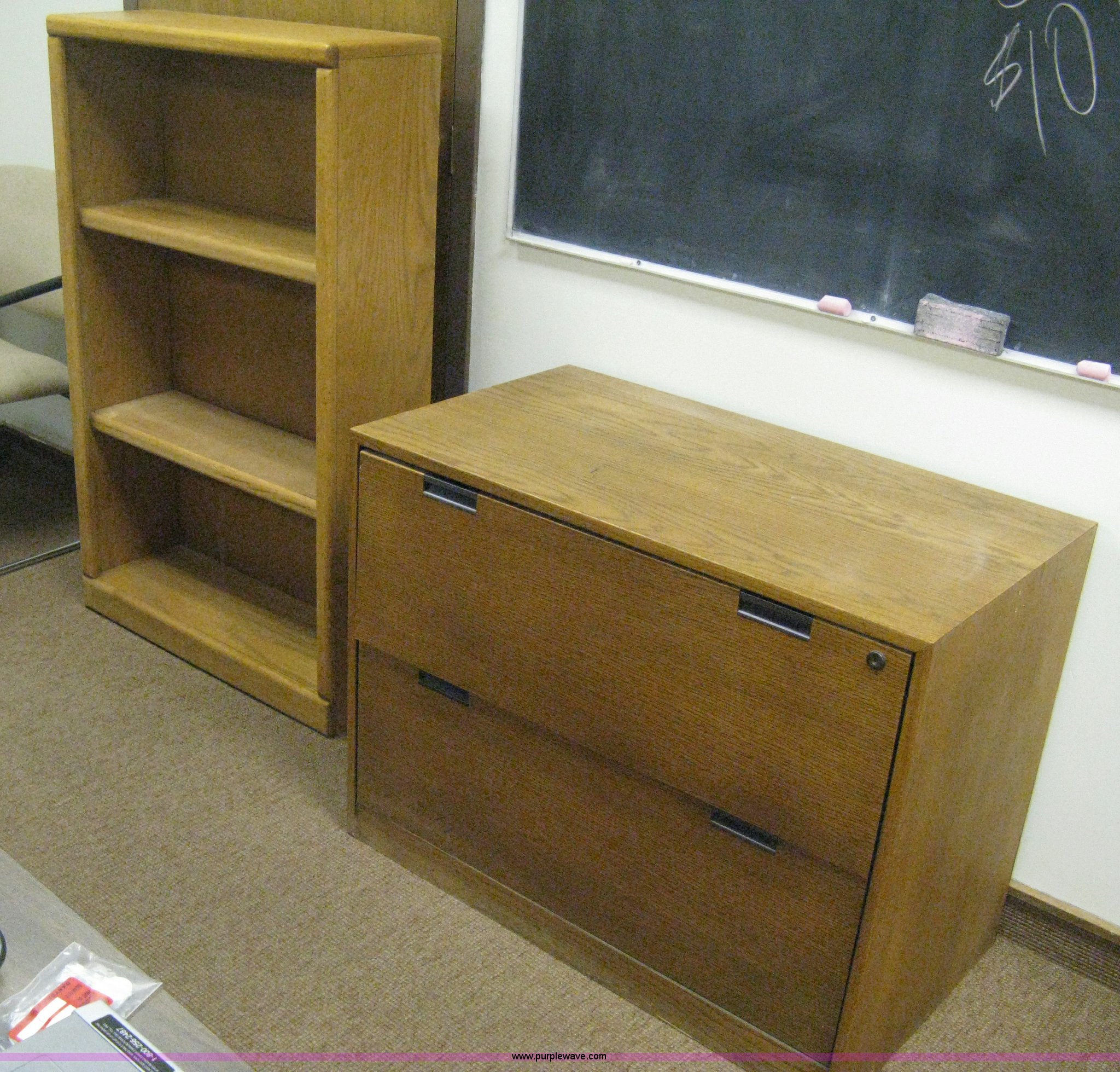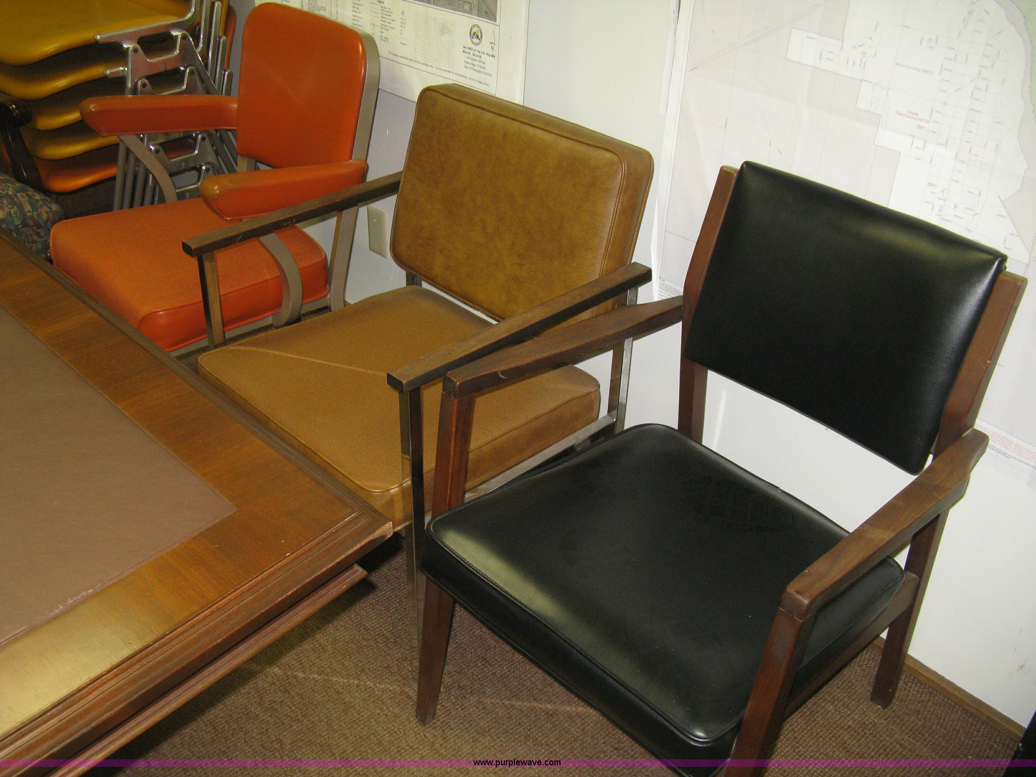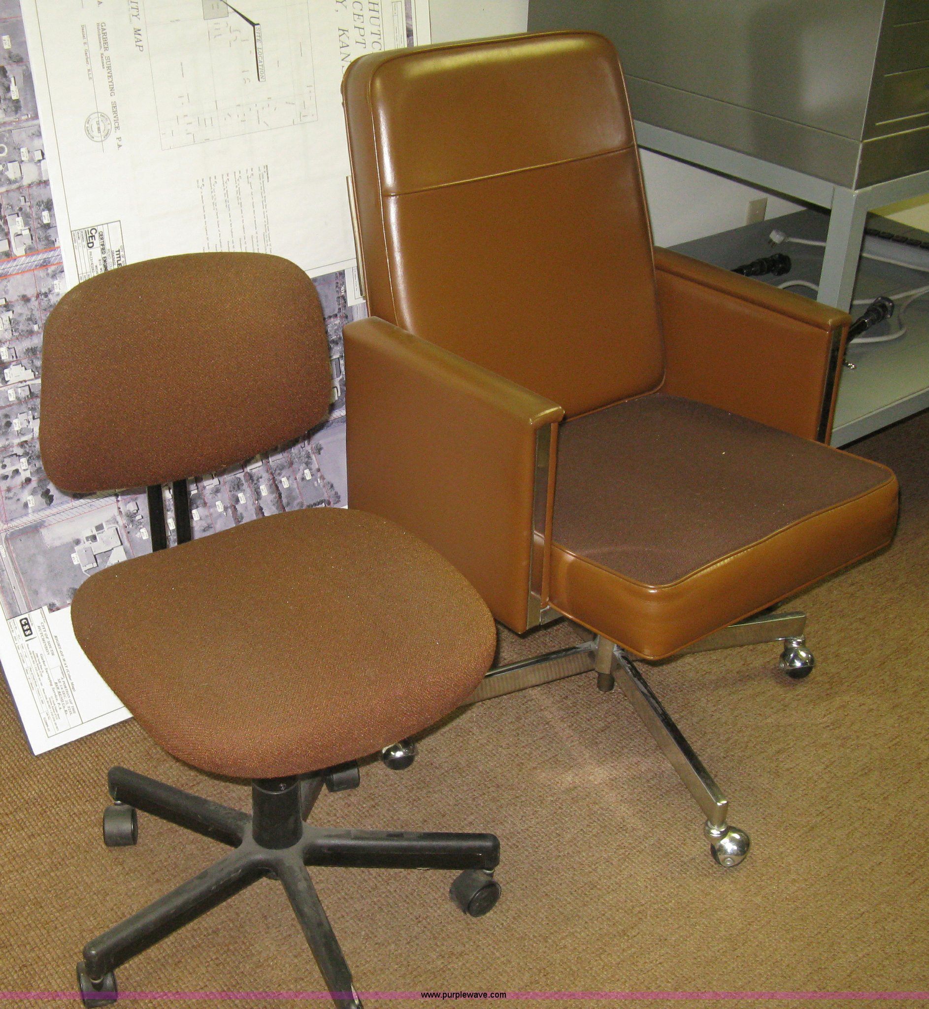 Purple Wave is selling a used Office Supplies and Equip. in Kansas. This item is a Office chairs and furniture with the following: (18) office chairs, Wood laminate table, 19.5" x 28" top, Oak two-drawer lateral file, Oak book case, Hand-crafted rock medium matted and wall hanging framed art, 25.5" x 49.5"