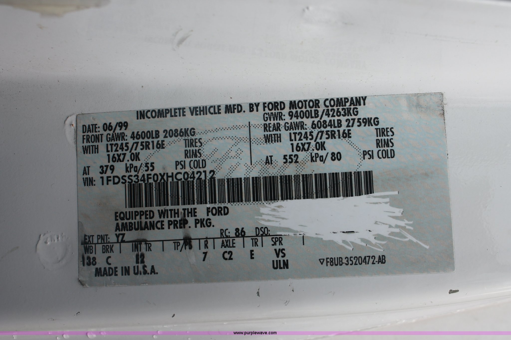 Purple Wave is selling a used Passenger Vehicle in New Jersey. This item is a 1999 Ford Econoline E350 Super Duty ambulance van with the following: 451,505 actual miles, 7.3L V8 turbo diesel engine, Automatic transmission, AC and heat, Tilt, Cruise, AM/FM, Power windows and locks, Locks inoperable, Vinyl interior, AEV emergency control system, Backup alarm, AEV Trauma Hawk emergency bed, Internal storage, Oxygen hookups, (2) 12V DC outlets, (4) 110V AC outlets, Fire extinguisher, Vinyl interior, 245/75R16 tires, Unit 123, No flood damage