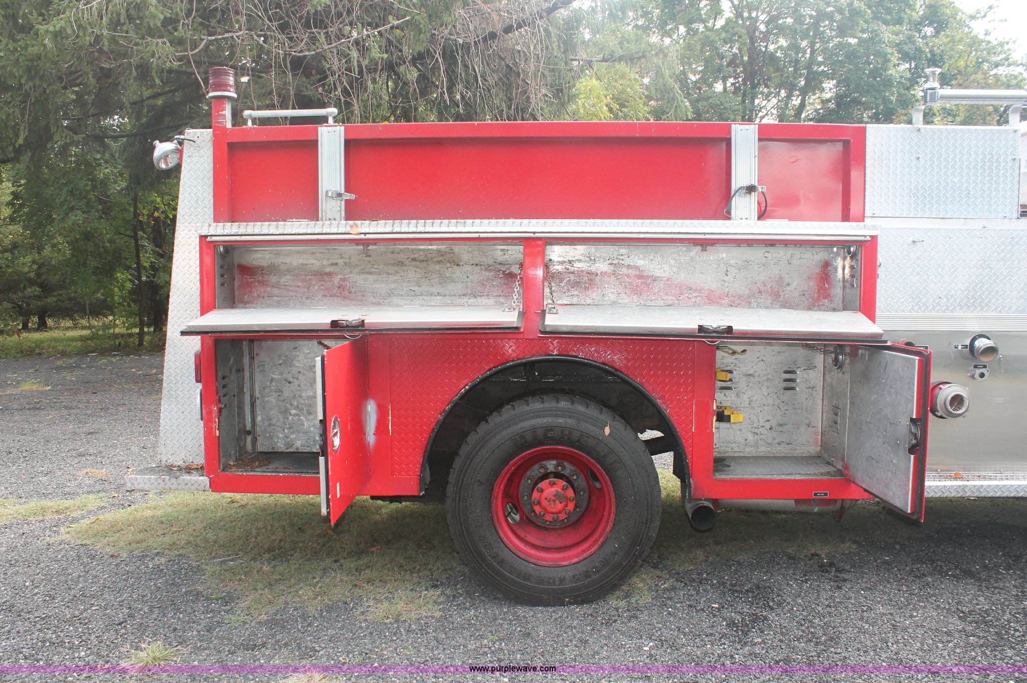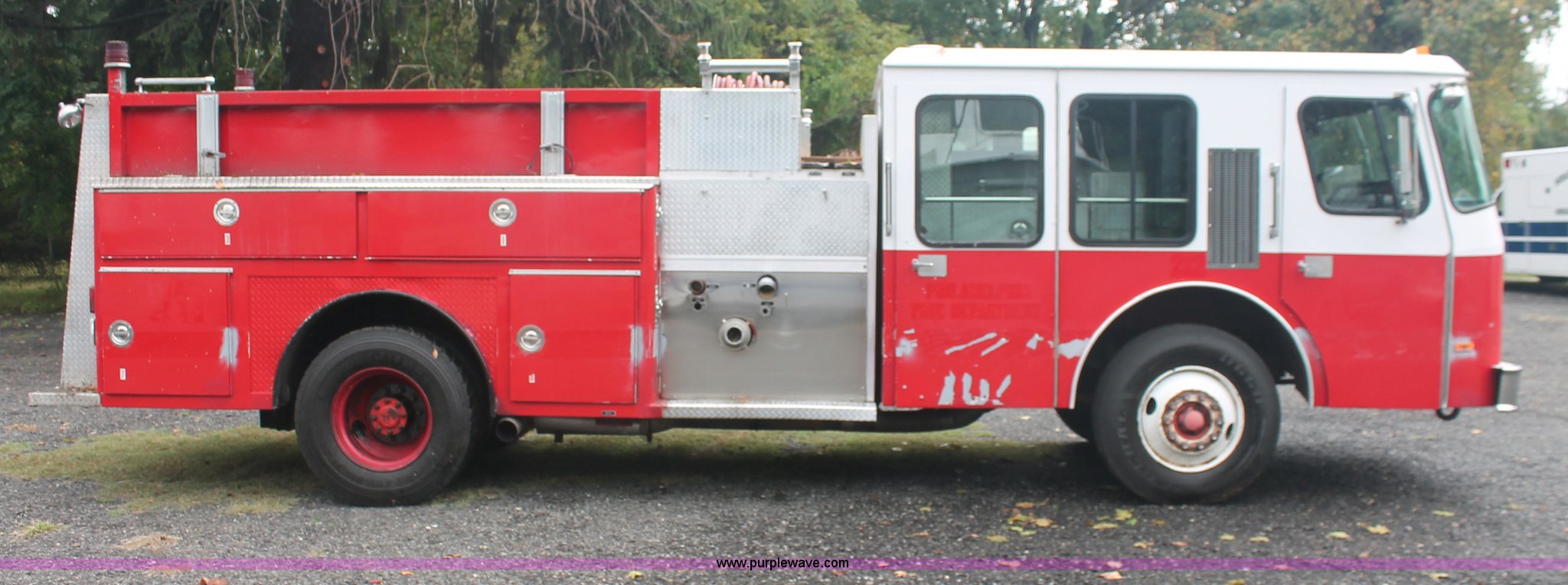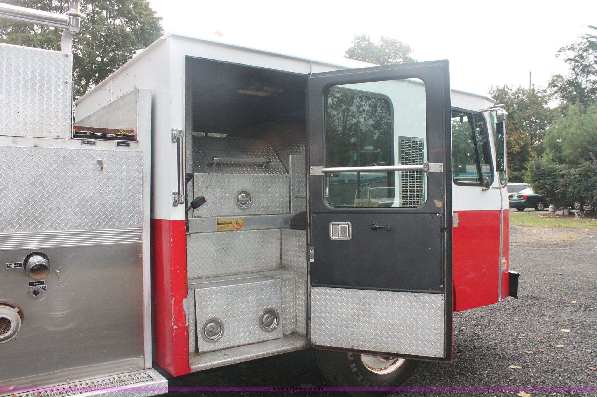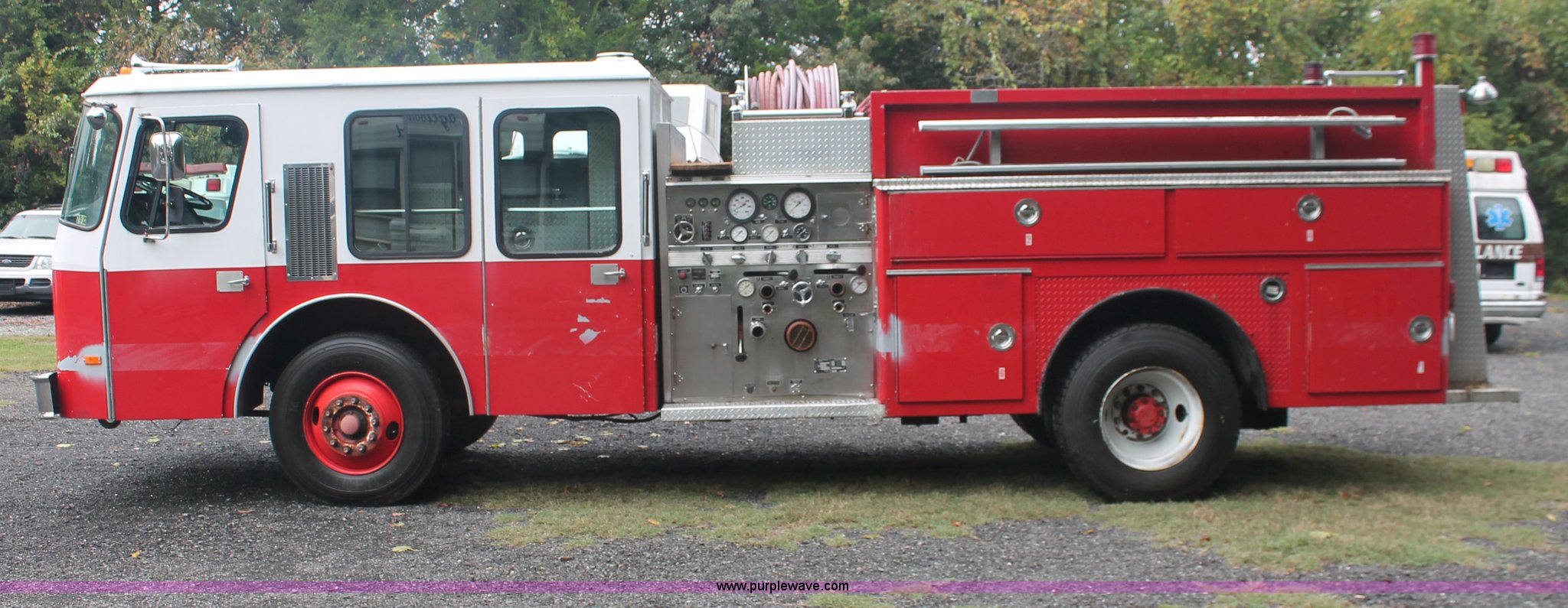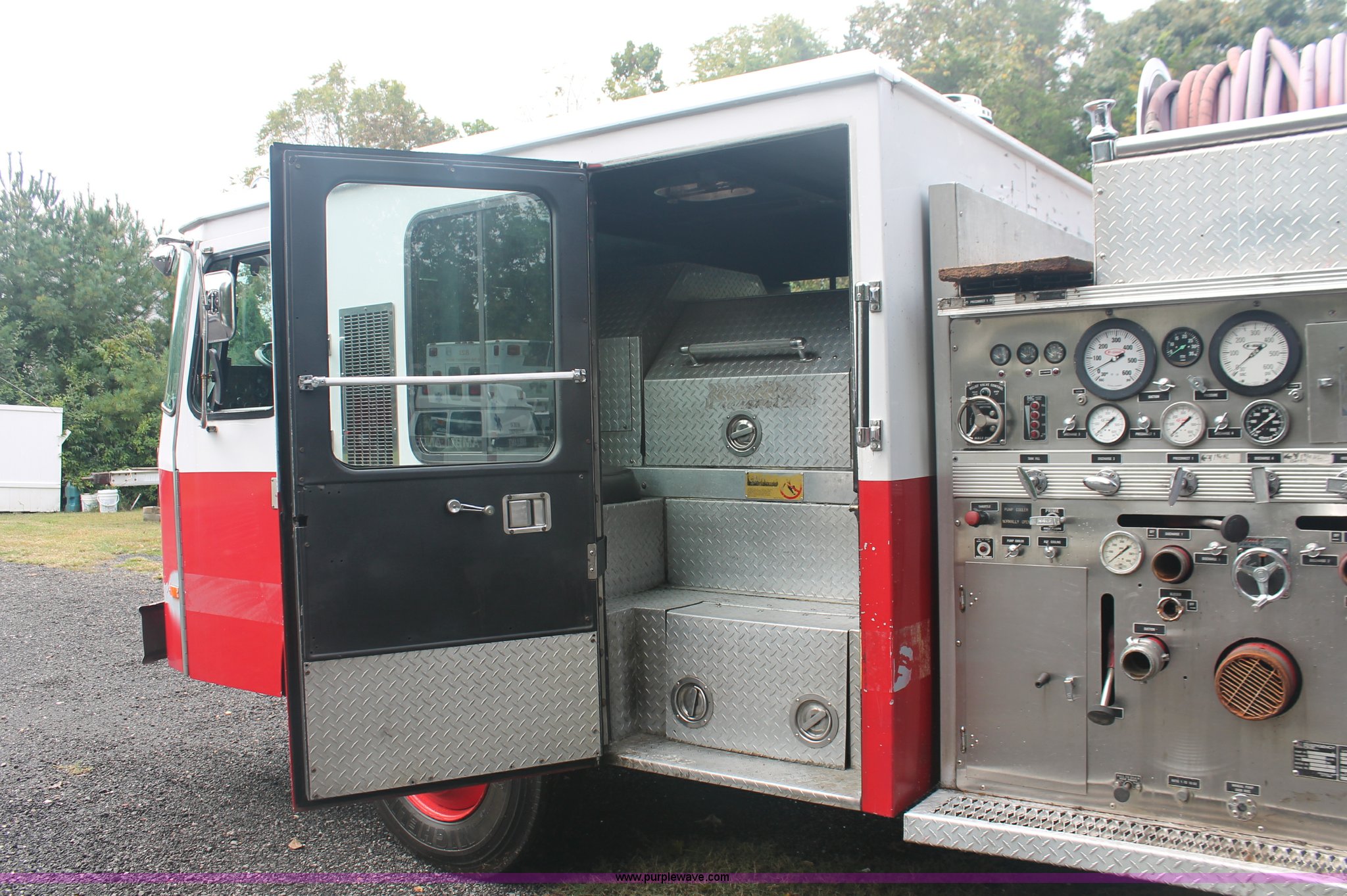 Purple Wave is selling a used Fire Truck or Emergency Vehicle in New Jersey. This item is a 1988 Federal Motors firetruck with the following: 127,469 miles on odometer, 5,709 engine hours on meter, 4,840 average engine hours, Detroit 6L diesel engine, 320 HP, Automatic transmission, Cruise, Manual windows and locks, Vinyl interior, Fan, Spotlight, Light and siren control, Emergency One pump system, 1,000 gpm capacity, (9) compartment fire bed, Hose and reel, Michelin XZE 11R22.5 tires, No flood damage