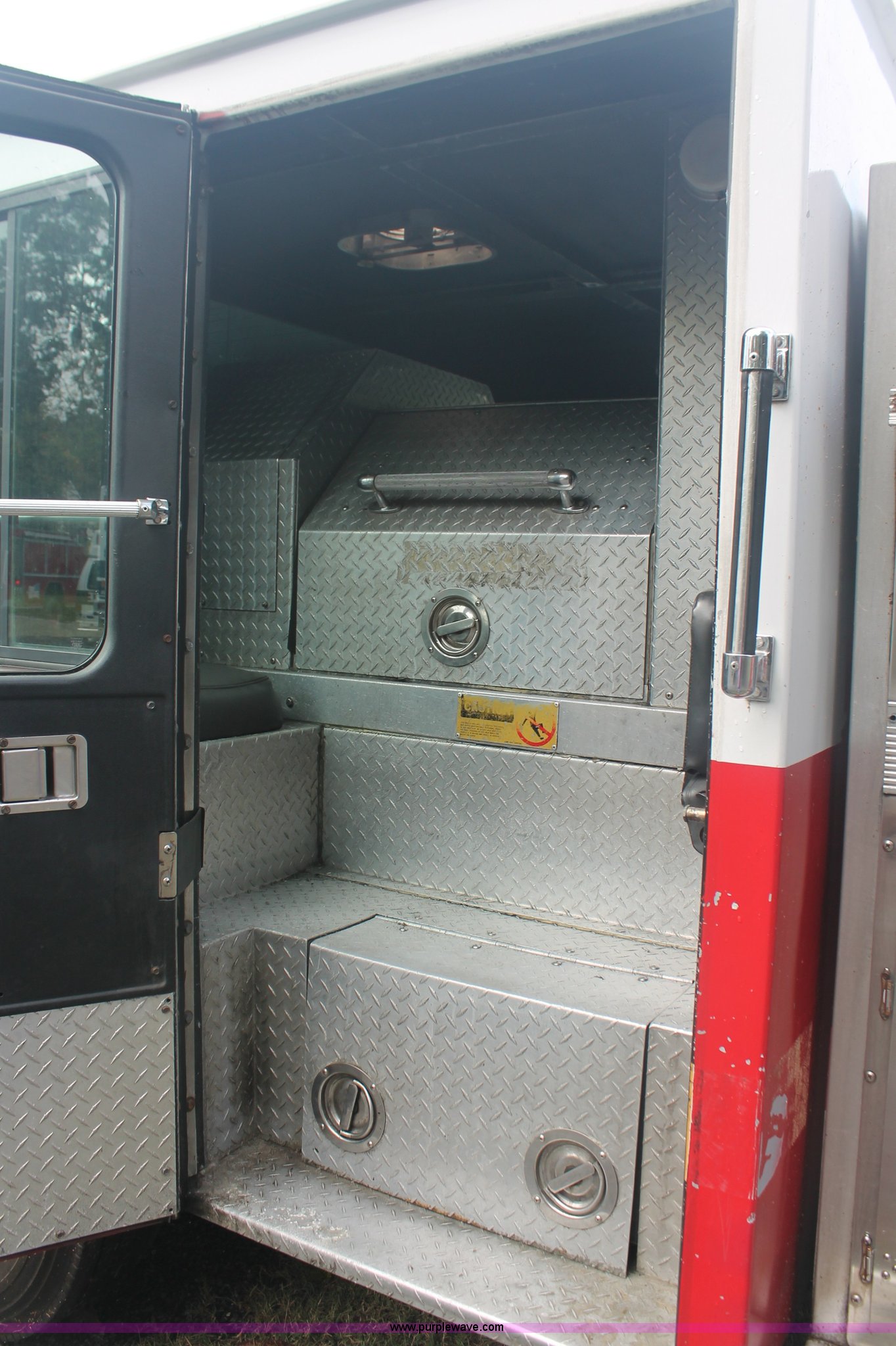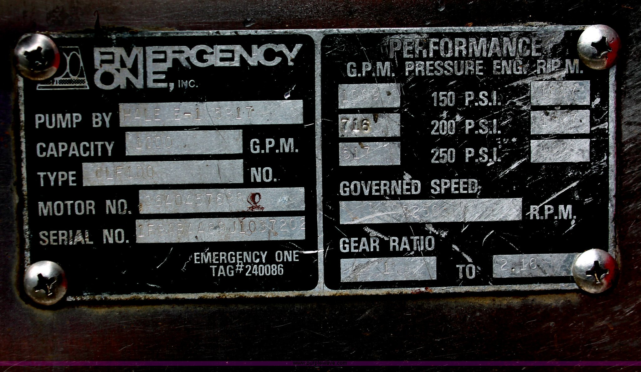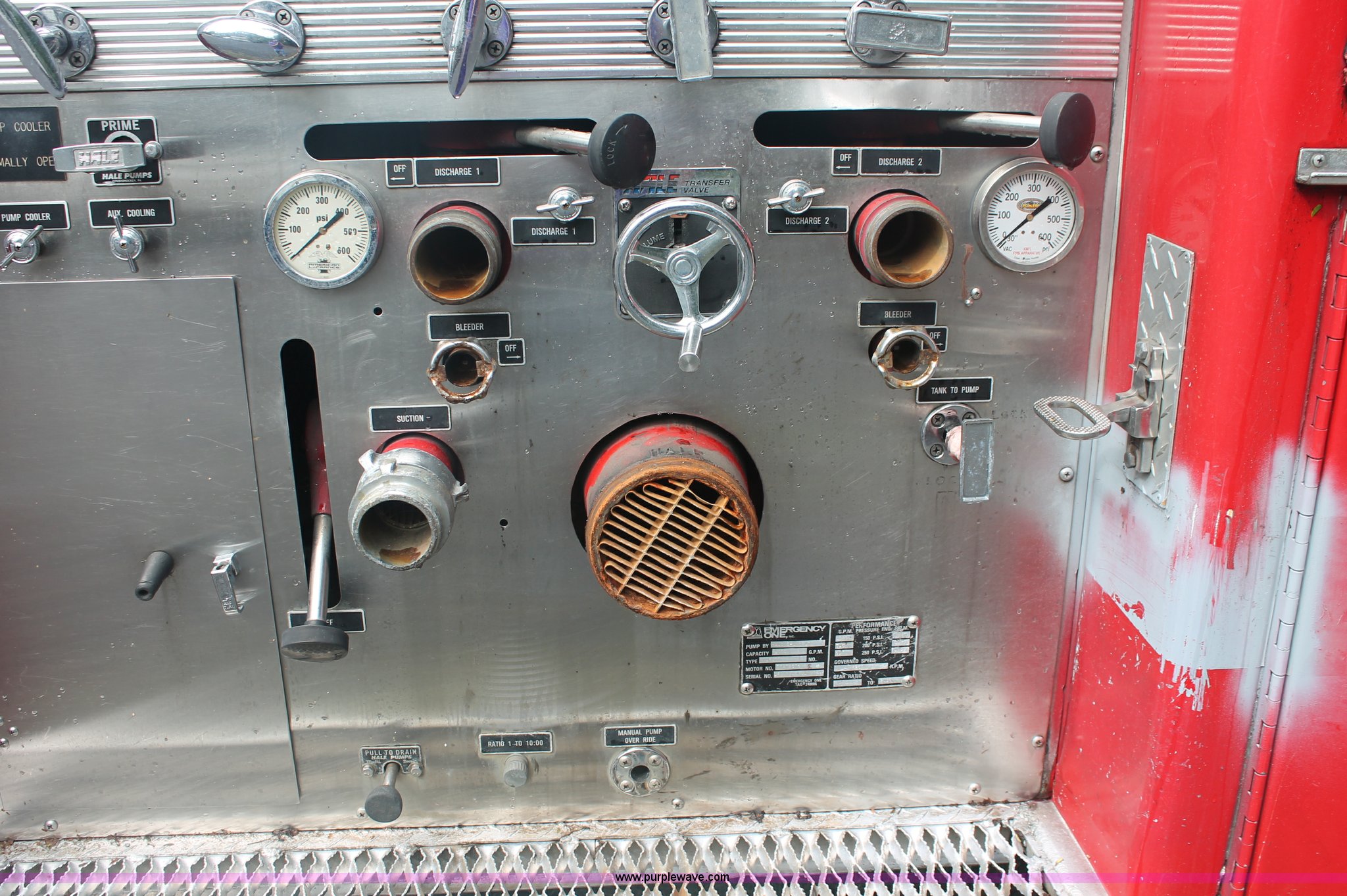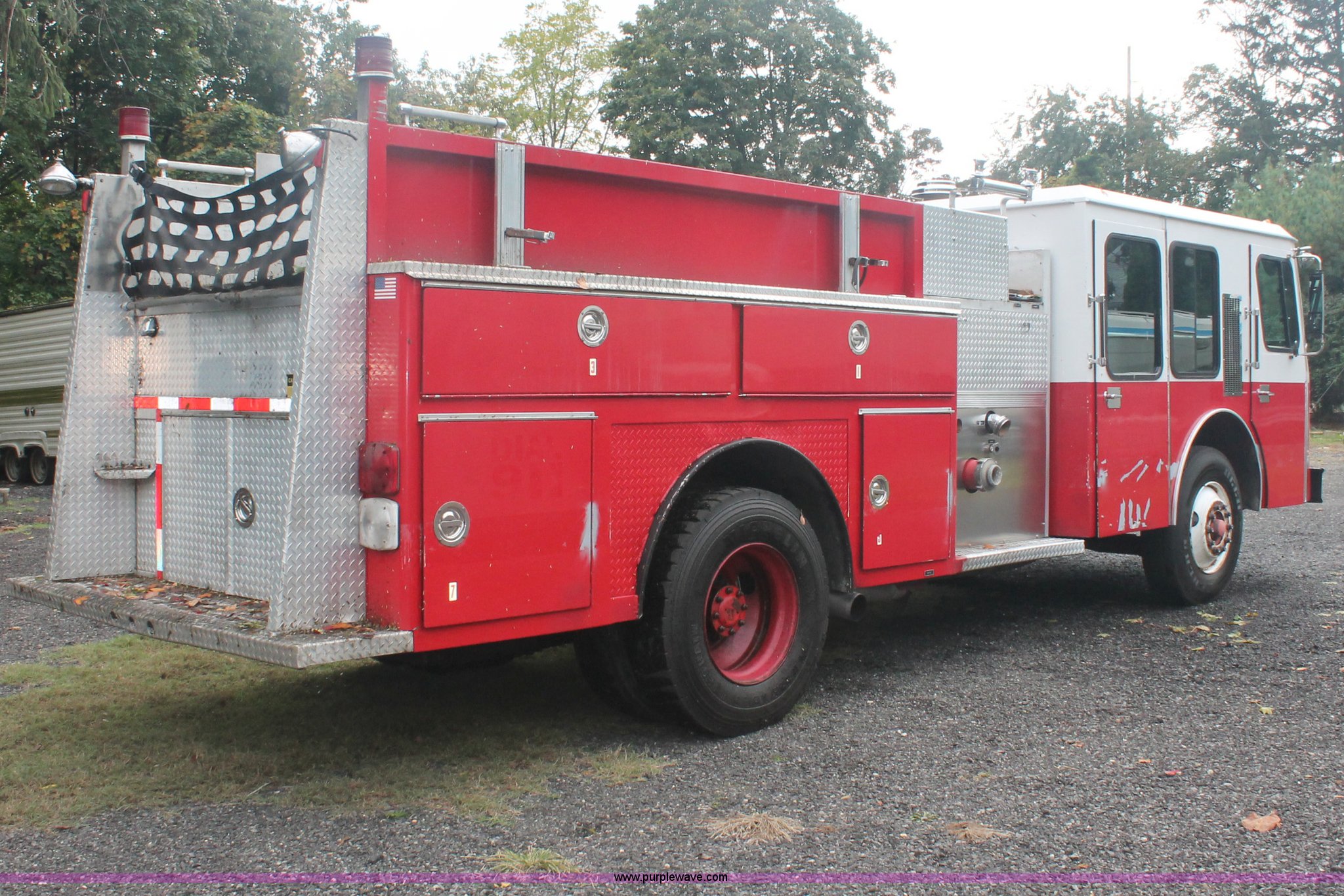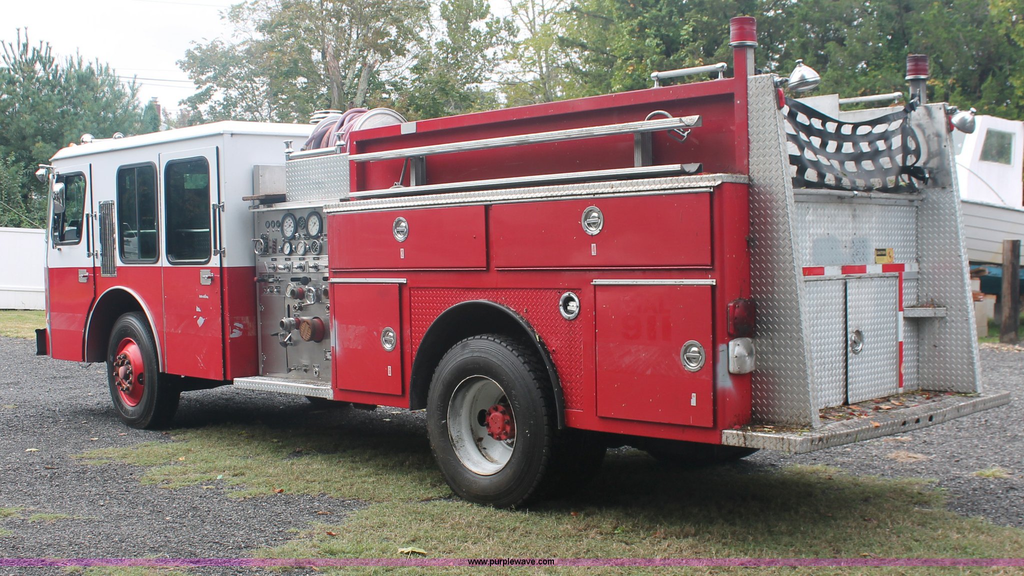 Purple Wave is selling a used Fire Truck or Emergency Vehicle in New Jersey. This item is a 1988 Federal Motors firetruck with the following: 127,469 miles on odometer, 5,709 engine hours on meter, 4,840 average engine hours, Detroit 6L diesel engine, 320 HP, Automatic transmission, Cruise, Manual windows and locks, Vinyl interior, Fan, Spotlight, Light and siren control, Emergency One pump system, 1,000 gpm capacity, (9) compartment fire bed, Hose and reel, Michelin XZE 11R22.5 tires, No flood damage