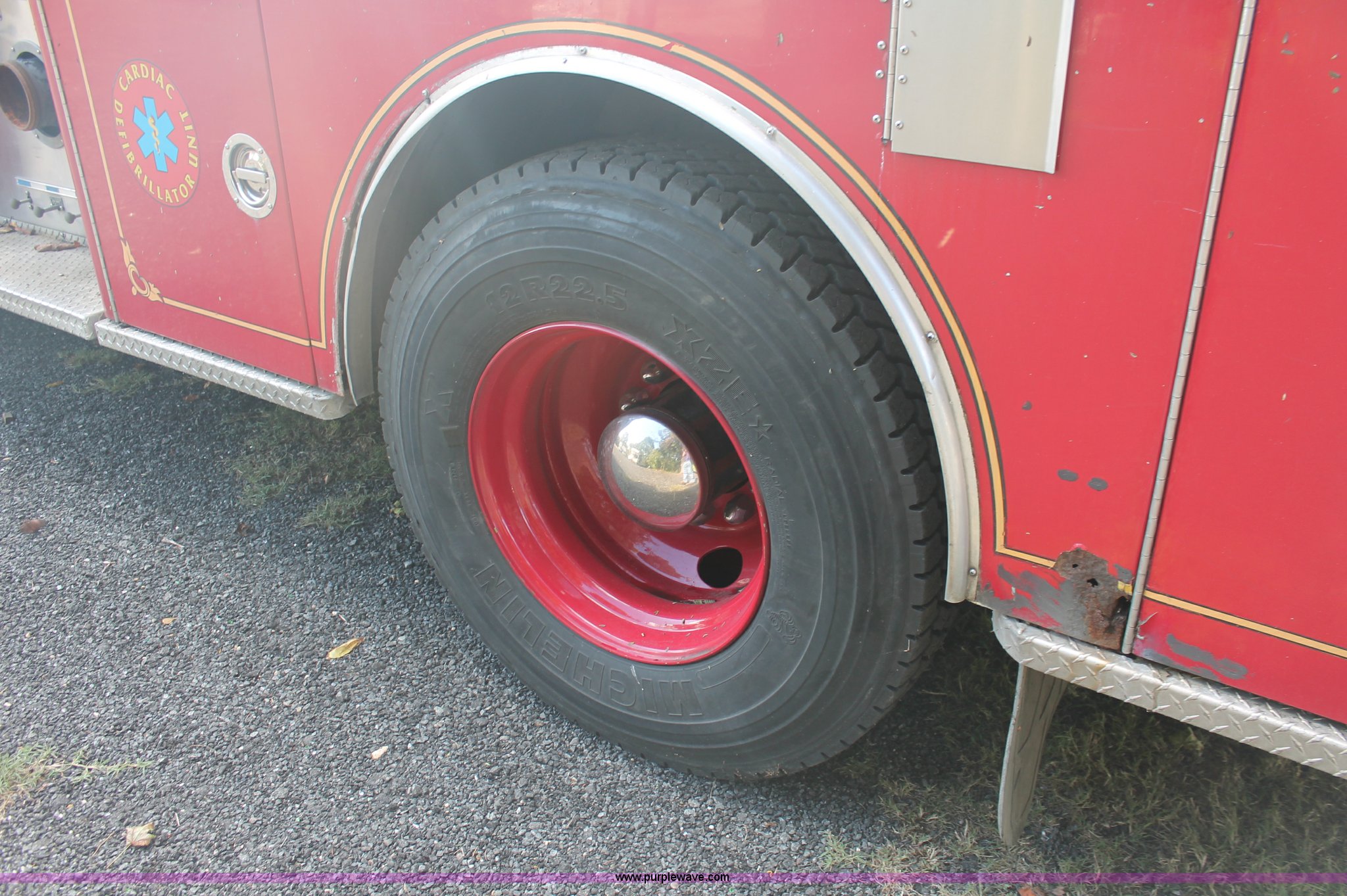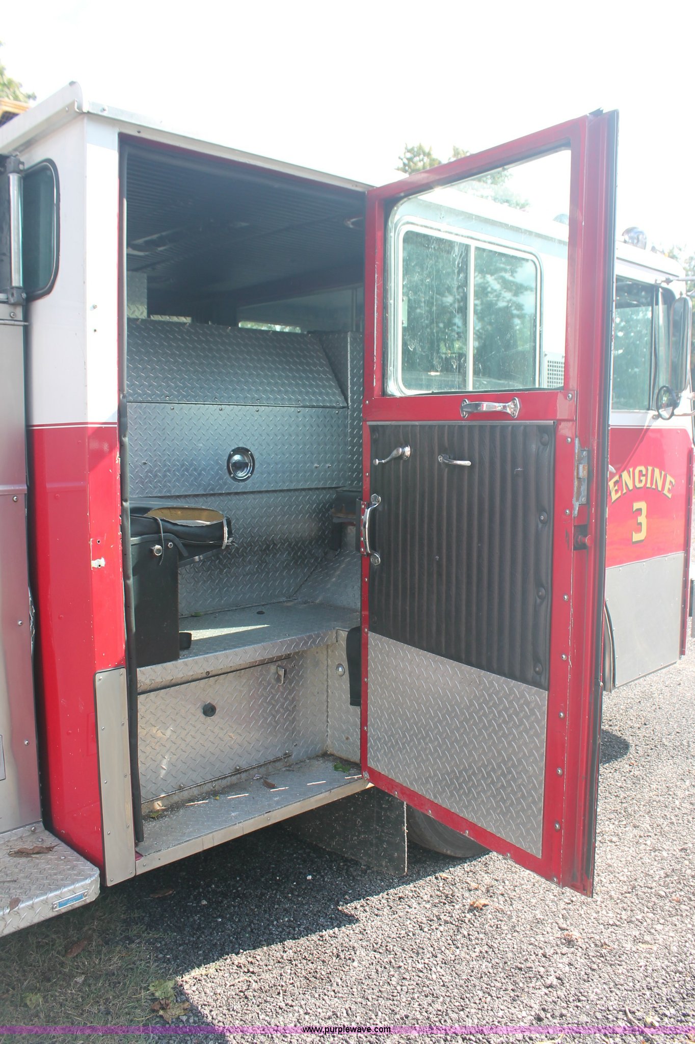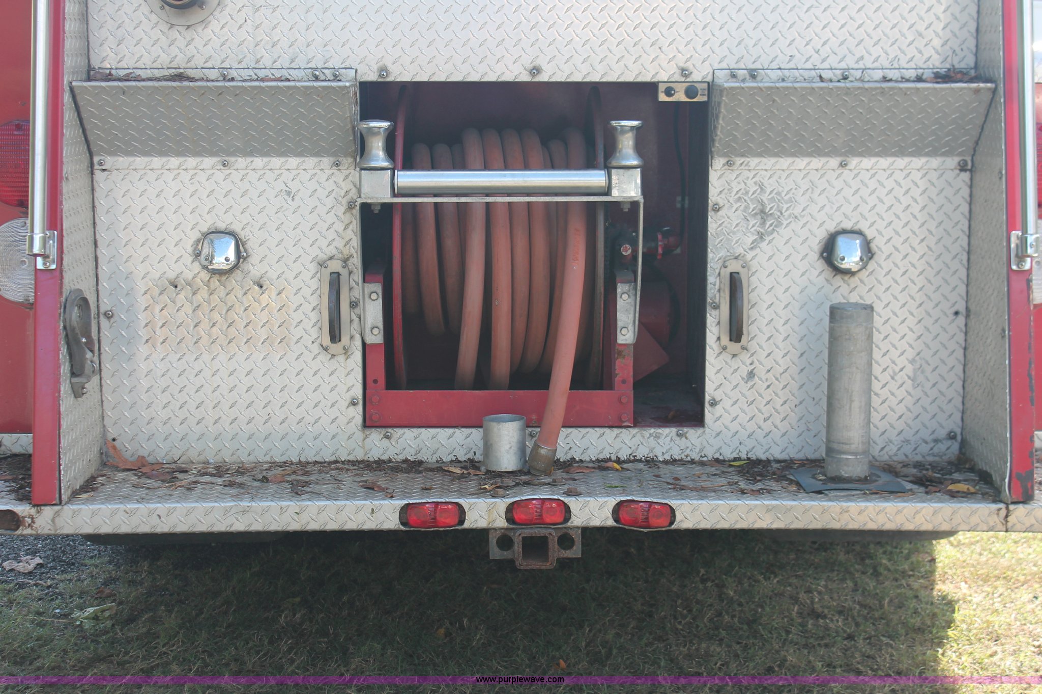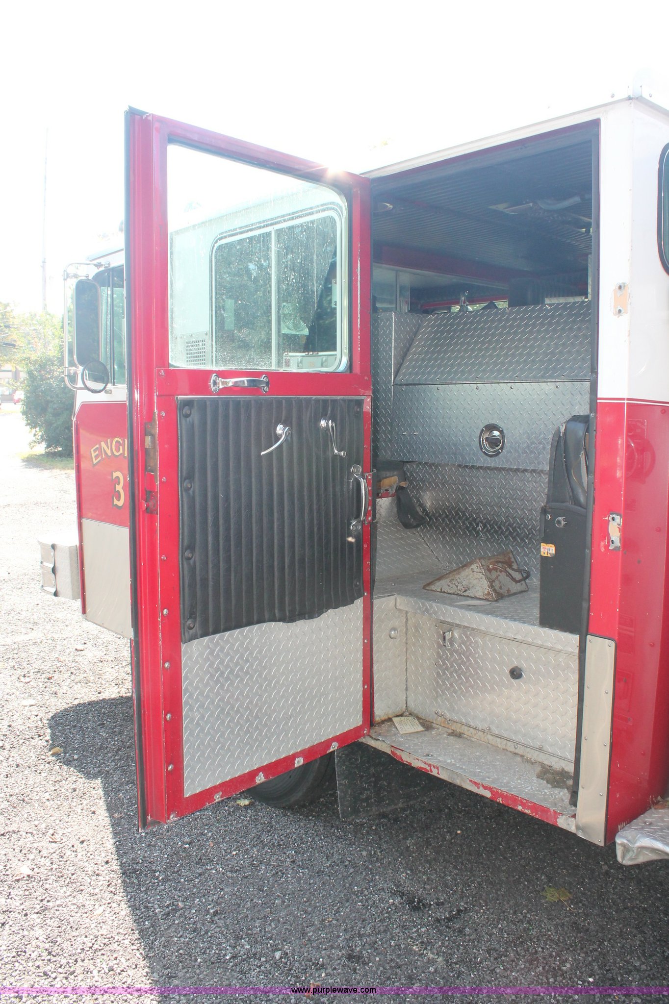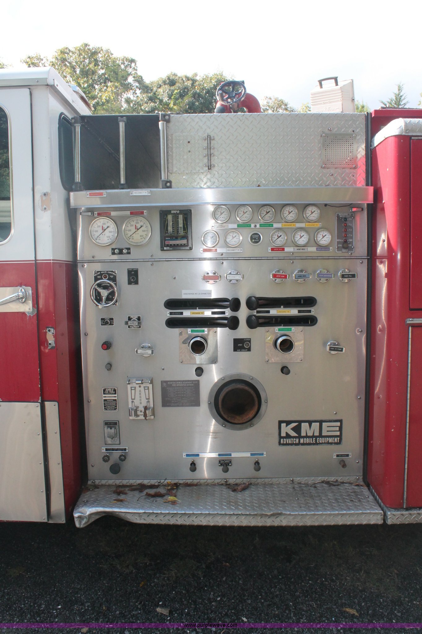 Purple Wave is selling a used Fire Truck or Emergency Vehicle in New Jersey. This item is a 1988 KME firetruck with the following: 71,385 miles on odometer, Cummins diesel engine, Automatic transmission, Manual windows and locks, Fans, Kovatch fire apparatus pump system, Six compartment fire bed, Hose and reel, Tow hooks, Receiver hitch, Air brakes, 12R22.5 tires, No flood damage