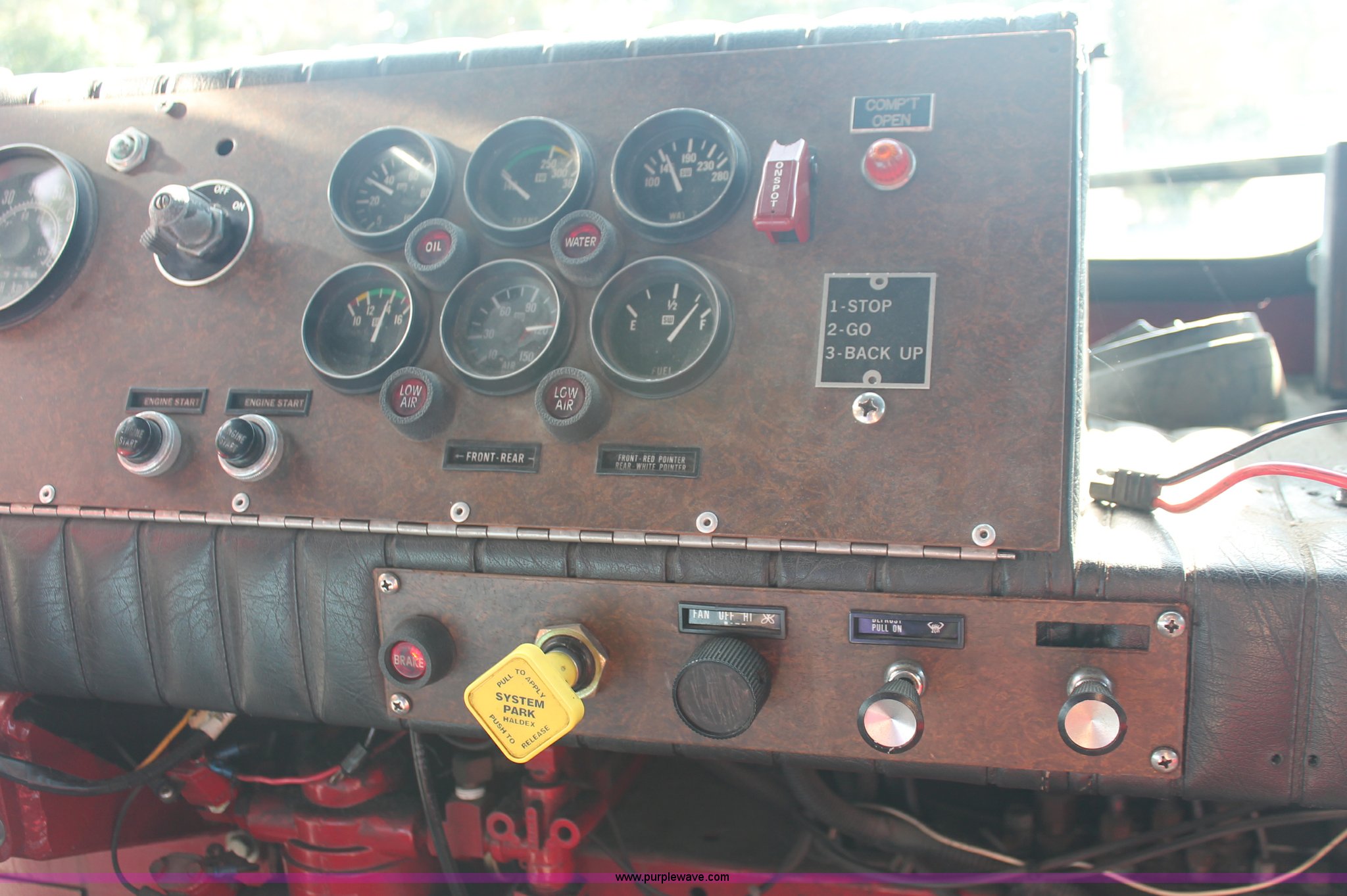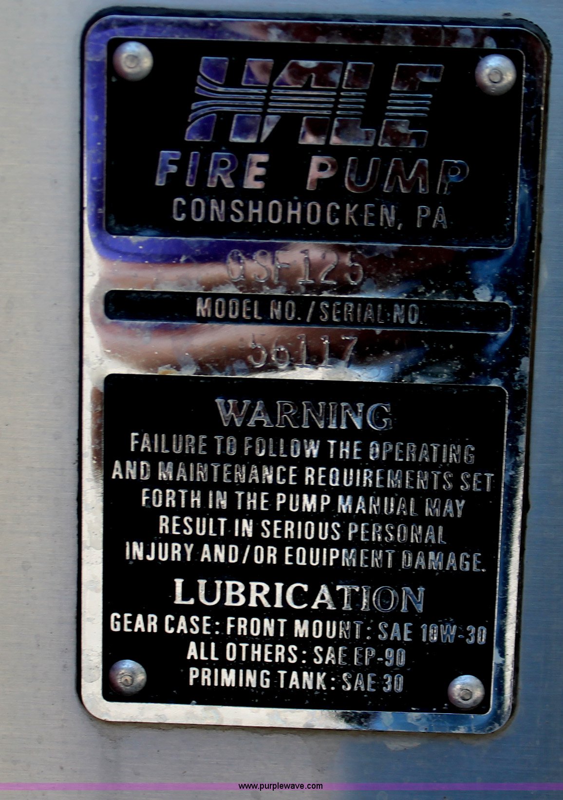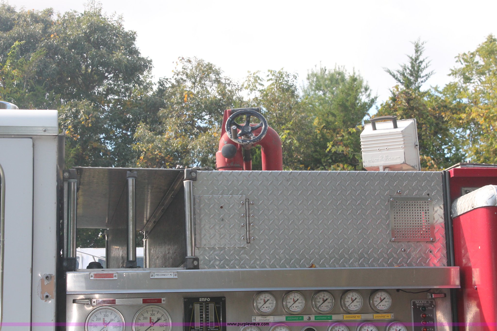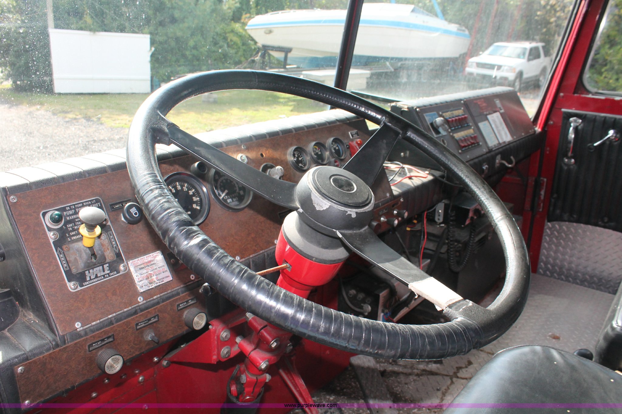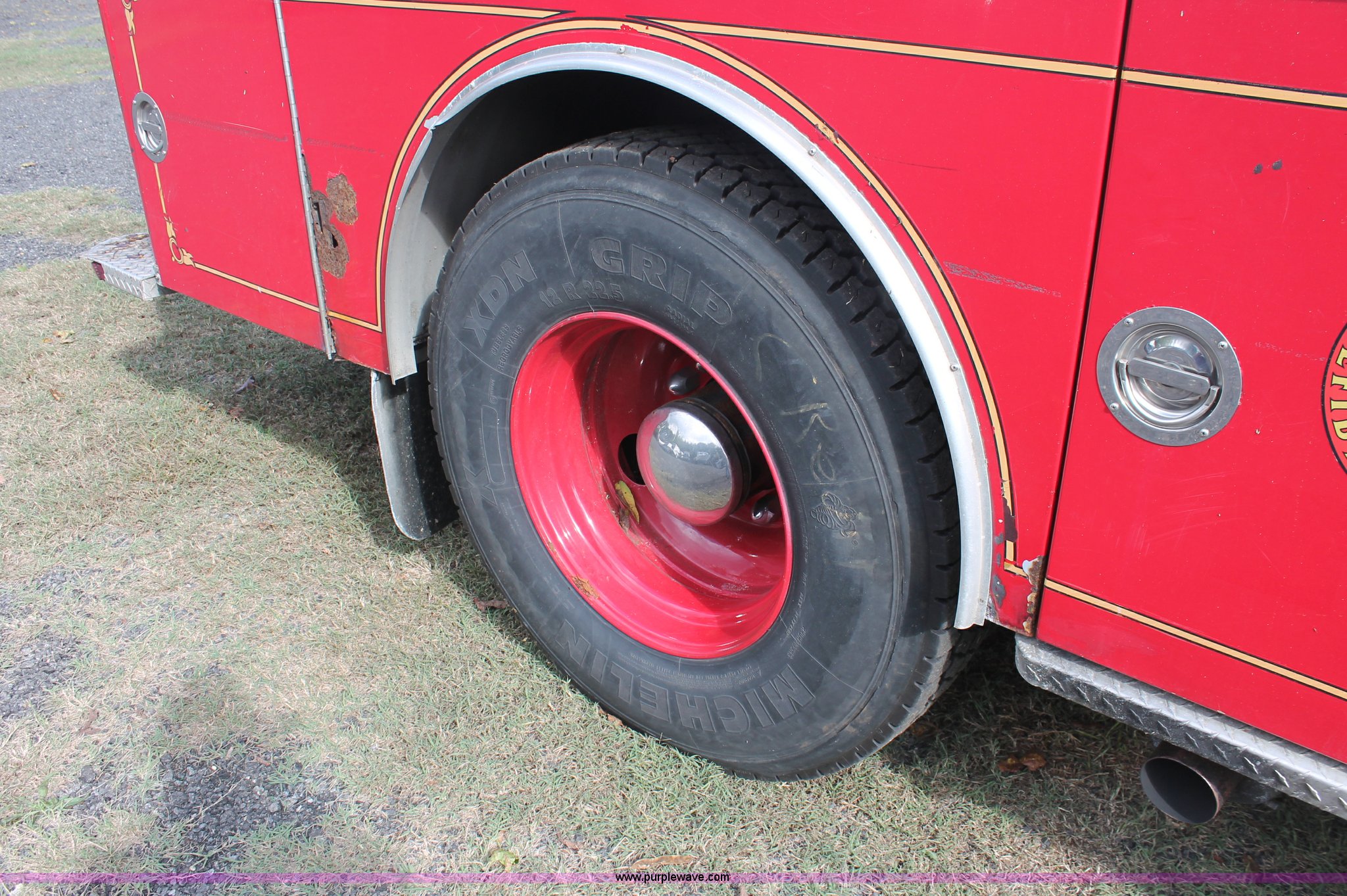 Purple Wave is selling a used Fire Truck or Emergency Vehicle in New Jersey. This item is a 1988 KME firetruck with the following: 71,385 miles on odometer, Cummins diesel engine, Automatic transmission, Manual windows and locks, Fans, Kovatch fire apparatus pump system, Six compartment fire bed, Hose and reel, Tow hooks, Receiver hitch, Air brakes, 12R22.5 tires, No flood damage