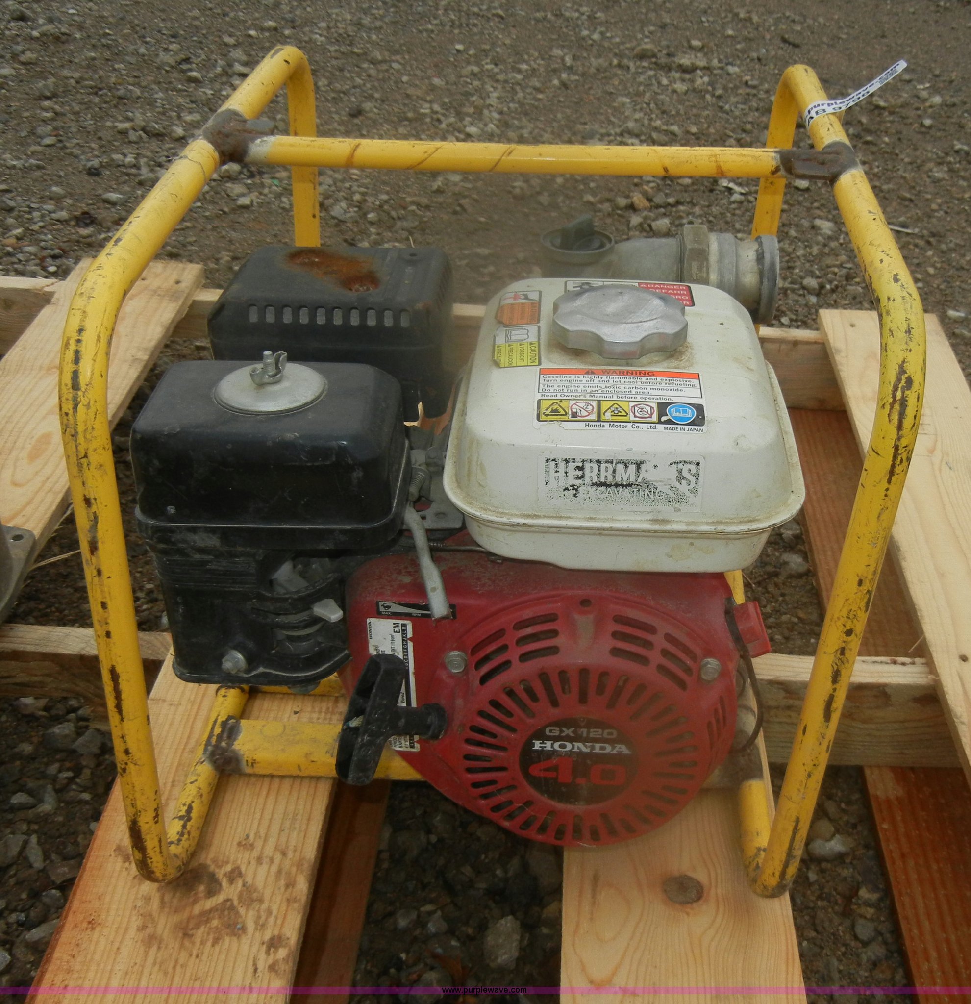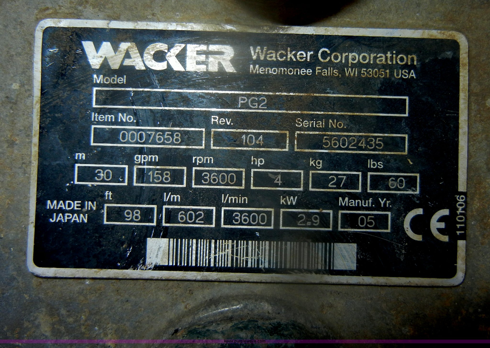 Purple Wave is selling a used Pump in Kansas. This item is a Wacker water pump with the following: Honda 4 HP engine, Needs tune-up, (2) Wacker PG2 pumps