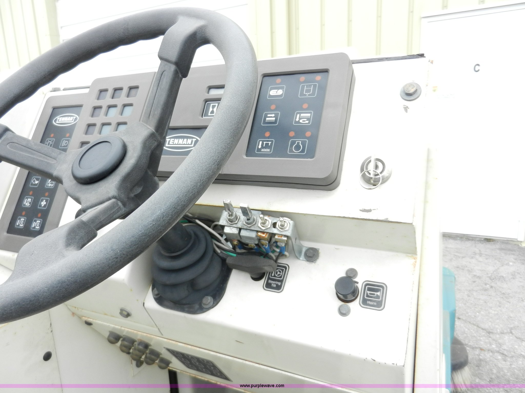 Purple Wave is selling a used Office Supplies and Equip. in Kansas. This item is a Tennant 8400 industrial floor sweeper/scrubber with the following: 3,114 hours on meter, Four cylinder gas engine, 60" sweep path, 48" scrub path, 1,200 lb hopper cap, GVWR 7,000 lbs, Operational, Needs scrubbing brushes replaced, Serial 8400-10026