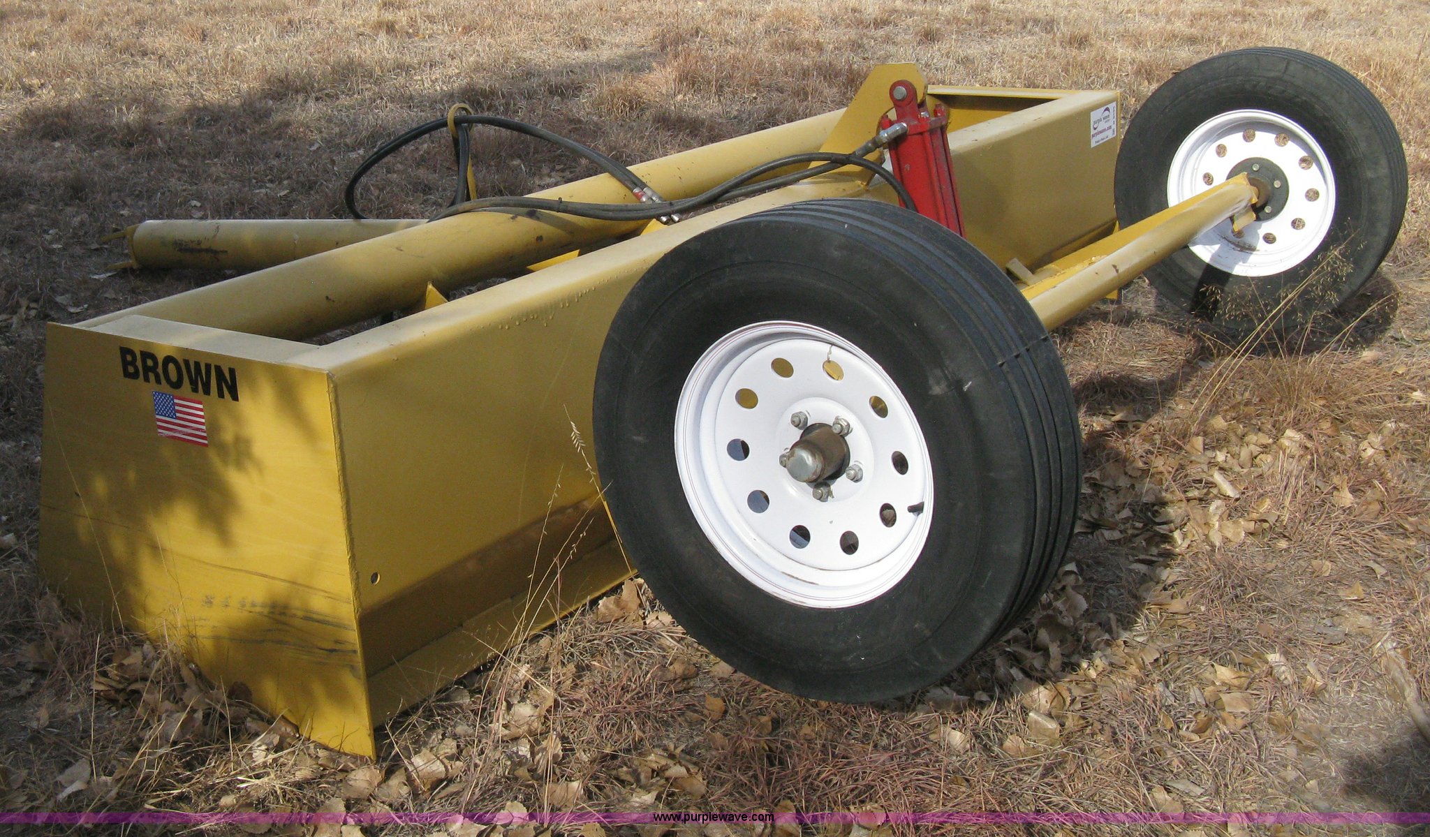 Purple Wave is selling a used Pull Type Scraper in Kansas. This item is a Brown DSU10 commercial box blade with the following: 10'W, Hydraulic lift, Rear dolly axle, Five lug, 15" wheels, P215/70R15 tires, Serial 08483