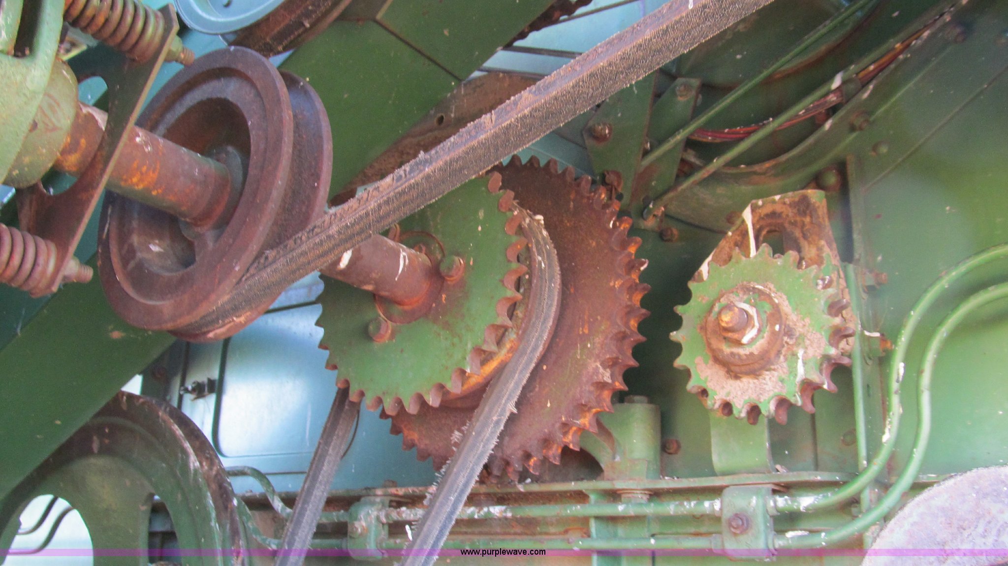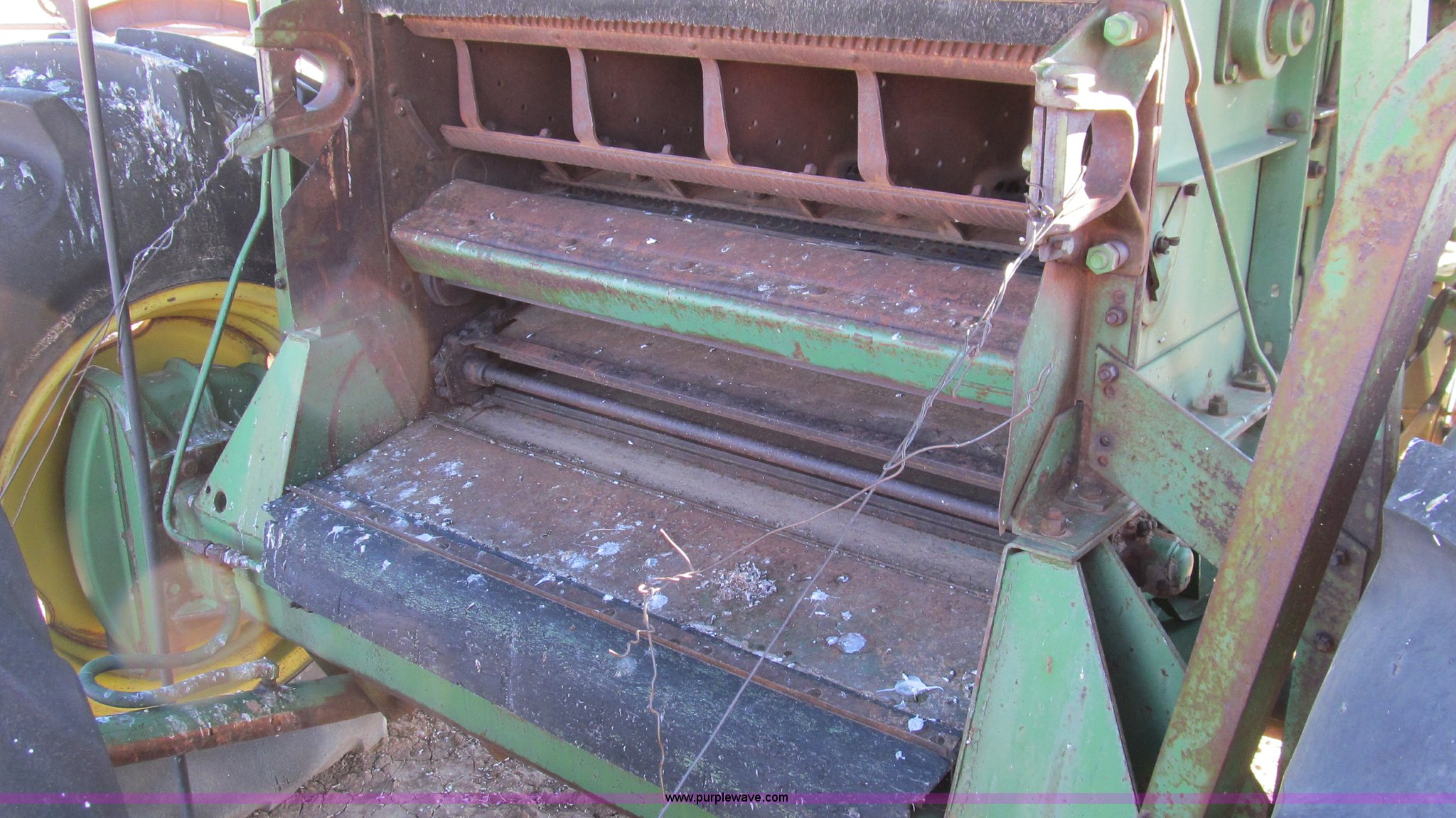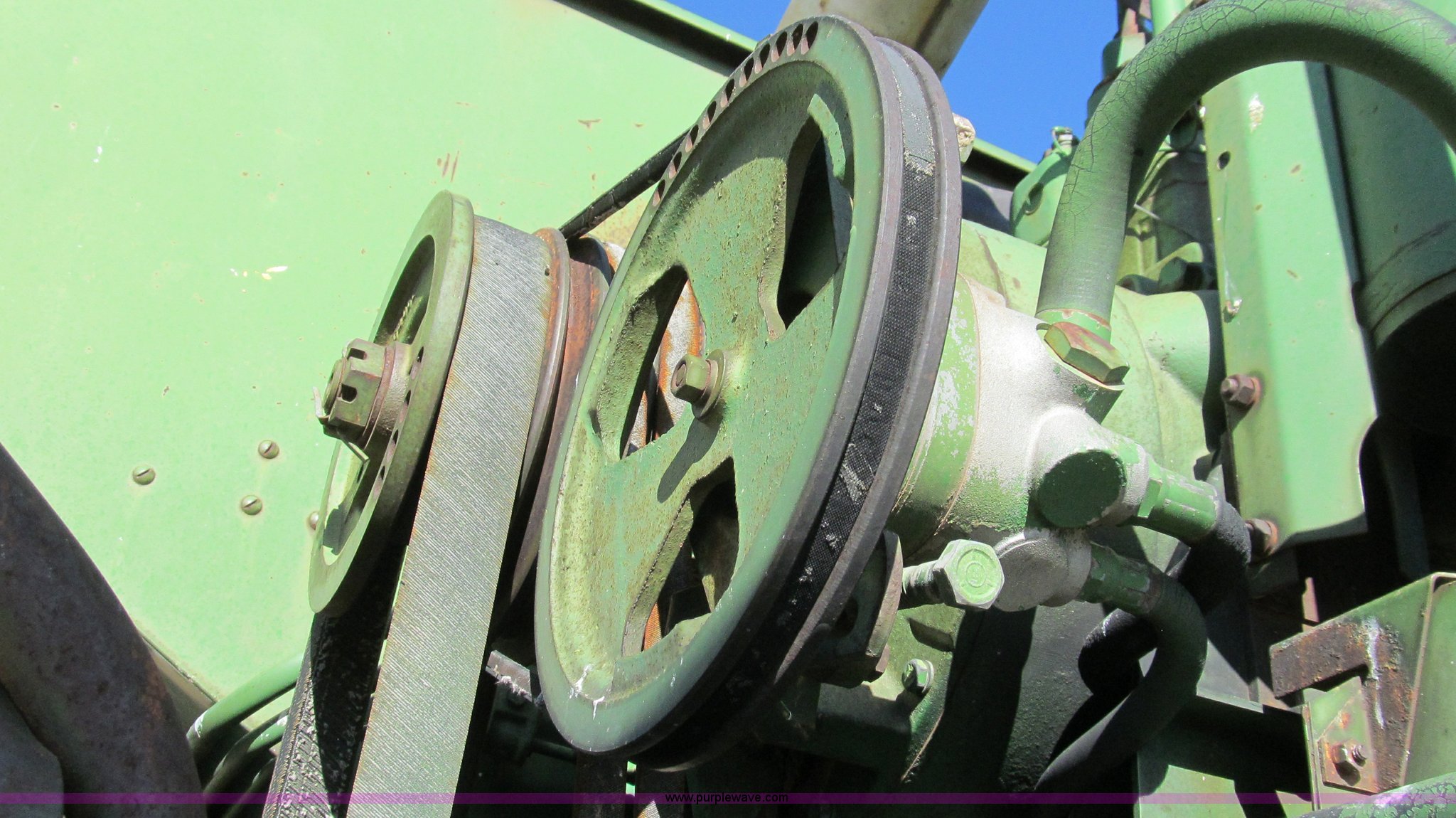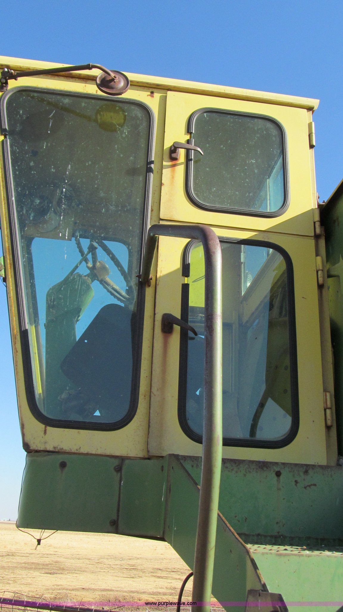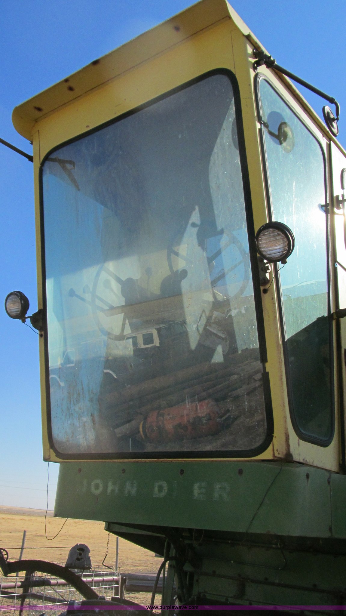 Purple Wave is selling a used Combine in Texas. This item is a John Deere 95 combine with the following: Six cylinder gas engine, 18.4 x 26 drive tires, Serial 36414