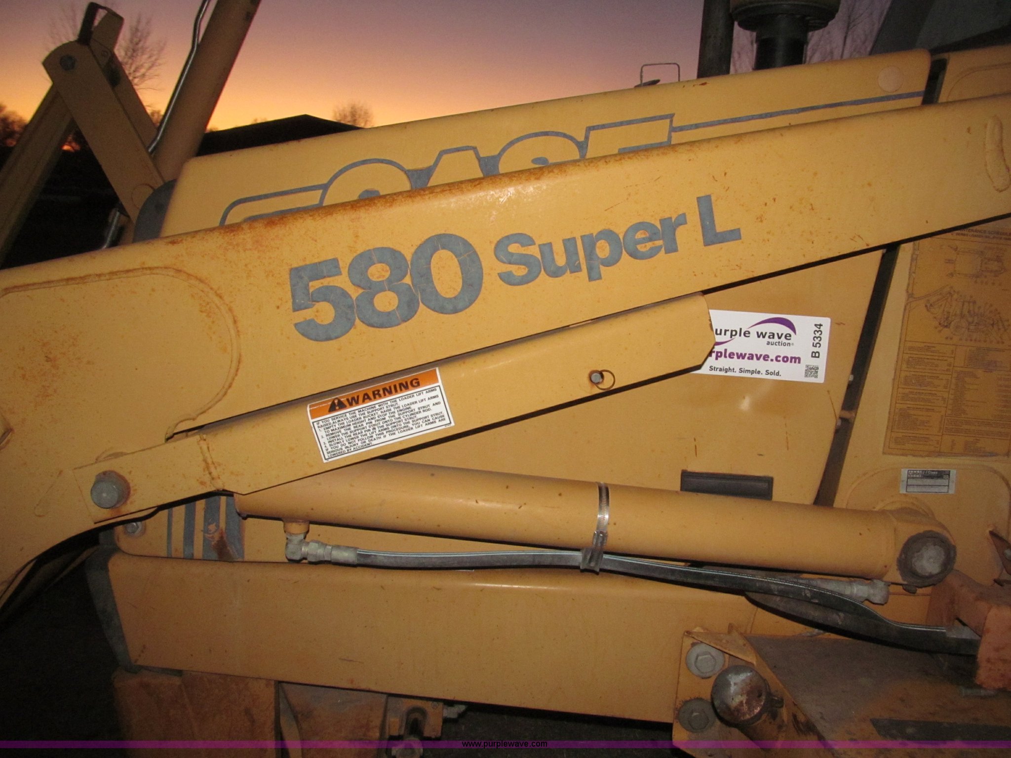 Purple Wave is selling a used Tractor Loader Backhoe in Nebraska. This item is a 1995 Case 580 Super L extendahoe backhoe with the following: 3,870 hours on meter, Case 4T-390 diesel engine, Serial 45142347, Engine block heater, Shuttle shift transmission, 4F-4R, Cab, AC and heat, AC inoperable, Sparkomatic AM/FM/cassette, Single lever loader control, 82" loader bucket, Smooth cutting edge, Two stick backhoe operation, 12" three tooth backhoe bucket, Additional 36" bucket included, Missing two pin bushings, 11L-16.5L front tires, 19.5L-24 rear tires, 31 gallon fuel tank, Approx. 14,700 lbs. base operating weight, Recently replaced right side cab window and drivers seat, Missing one stabilizer street pad, Serial JJG0190966