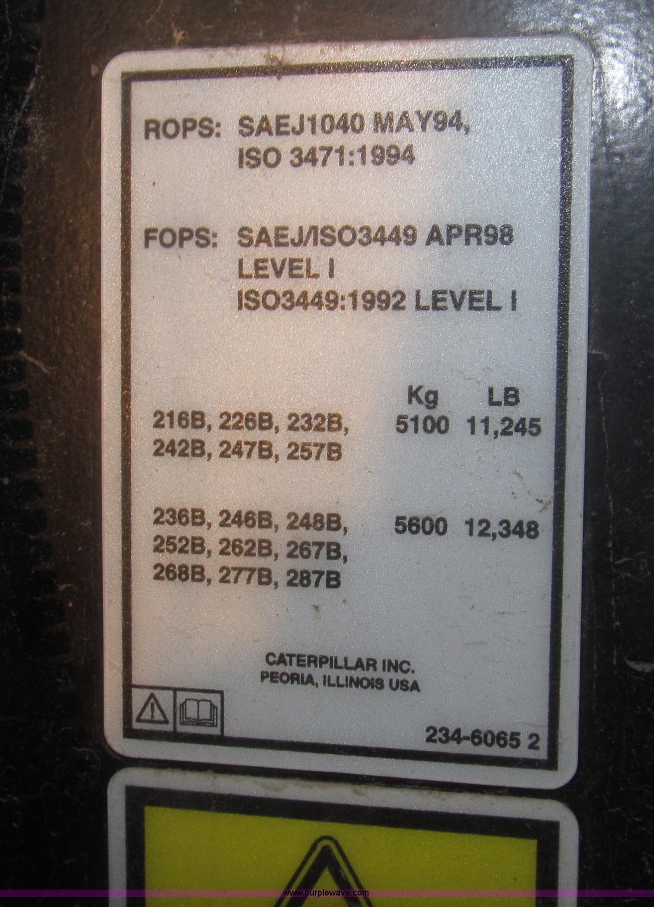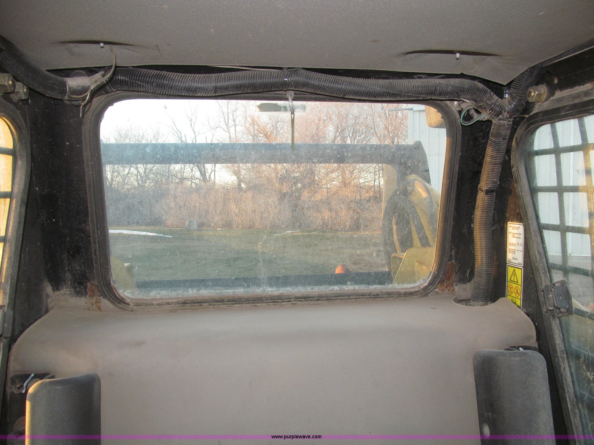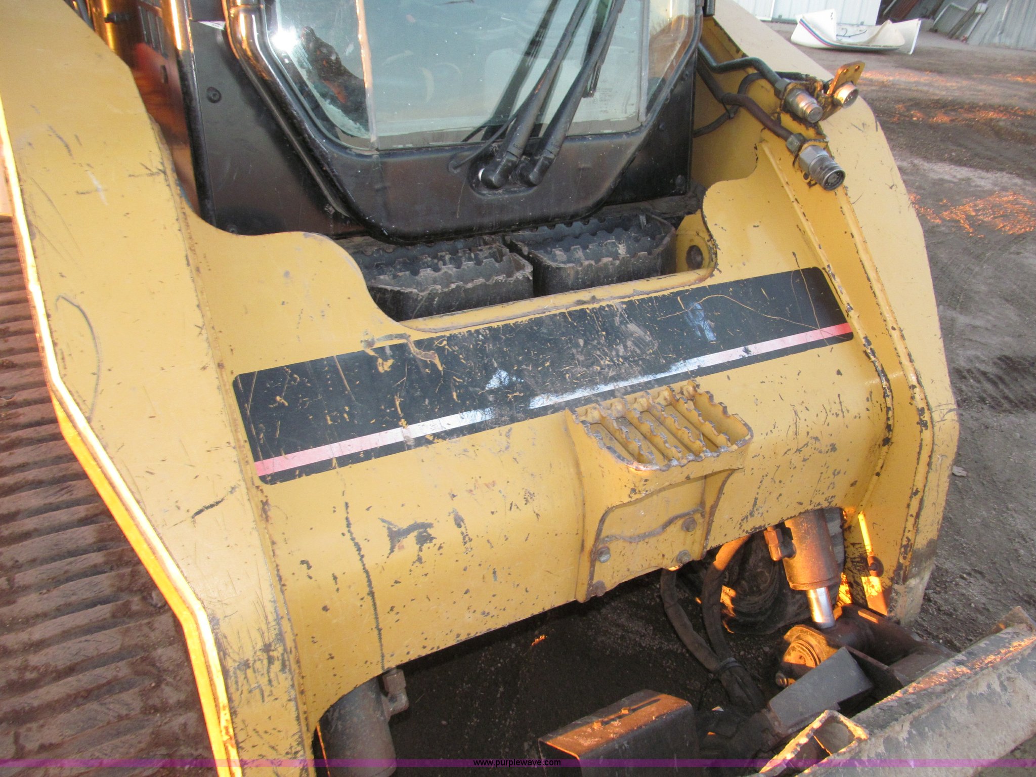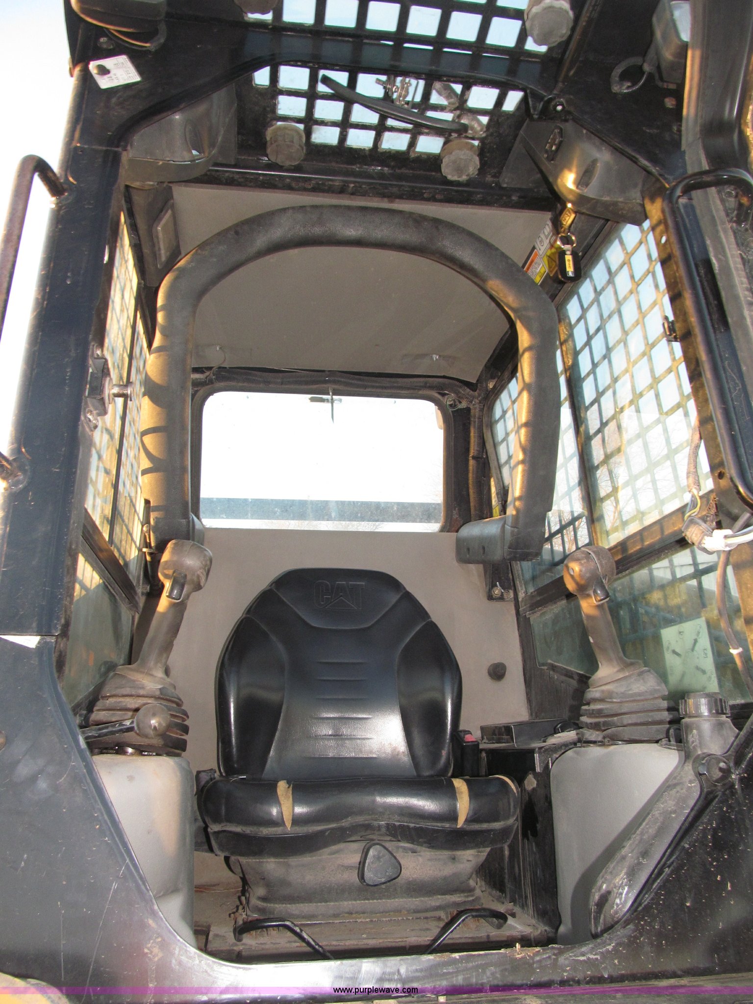 Purple Wave is selling a used Tracked Skid Steer Loader in Nebraska. This item is a 2005 Caterpillar 287B track skid steer with the following: 2,161 hours on meter, Mitsubishi 3044CDITT 3.3L four cylinder turbo diesel engine, 80.5 HP, Foot and hand throttle controls, Enclosed cab, AC and heat, Rear view mirror, Emergency escape rear window, Hydraulic powered quick coupler, 80"W smooth edge quick attach bucket, 3,598 lb operating load, 7,198 lb tipping load, Flat face hydraulic fittings, Glow plugs, Safety lab bar, Safety boom support bar, 29 gallon fuel capacity, Thumb control auxiliary hydraulics, 17.5"W ASV rubber tracks, 10,273 lbs. base operating weight, Eight pin auxiliary electric adapter loose, Hydraulic hose guides for attachments, Door replaced in March 2012, Replaced upper drive bearings in 2012, 12V top post battery replaced one year ago, Track drive rollers replaced Spring 2011, Tracks replaced in Spring 2011, Serial CAT0287BTZ5A01201