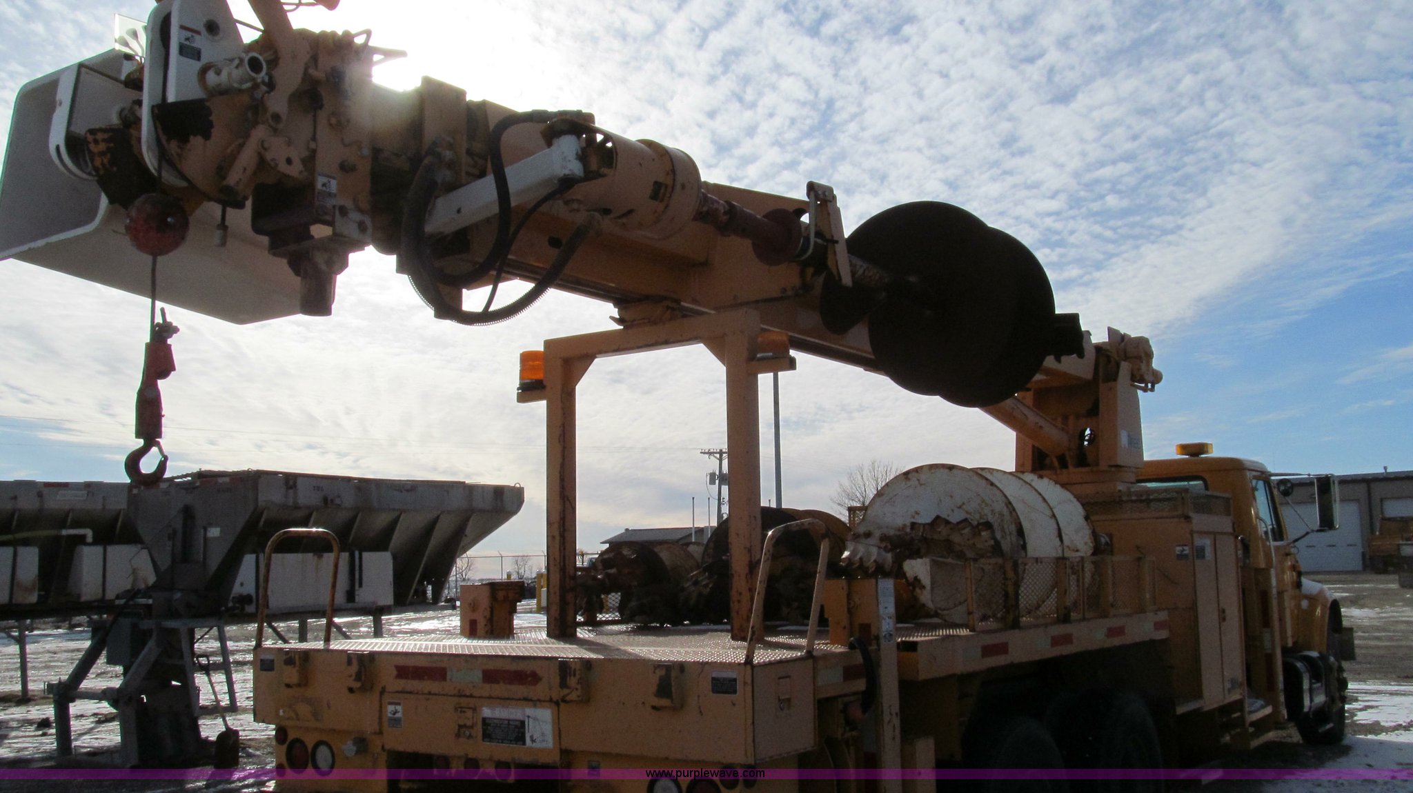 Purple Wave is selling a used Digger Derrick Truck in Missouri. This item is a 2001 International 4900 digger derrick truck with the following: 91,642 actual miles, 5,595 hours on meter, International DT530 8.7L L6 diesel engine, Allison MD3560 six speed automatic transmission, AC and heat, AM/FM, Air suspension seat, Altec digger derrick mounted bed, Model D3060-TB, Bed serial 37-69896, Digger serial 0400CA0312, (2) sets of outriggers, Pole guide, Three section hydraulic boom, Third section replaced July 2010, Bed mounted and remote boom controls, (7) augers, 8", 10", 12", 18", 24", 30", and 36" diameters, 12'4" travel height, 50 gallon fuel tank, Spring suspension, Air brakes, Pintle hitch, 315/80R22.5 front tires, 11R22.5 rear tires, GVWR 56,000 lbs, View inspection report, MoDOT ID G8678