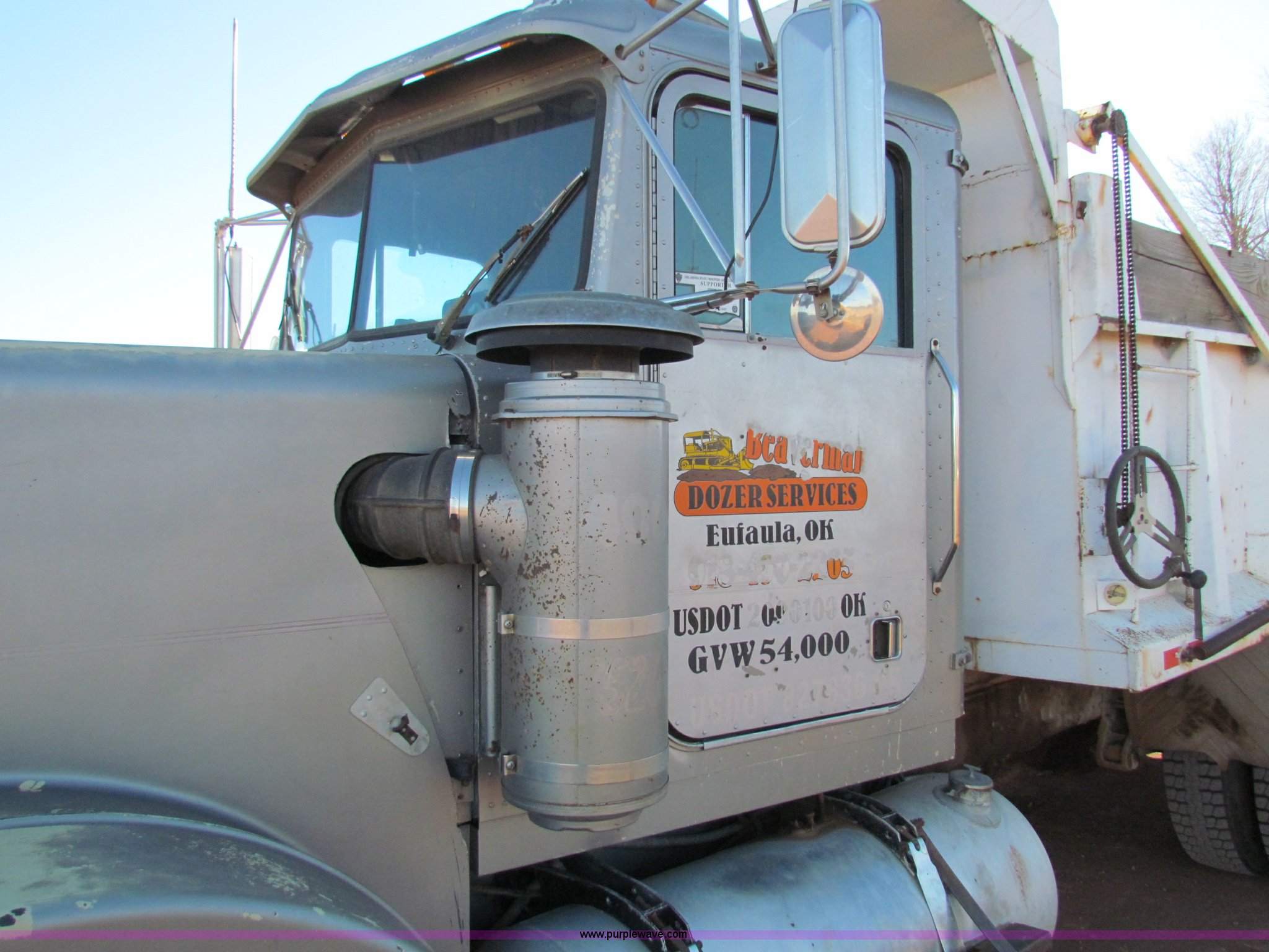 Purple Wave is selling a used Construction Dump Truck in Oklahoma. This item is a 1985 Marmon dump truck with the following: 94,303 miles on odometer, Diesel engine, Eaton Fuller Road Ranger 15 speed manual transmission, Twin screw, Air suspension seat, Exterior visor, Pintle hitch, Rollover tarp, Air operated end gate, Three stage hoist, Single fuel tank, Spring suspension, PTO, Air brakes, 285/75R24.5 tires
