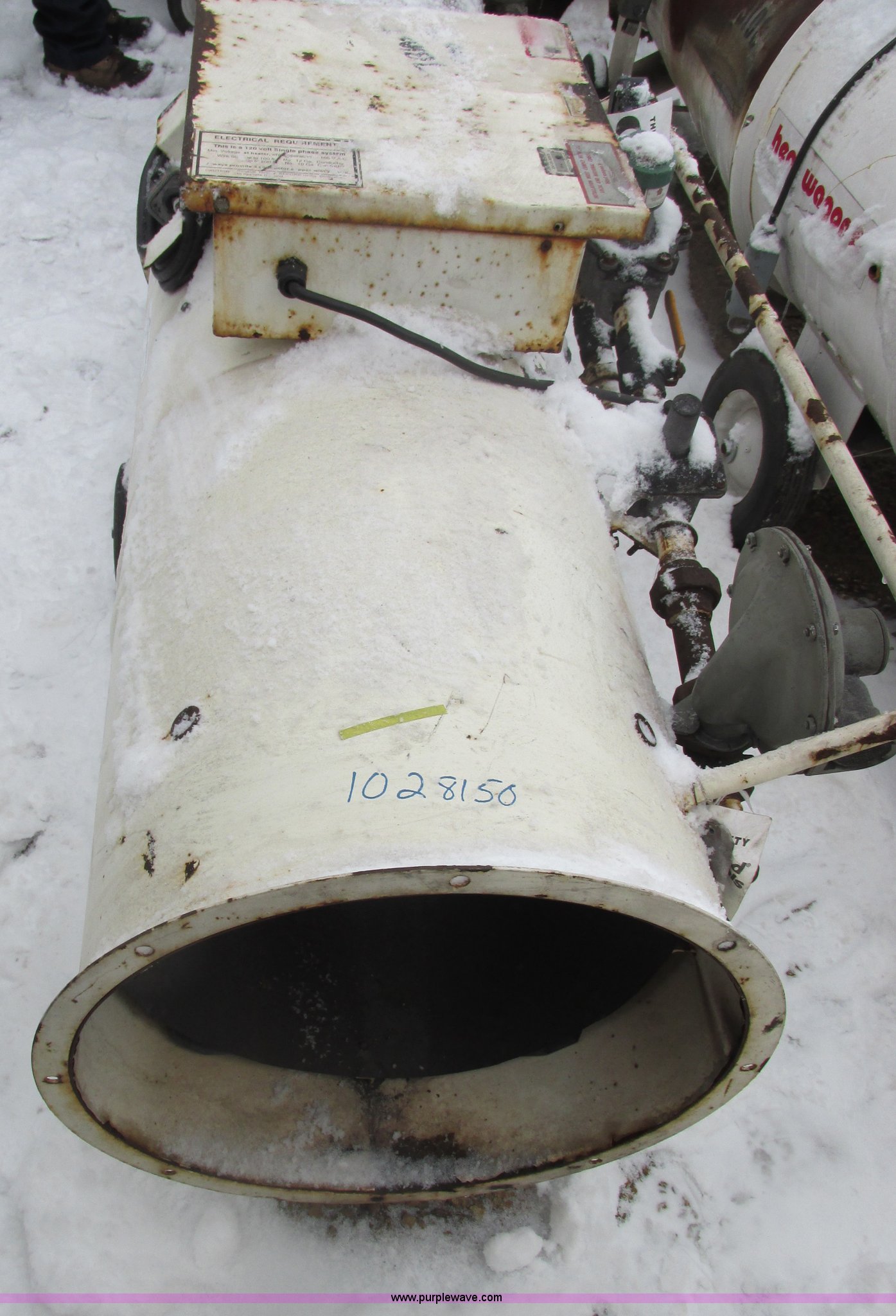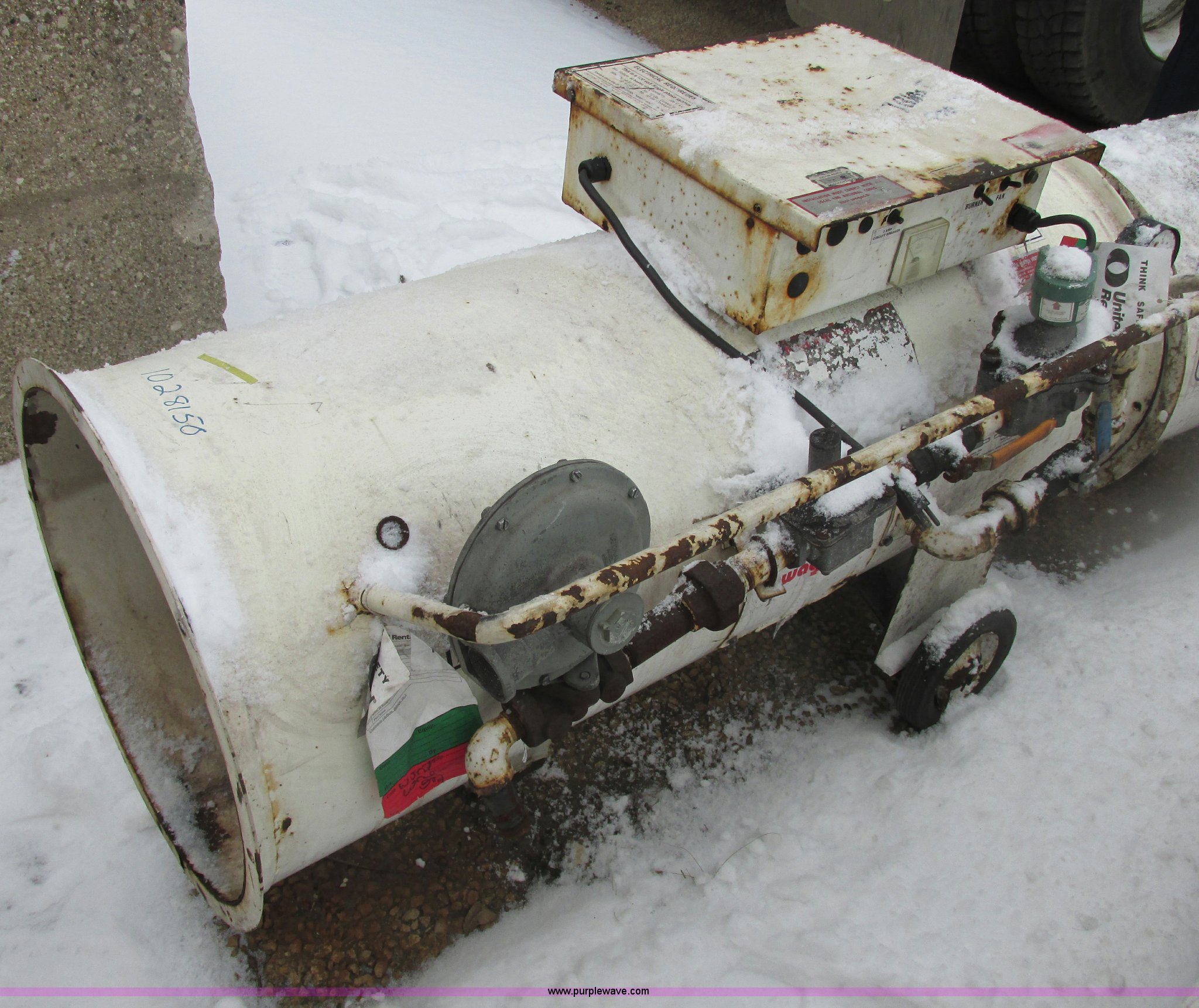 Purple Wave is selling a used Tools in Indiana. This item is a Heat Wagon 1800 natural gas direct fired heater with the following: 750,000 BTU, Working when removed from service last year, EIN 1028150