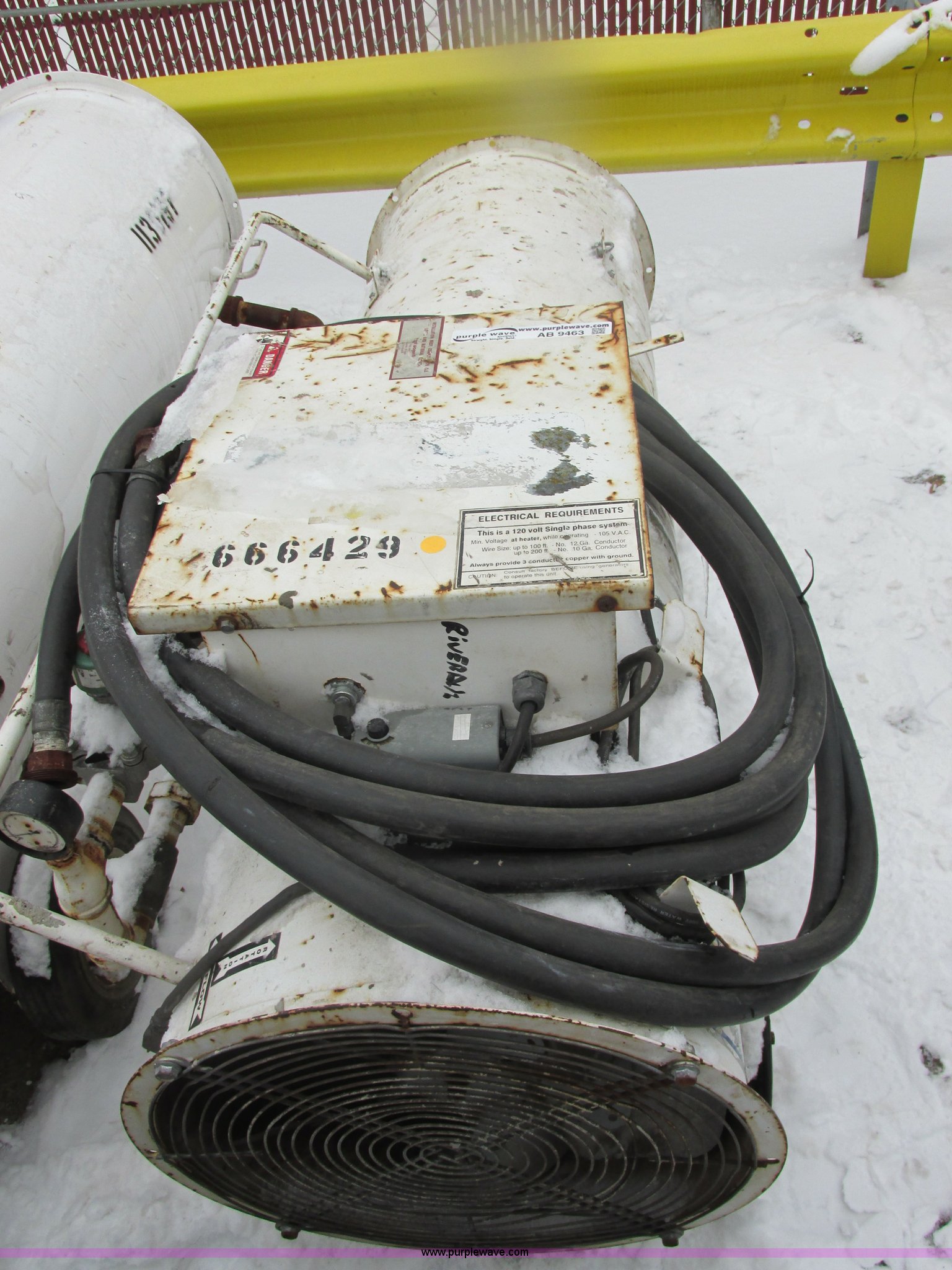 Purple Wave is selling a used Tools in Indiana. This item is a Heat Wagon 200L natural gas direct fired heater with the following: 1,000,000 BTU, Working when removed from service last year, EIN 666429