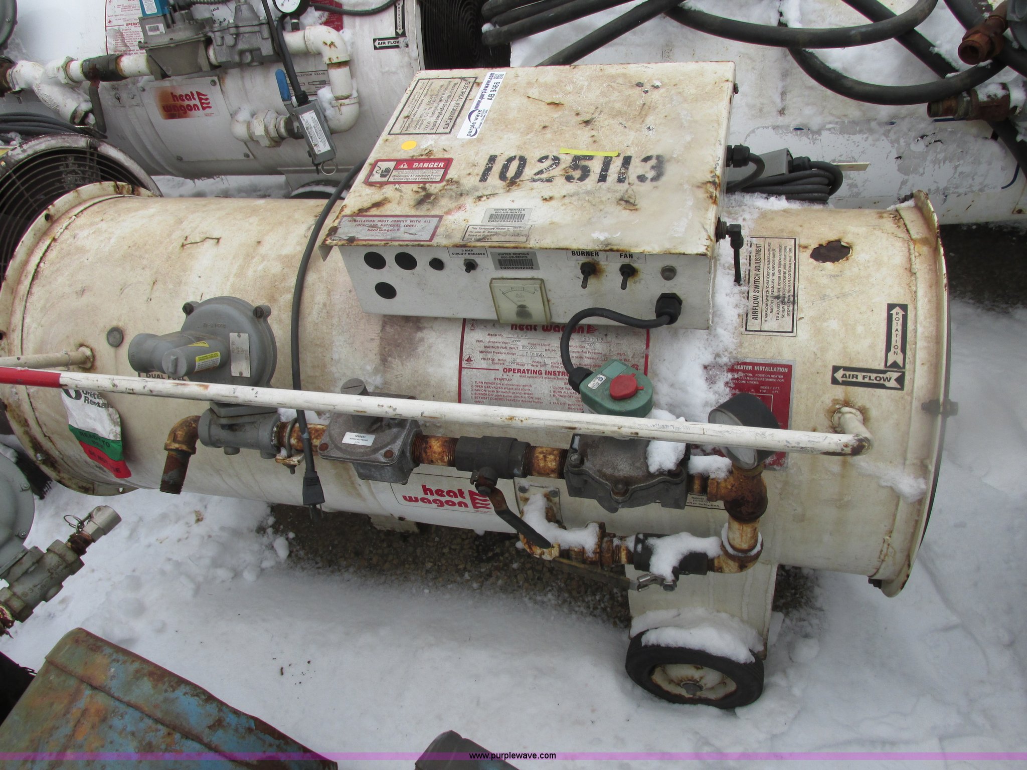 Purple Wave is selling a used Tools in Indiana. This item is a Heat Wagon 1800 direct fired heater with the following: 750,000 BTU, Natural gas or propane operation, Working when removed from service last year, EIN 1025113