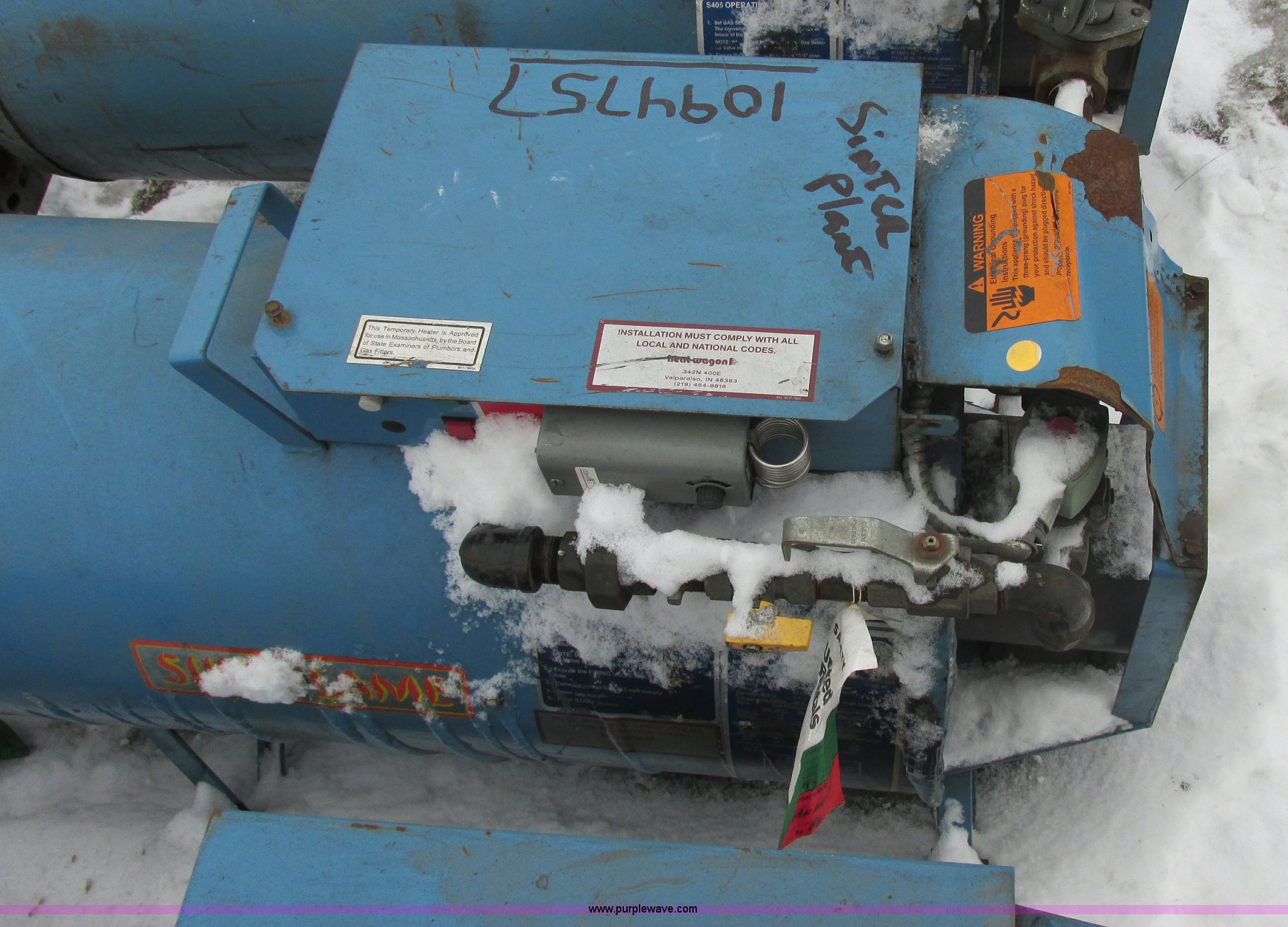 Purple Wave is selling a used Tools in Indiana. This item is a (4) natural gas direct fired heaters with the following: (2) Heat Wagon S405, (2) Sureflame S405, 400,000 BTU, Working when removed from service last year, EIN 137601,1094757,1094764,789865