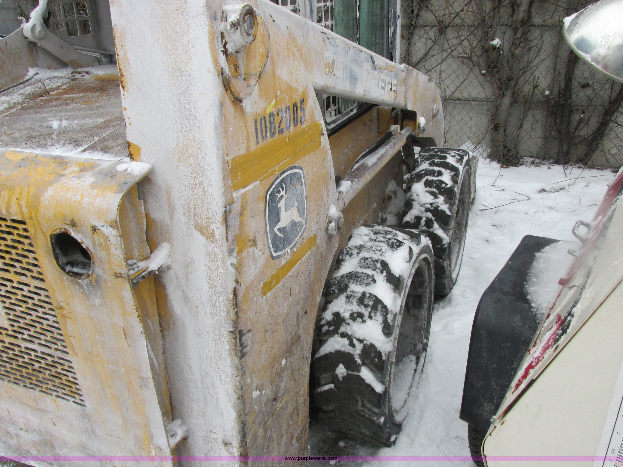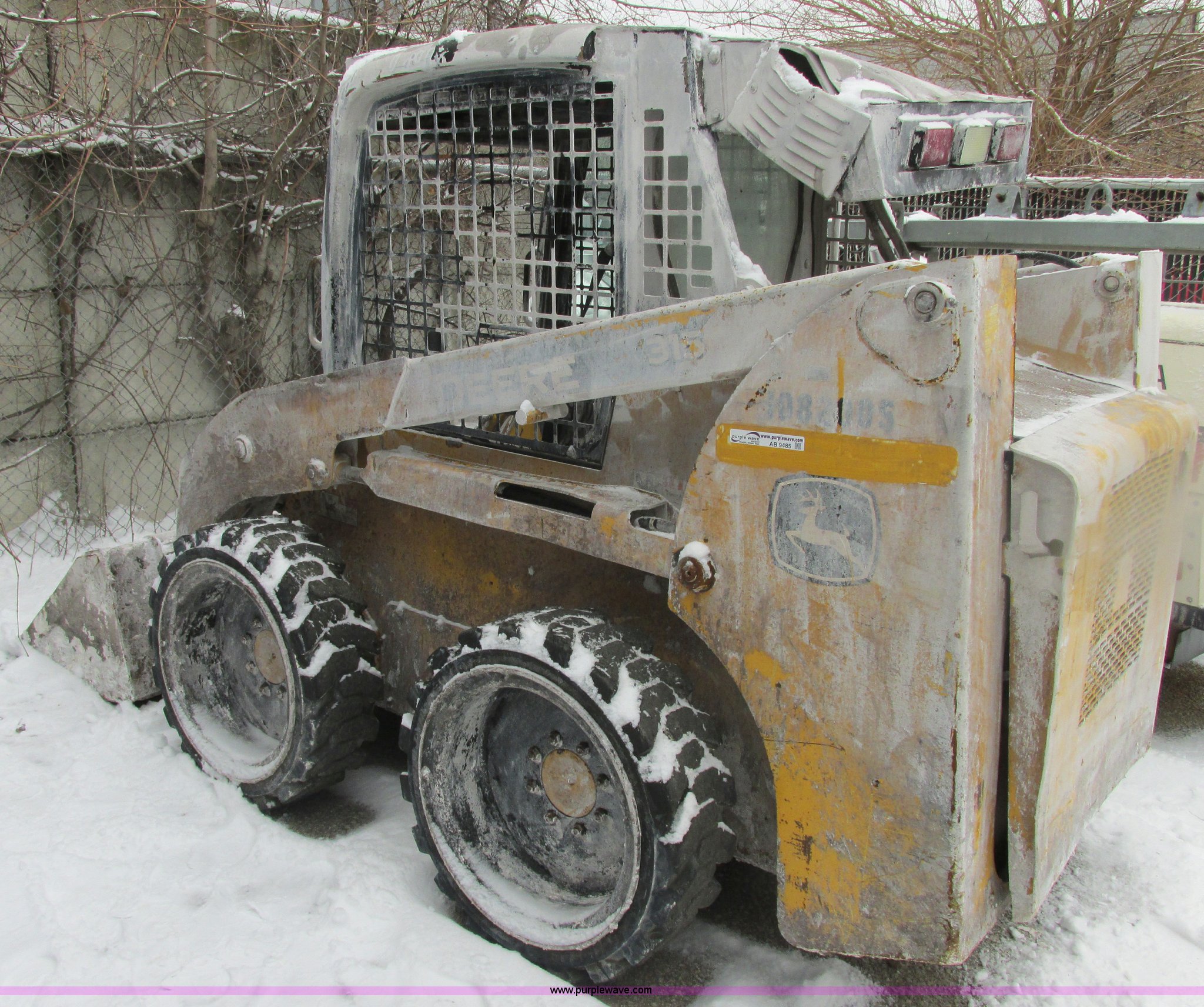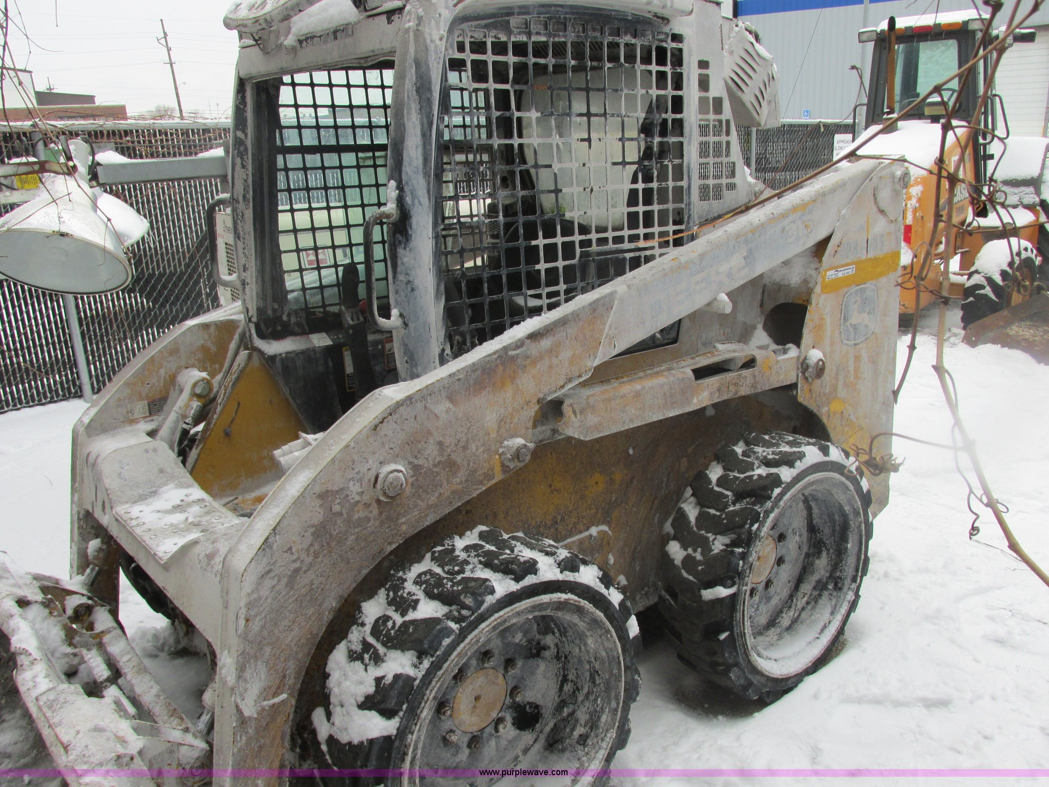Purple Wave is selling a used Skid Steer Loader in Indiana. This item is a 2008 John Deere 315 skid steer with the following: 980 hours on meter, Diesel engine, Heat, Unknown operating condition, 60" bucket with cutting edge, Quick attach system, Hydraulic remote, Right side and rear glass, Solid rubber tires, Serial T00315A165937, EIN 1082005