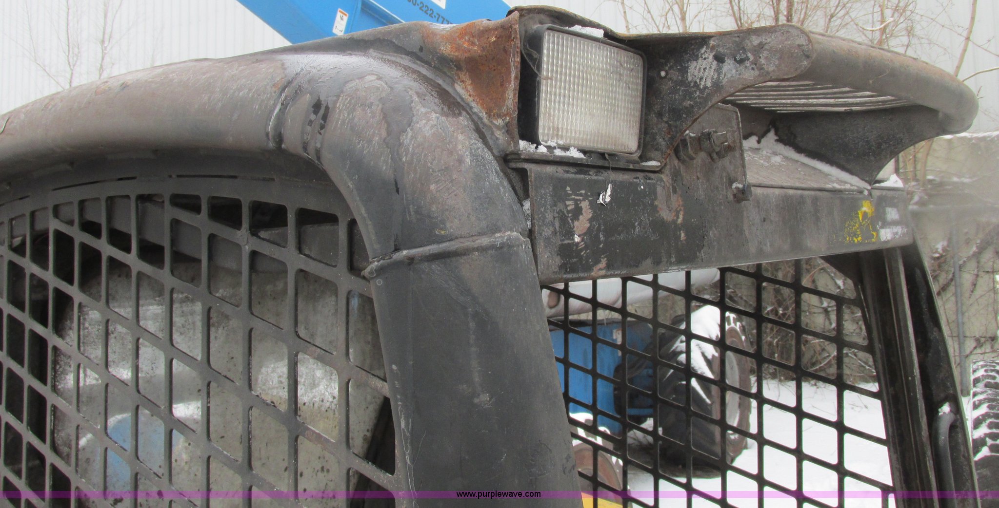 Purple Wave is selling a used Skid Steer Loader in Indiana. This item is a 2004 John Deere 317 skid steer with the following: 1142 hours on meter, John Deere 4024T 57hp diesel engine, 66" bucket with cutting edge, Quick attach system, Hi flow hydraulics, Hydraulic quick couplers, Backup alarm, Solid rubber cushion tires, Heat, Unknown operating condition, Rear glass, Large dents on roof, Broken rear tie down, Small leaks, Unit will not stay running, Needs wiring, Serial T00317E104630, EIN 675803