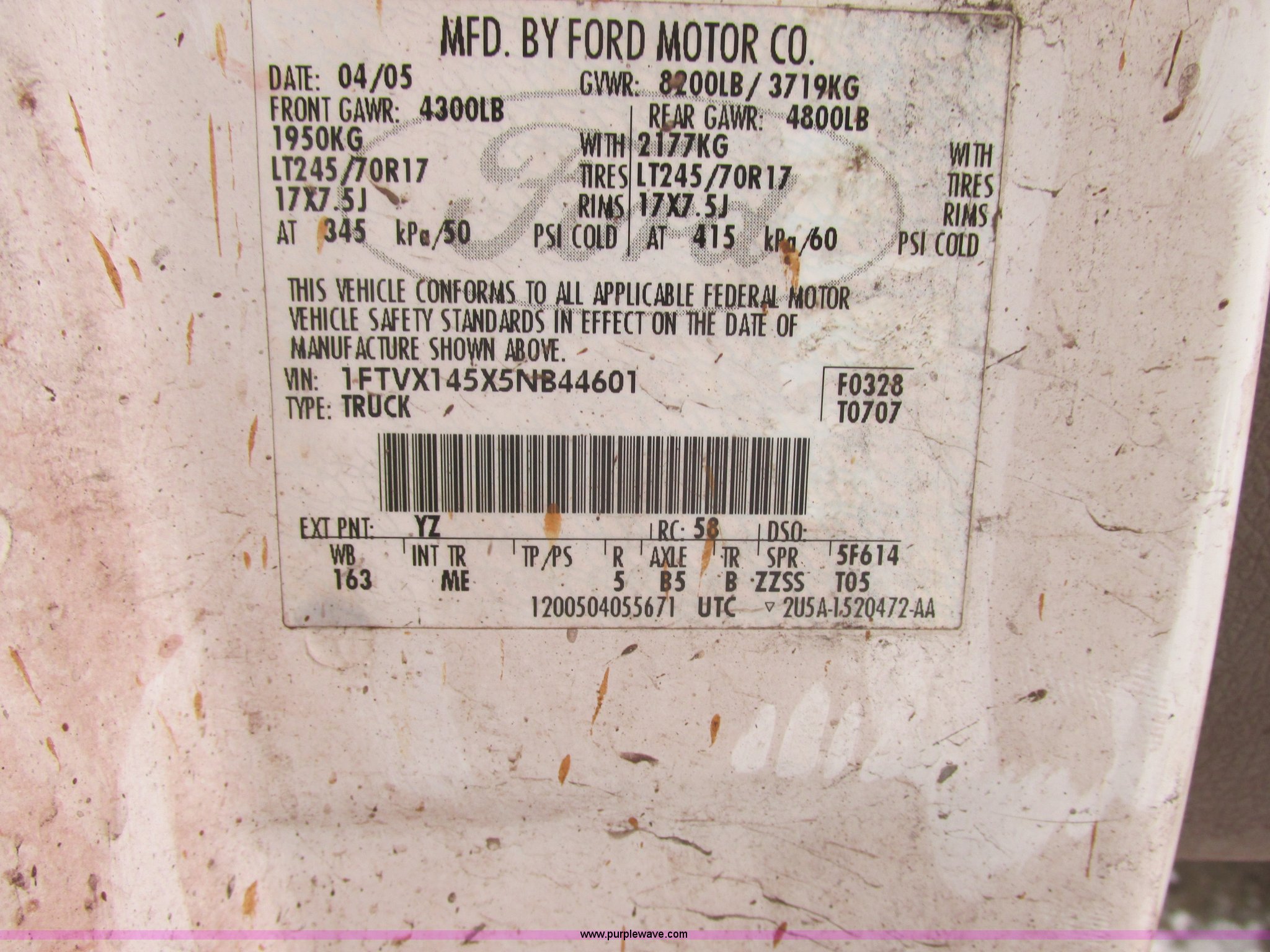 2005 Ford F150 XLT SuperCab pickup truck. 127,590 miles on odometer, 5.4L V6 SOHC 16V gas engine, Automatic transmission, Four wheel drive, AC and heat, Tilt, Cruise, AM/FM/CD, Power windows, locks, and mirrors, Cloth interior, Keyless entry, Backup sensors, Receiver hitch , Trailer wiring, Dead battery, Rear wire hanging, Seats torn, Headliner stained, Carpet torn, Dents, Grill paint peeling, Door panels stained, Driver's mirror enclosure broken, Sticker residue on door, Hubcap missing, EIN 1052952. 1FTVX145X5NB44601. Shipping quotes available. United Rentals - East Chicago. 300 W Chicago Avenue. East Chicago, IN 46312