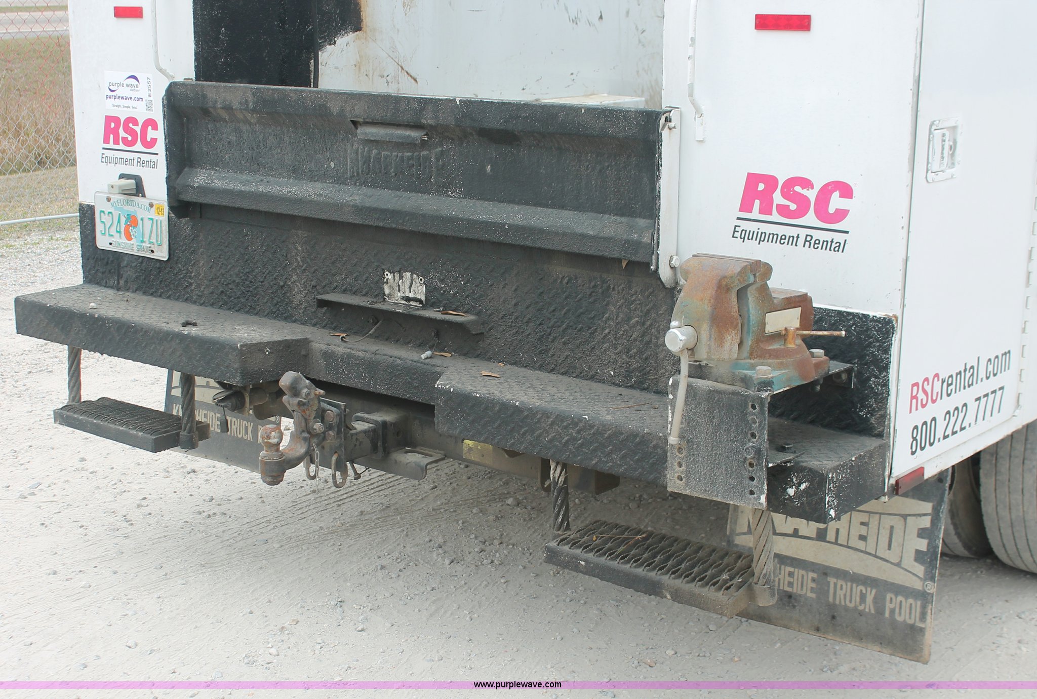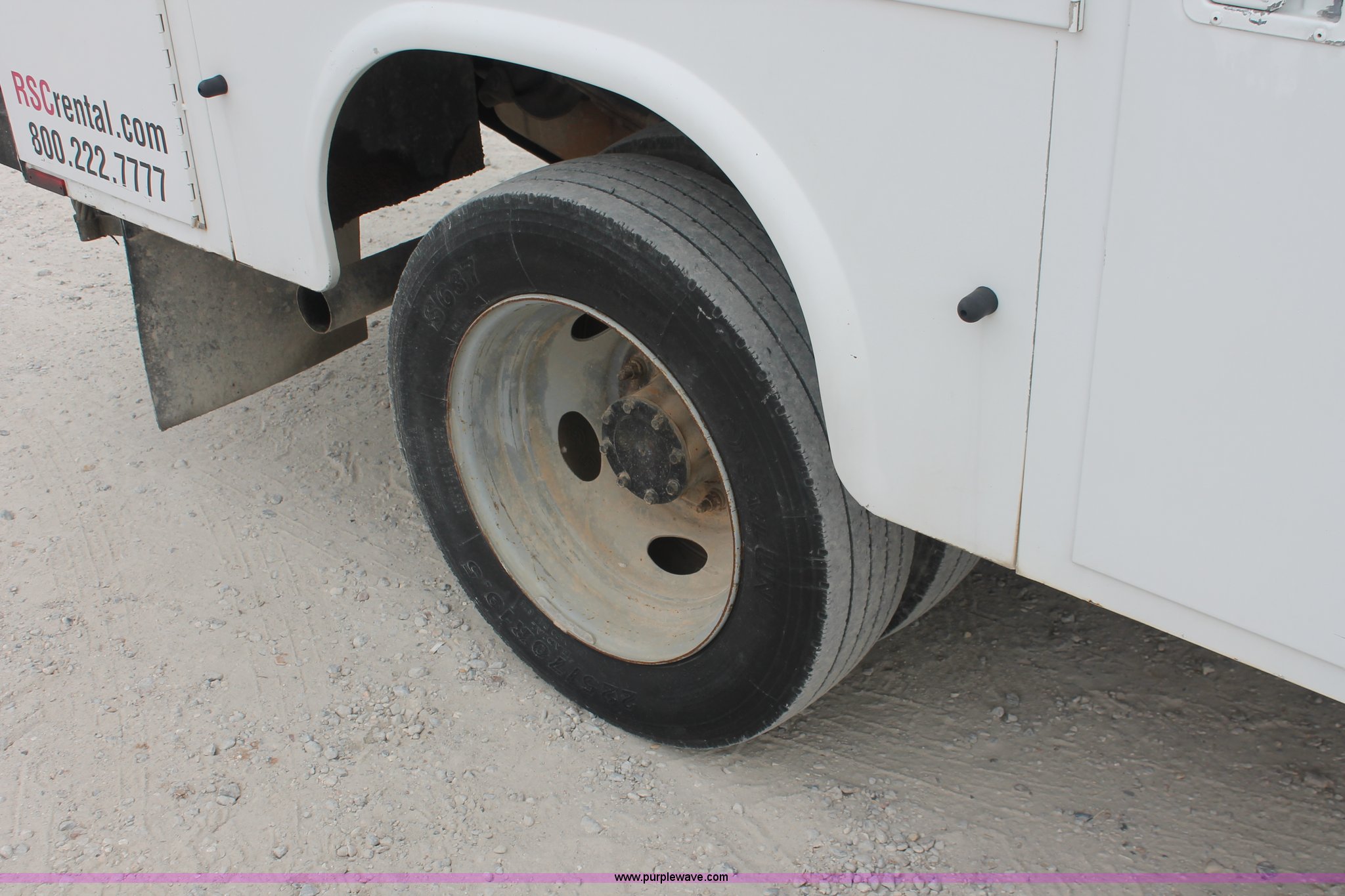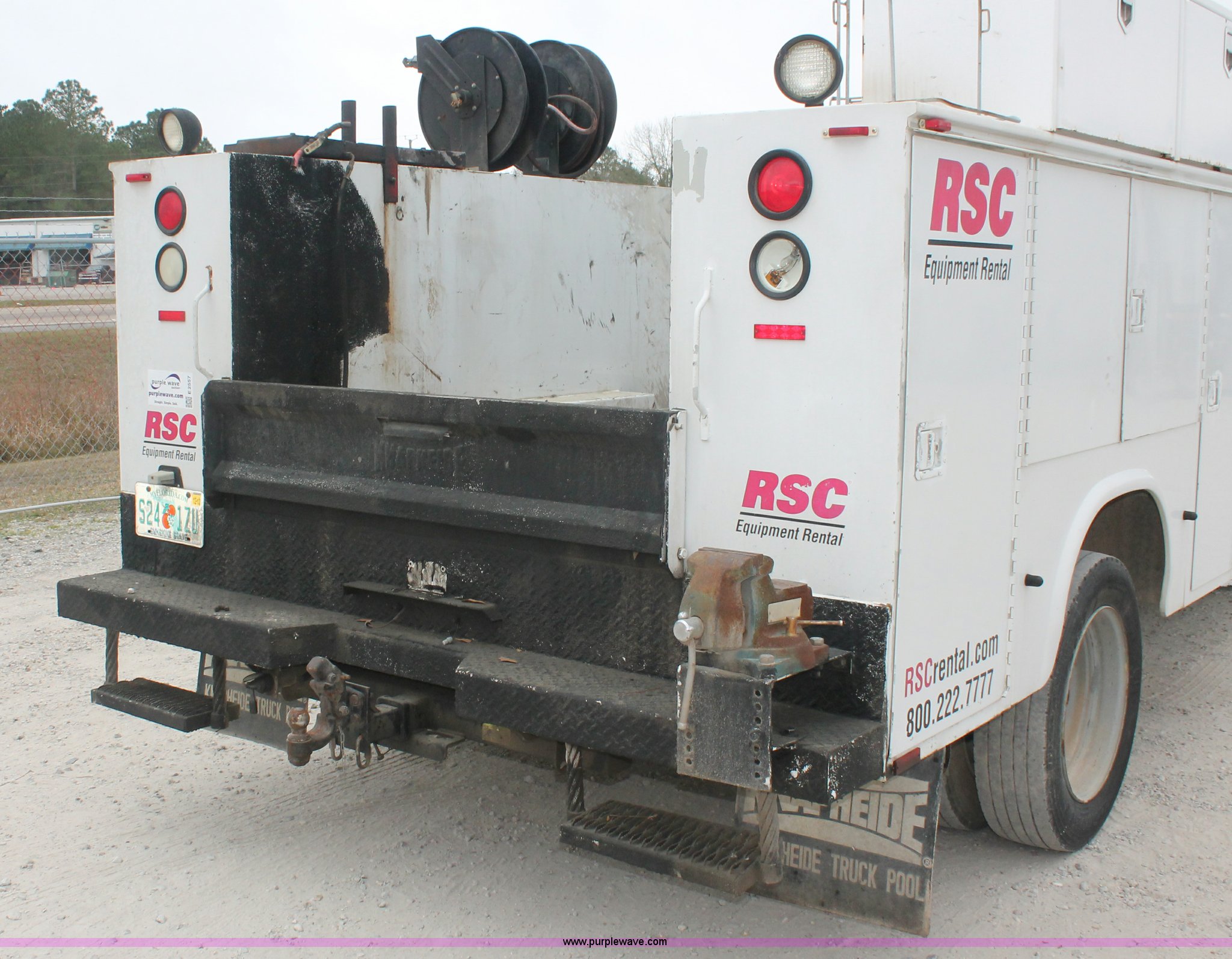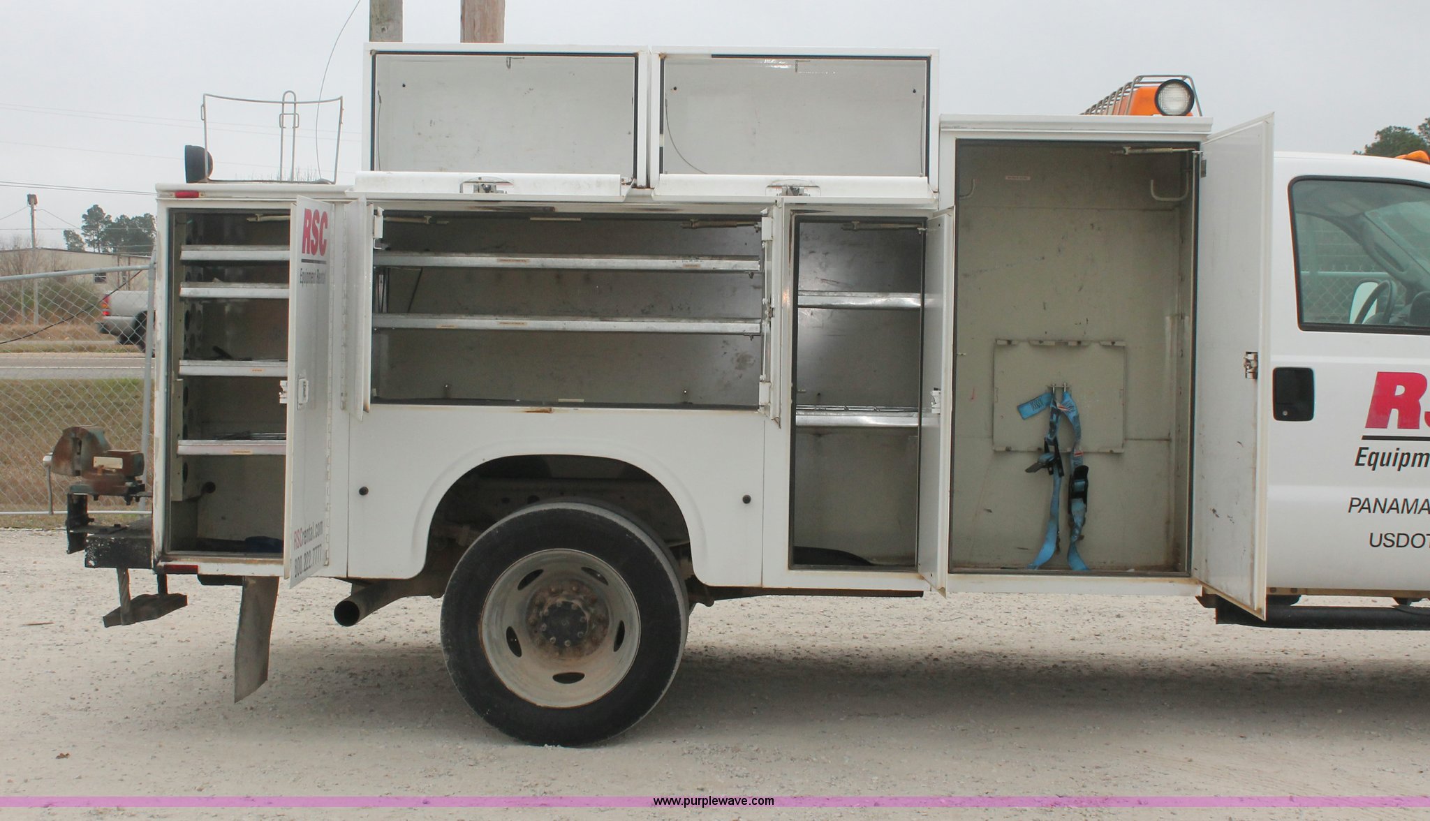Purple Wave is selling a used Service Truck in Mississippi. This item is a 2006 Ford F550 XL Super Duty utility truck with the following: 193,364 miles on odometer, 6.0L V8 OHV 32V turbo diesel engine, Automatic transmission, Four wheel drive, AC and heat, AM/FM/CD, Manual windows and locks, Cloth interior, Trailer brake contorller, Auxiliary control panel, Light bar control panel, Knapheide 11' utility bed, (10) compartments, Tool drawers, Wilton 5" vice, Lube and air hose reels, Grease reservoir, Amber light bar, Work lights, Nerf bars, Tow hooks, Receiver hitch, 2" ball, Trailer wiring, 225/70R19.5 tires, EIN 594292RA