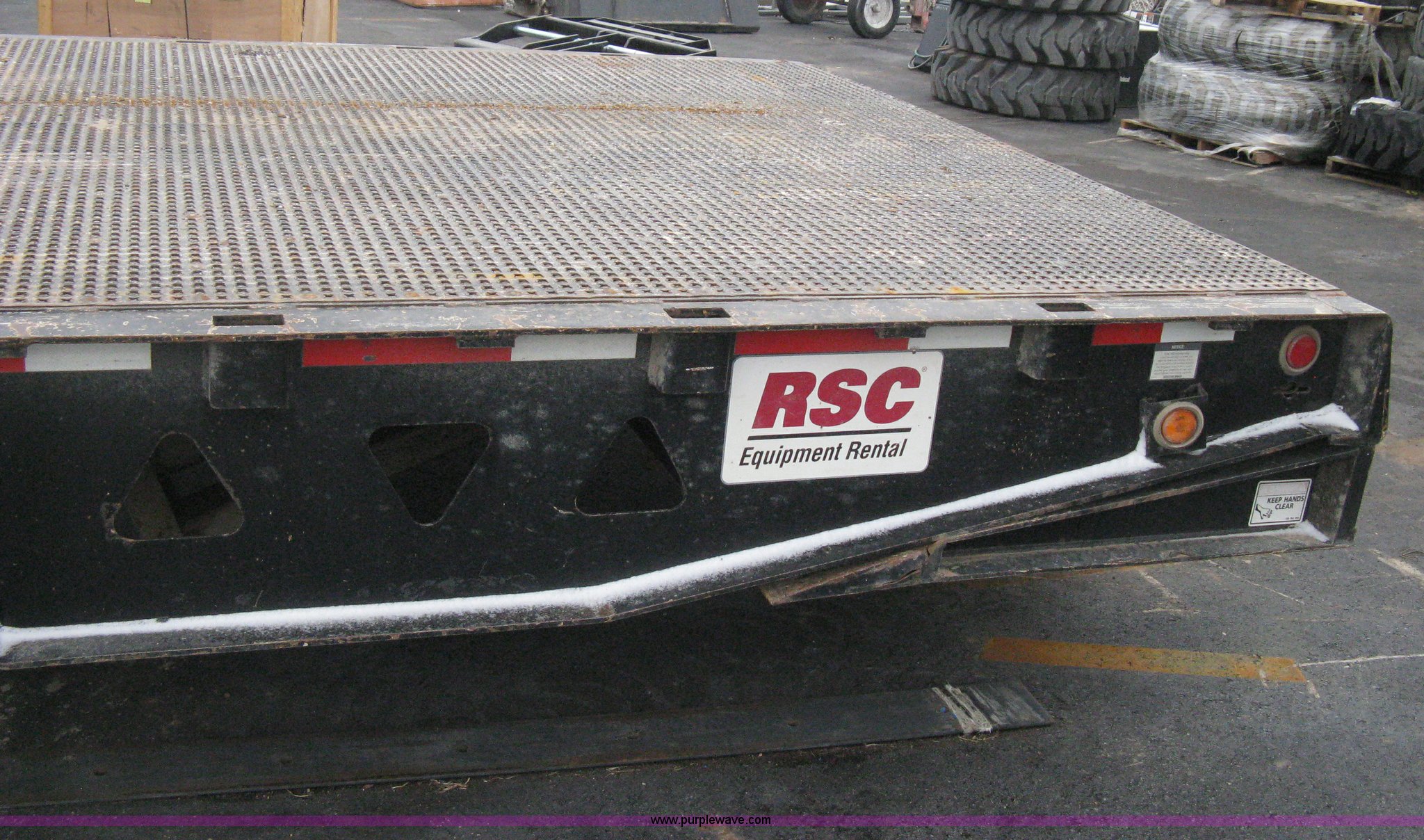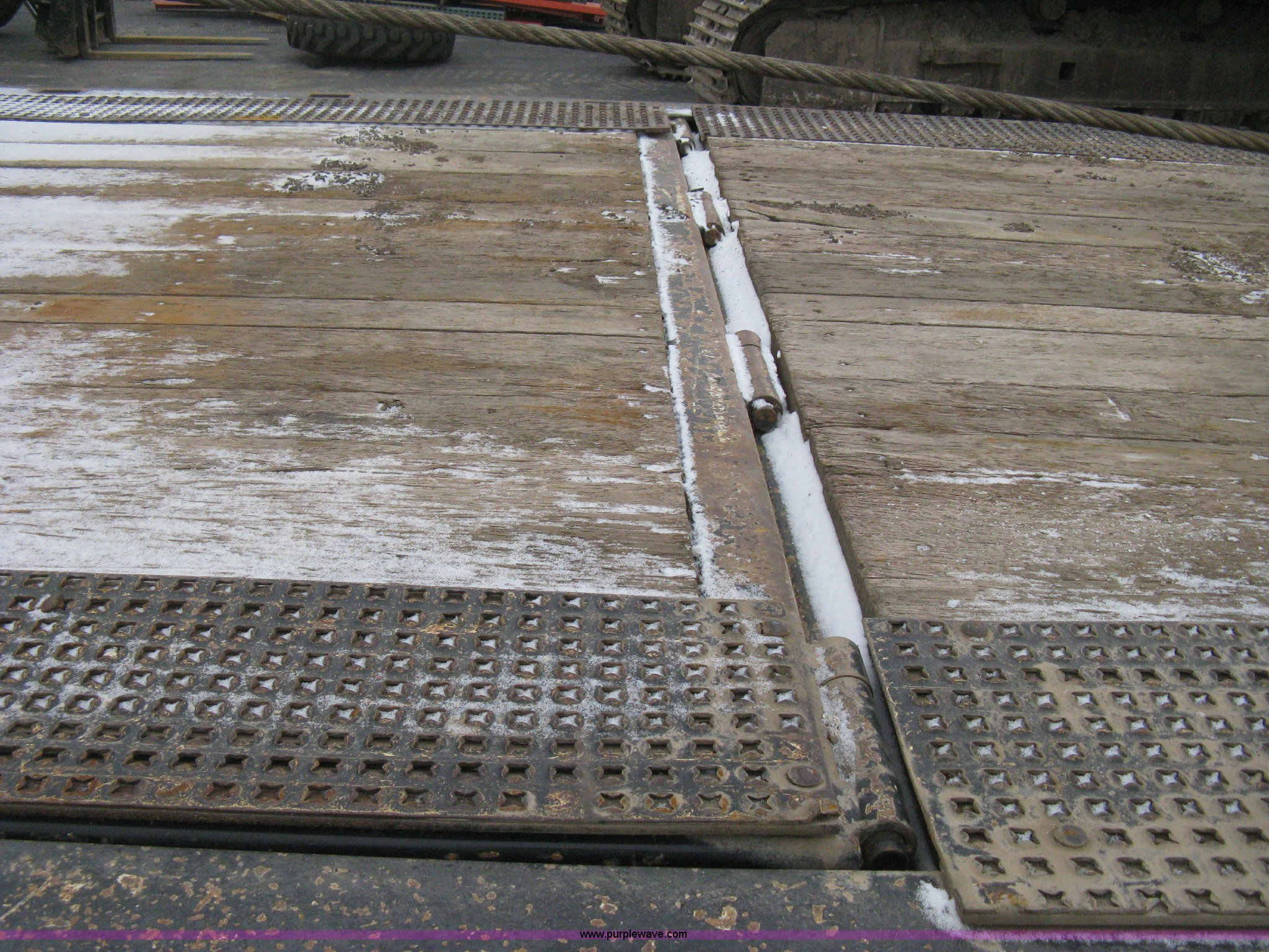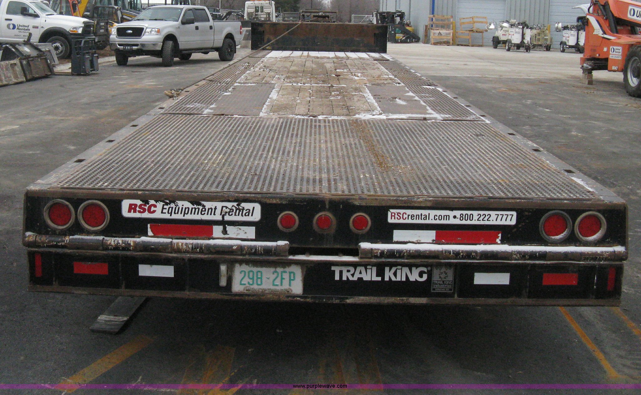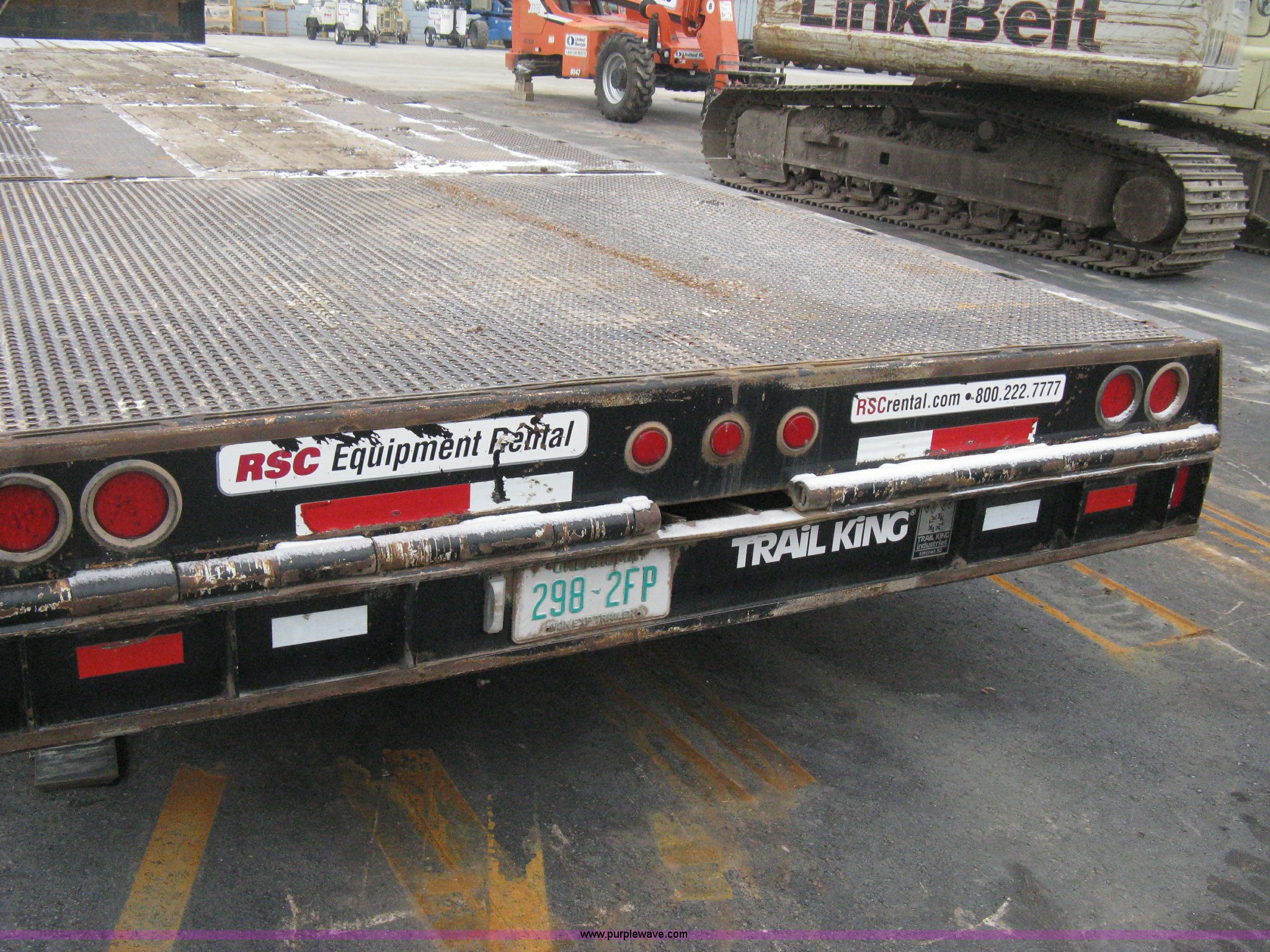 Purple Wave is selling a used Equip. Trailer in Kansas. This item is a 2007 Trail King TK70HT Advantage Series hydraulic dovetail equipment trailer with the following: Low profile/step deck, 39'L x 102"W, 9'L step deck, 46"L hydraulic fold-out dovetail, 8'L twin cylinder deck ramp to step deck, 36"H, Braden electric winch/cable/hook, Right Way load scale, Dual side mount winch and hydraulic ramp control levers, Wood/steel floor, Skid proof overlay plate, Stake side pockets, (2) recessed chain boxes on step deck, Two post landing gear, Air ride, Tandem axle, 50,000 lb load rating, 10R17.5 tires, GVWR 86,700 lbs, GAWR 21,420 lbs, EIN 662349RA