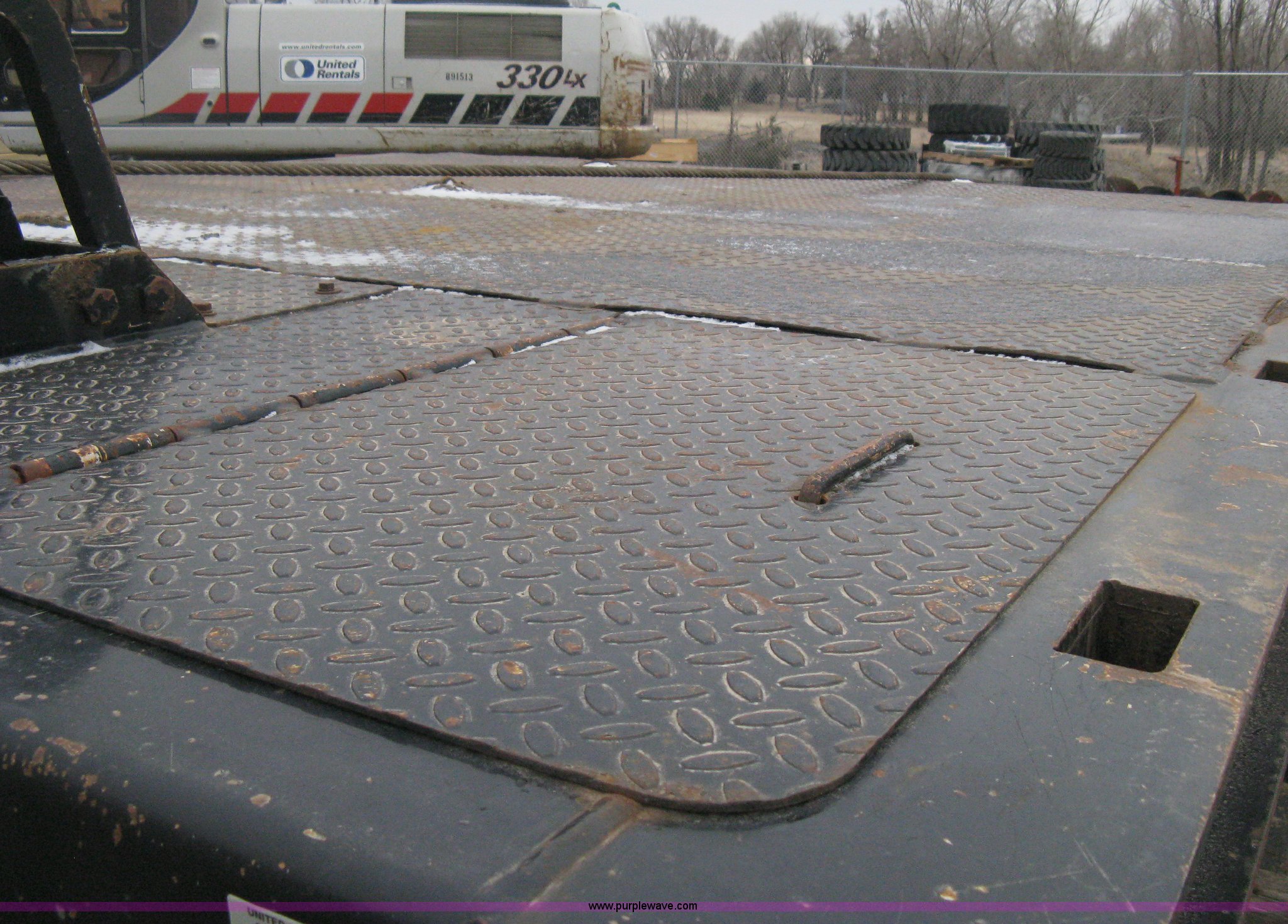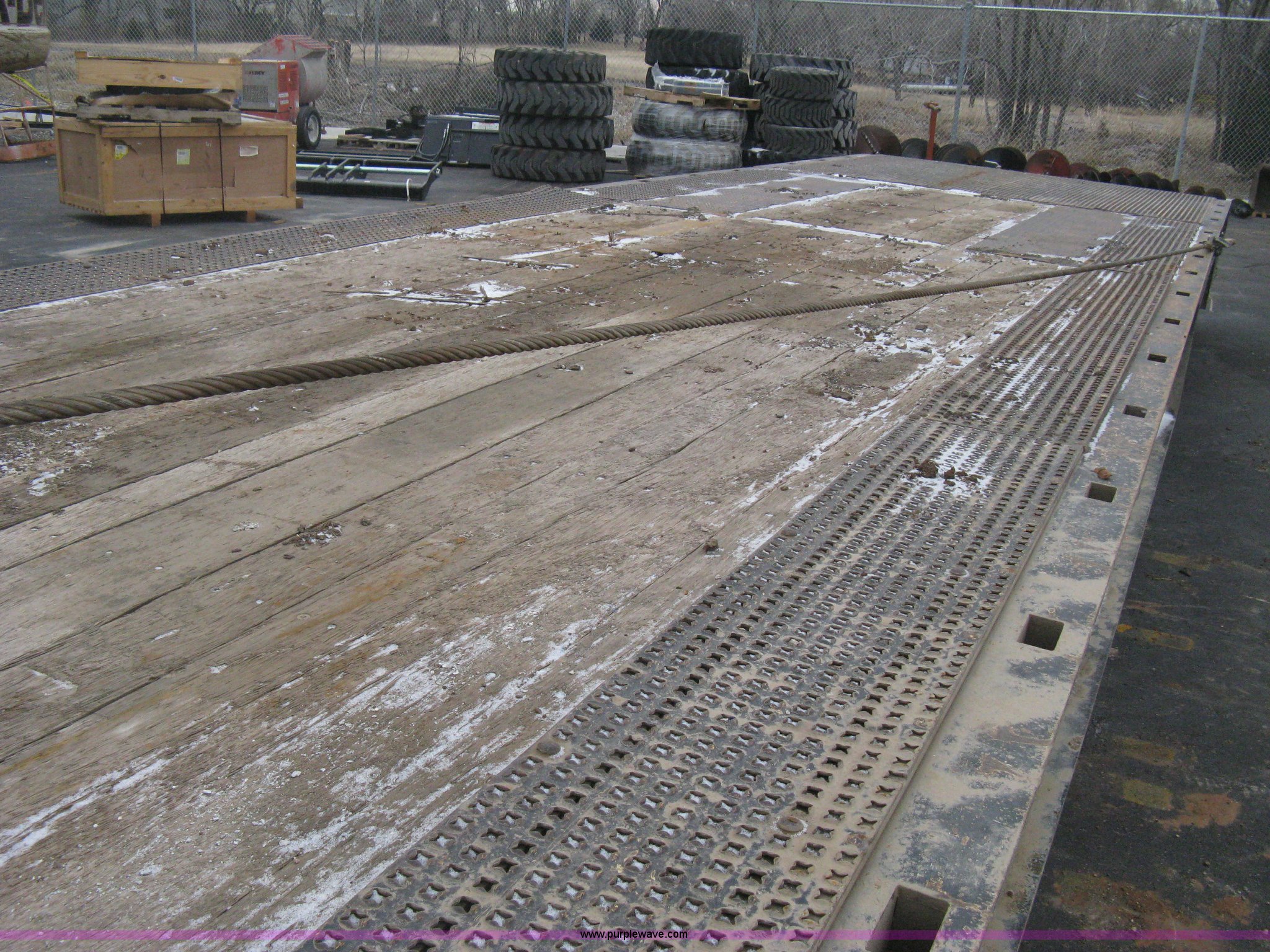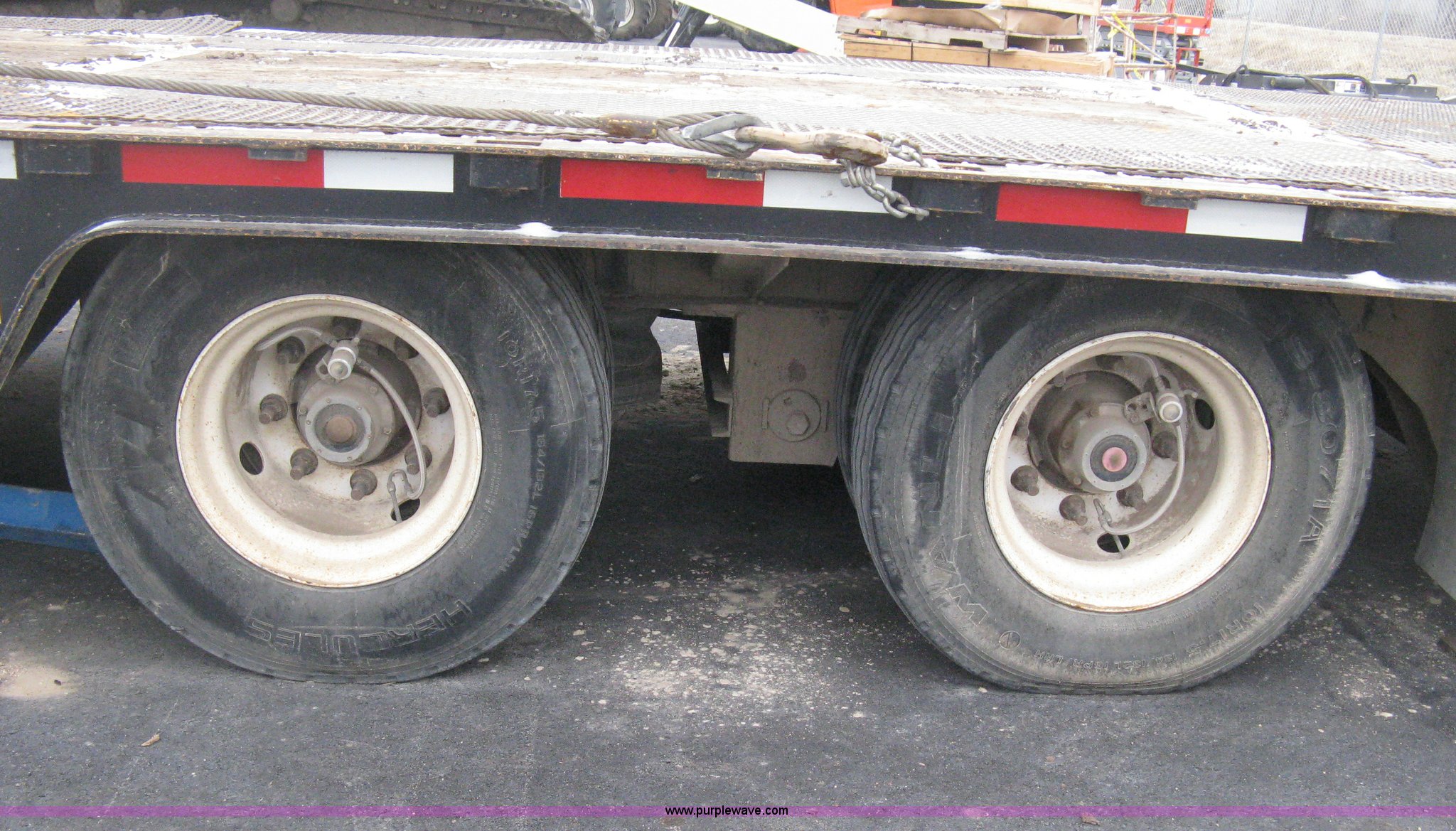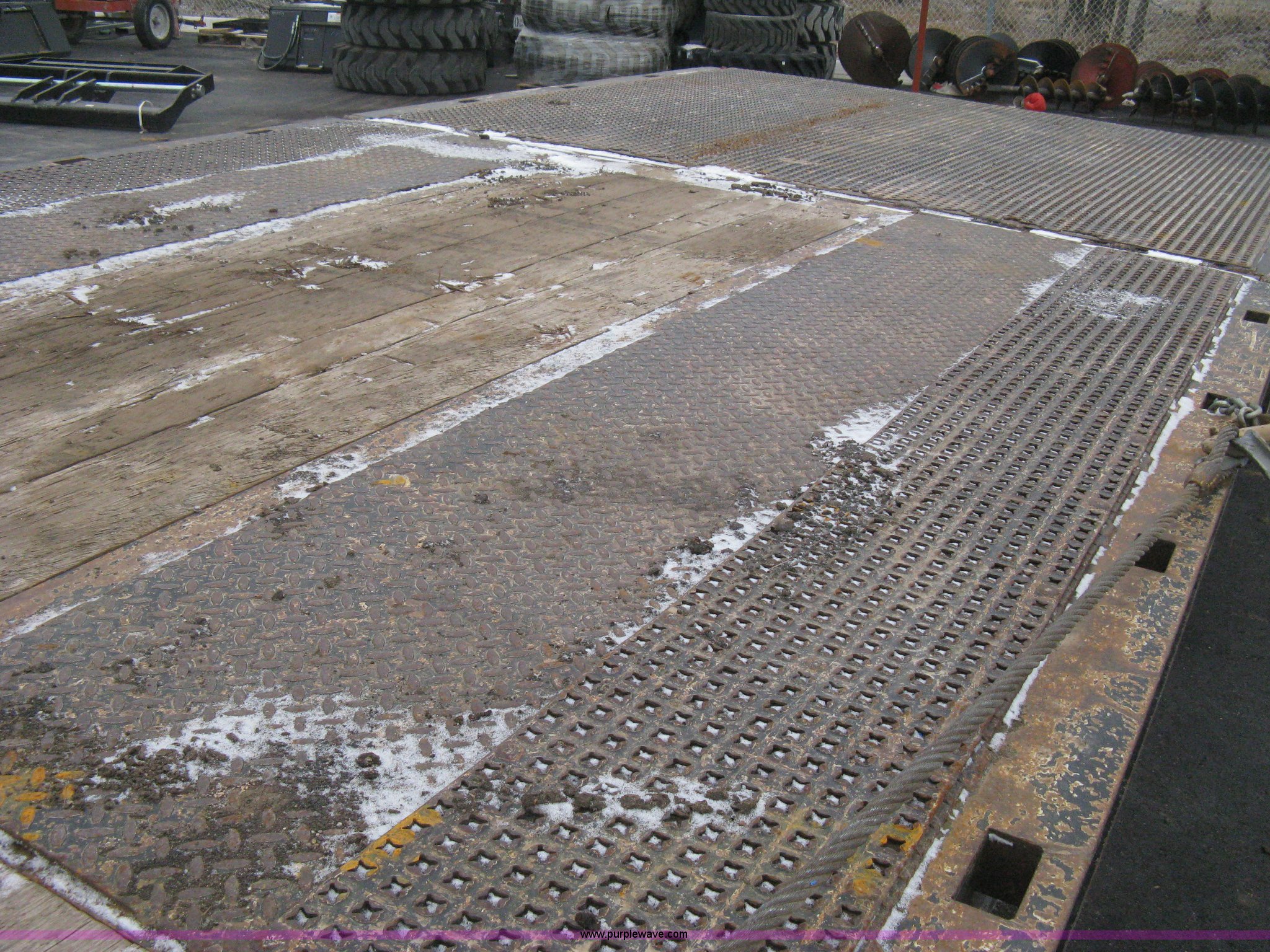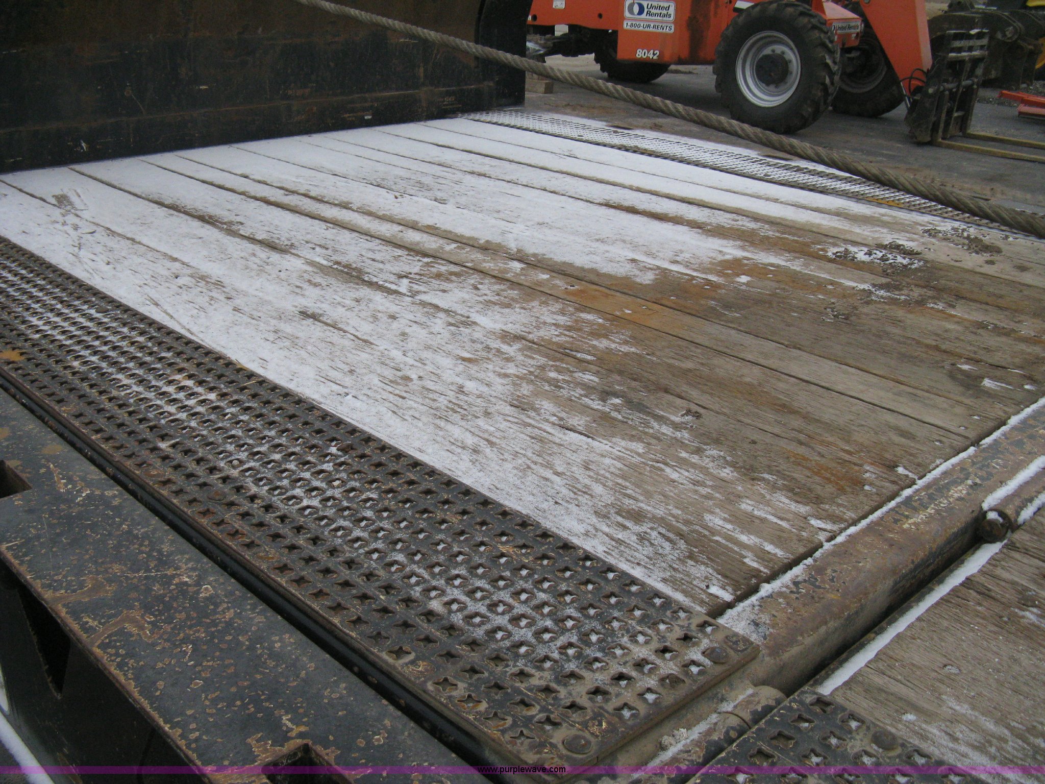 Purple Wave is selling a used Equip. Trailer in Kansas. This item is a 2007 Trail King TK70HT Advantage Series hydraulic dovetail equipment trailer with the following: Low profile/step deck, 39'L x 102"W, 9'L step deck, 46"L hydraulic fold-out dovetail, 8'L twin cylinder deck ramp to step deck, 36"H, Braden electric winch/cable/hook, Right Way load scale, Dual side mount winch and hydraulic ramp control levers, Wood/steel floor, Skid proof overlay plate, Stake side pockets, (2) recessed chain boxes on step deck, Two post landing gear, Air ride, Tandem axle, 50,000 lb load rating, 10R17.5 tires, GVWR 86,700 lbs, GAWR 21,420 lbs, EIN 662349RA