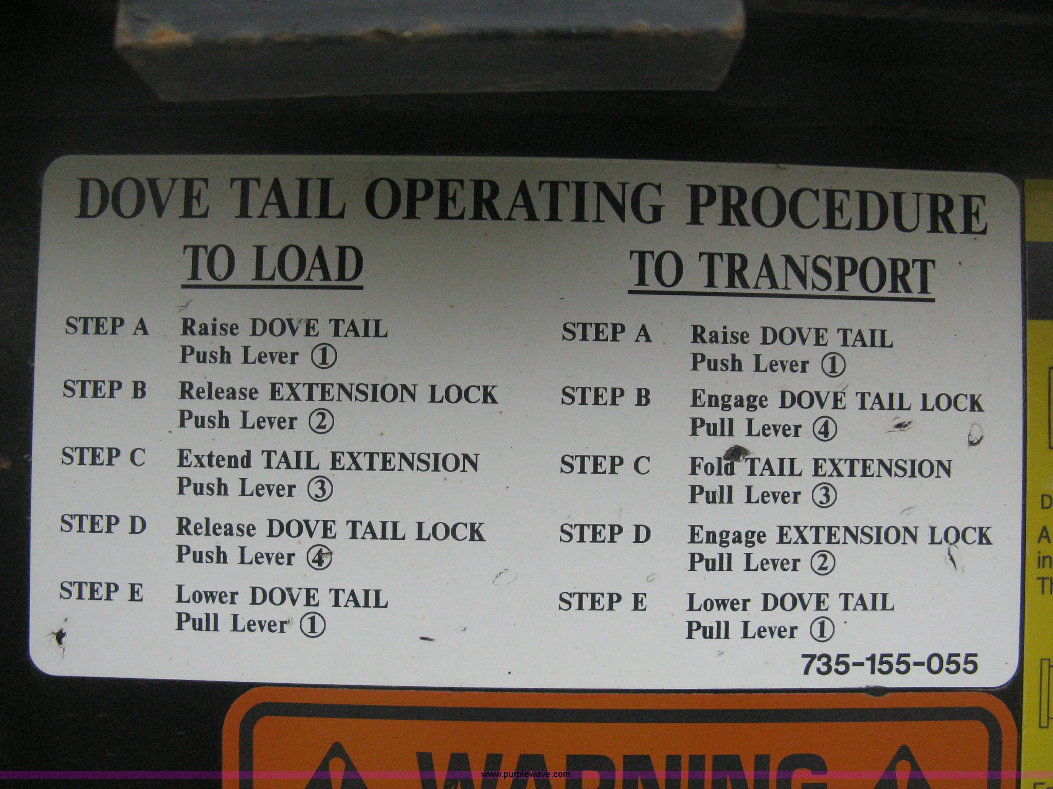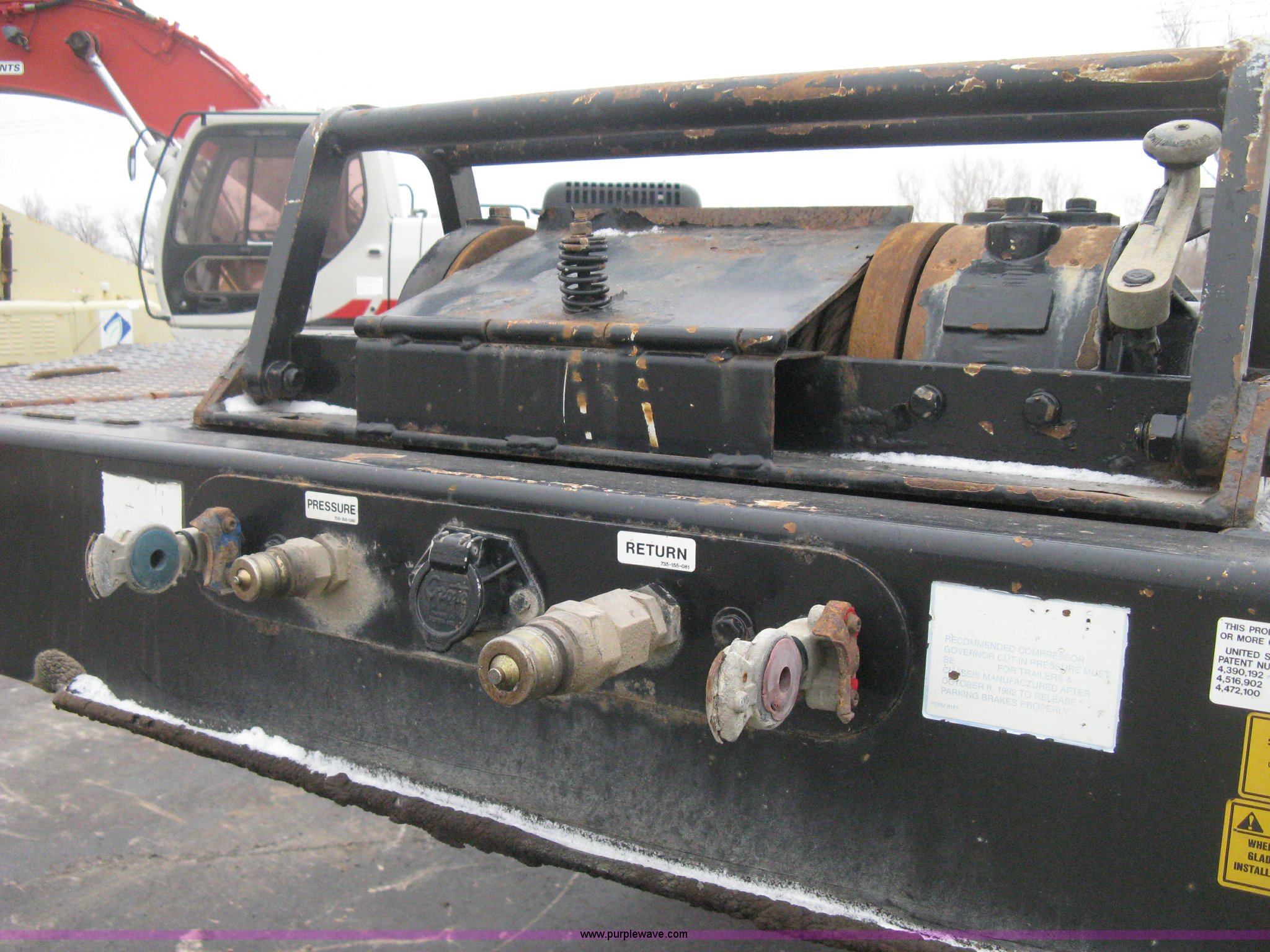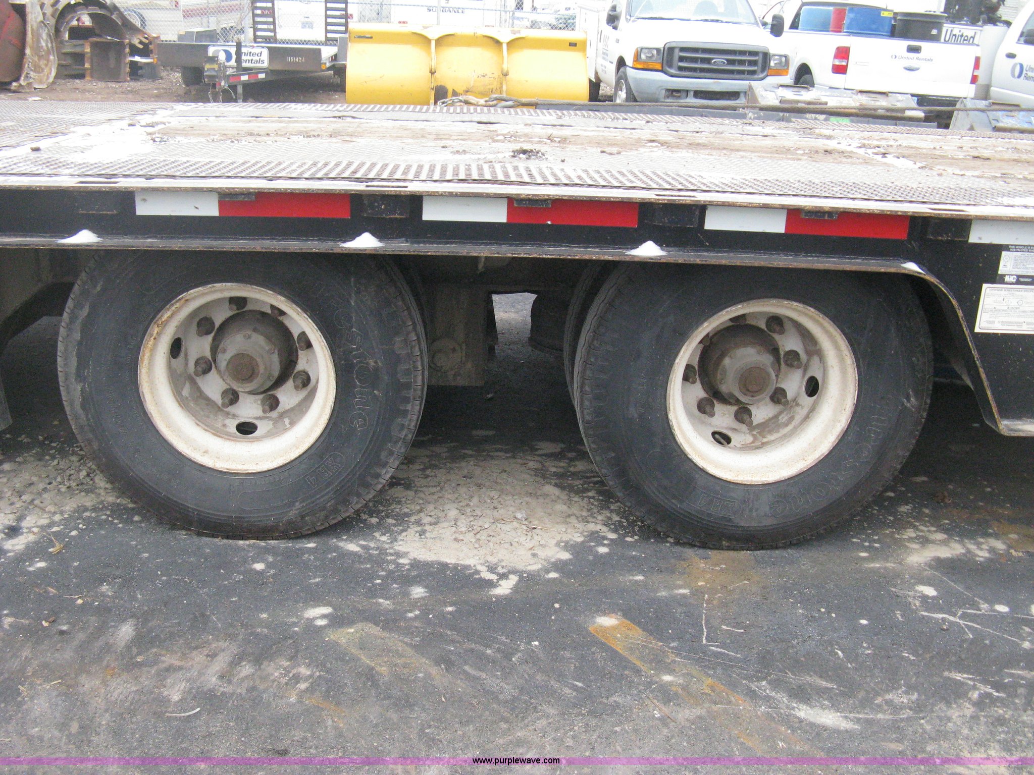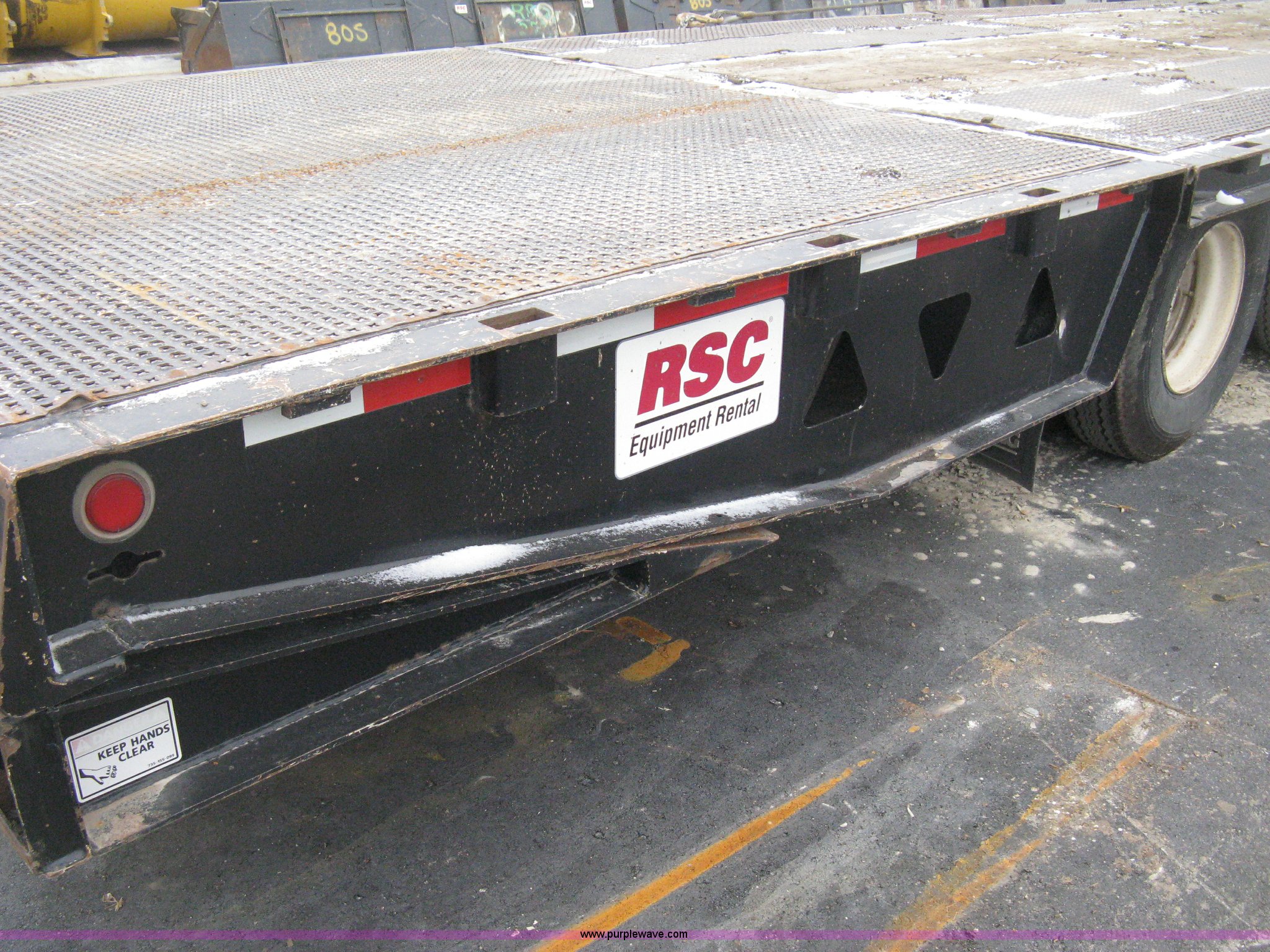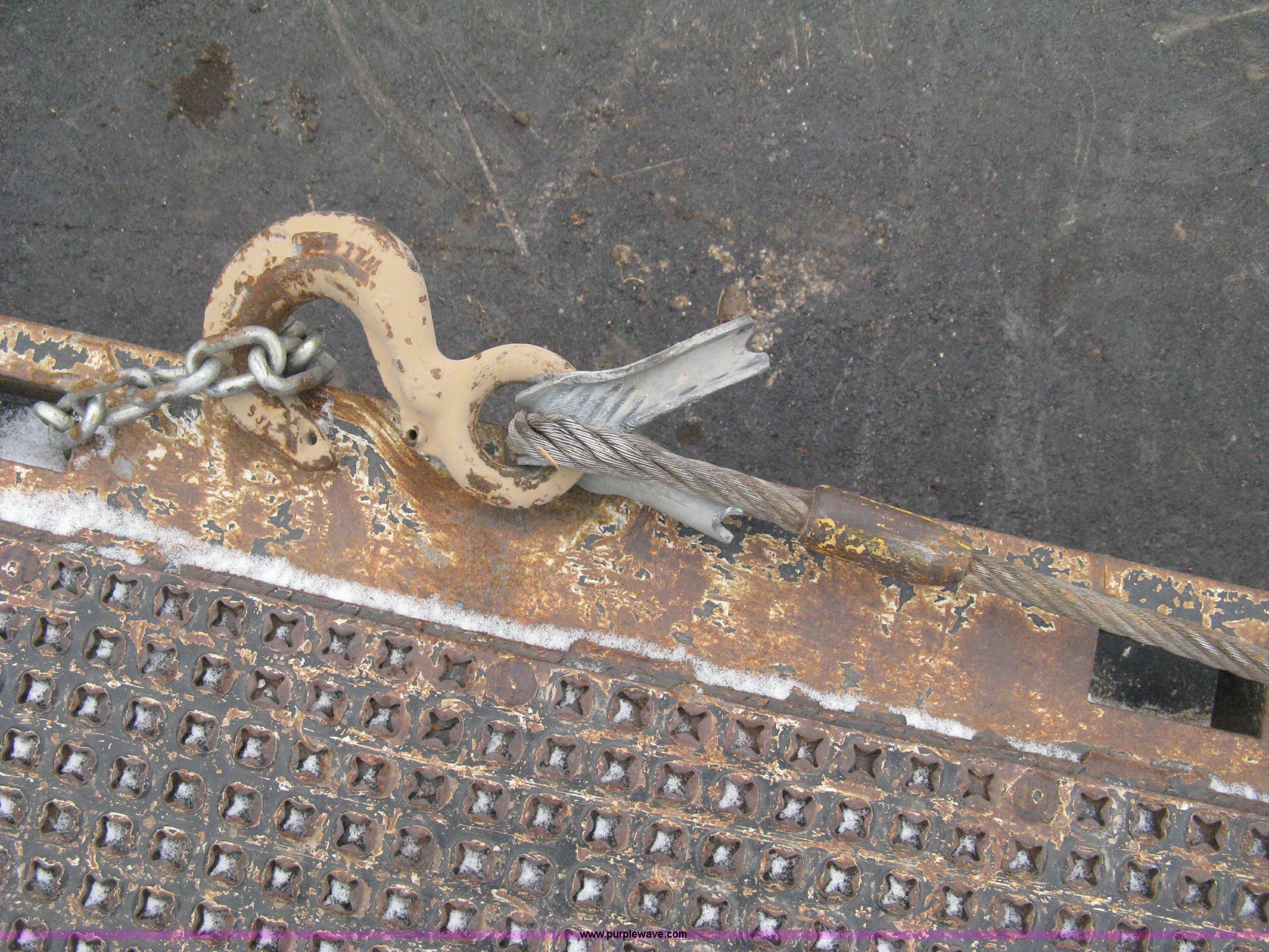 Purple Wave is selling a used Equip. Trailer in Kansas. This item is a 2007 Trail King TK70HT Advantage Series hydraulic dovetail equipment trailer with the following: Low profile/step deck, 39'L x 102"W, 9'L step deck, 46"L hydraulic fold-out dovetail, 8'L twin cylinder deck ramp to step deck, 36"H, Braden electric winch/cable/hook, Right Way load scale, Dual side mount winch and hydraulic ramp control levers, Wood/steel floor, Skid proof overlay plate, Stake side pockets, (2) recessed chain boxes on step deck, Two post landing gear, Air ride, Tandem axle, 50,000 lb load rating, 10R17.5 tires, GVWR 86,700 lbs, GAWR 21,420 lbs, EIN 662349RA