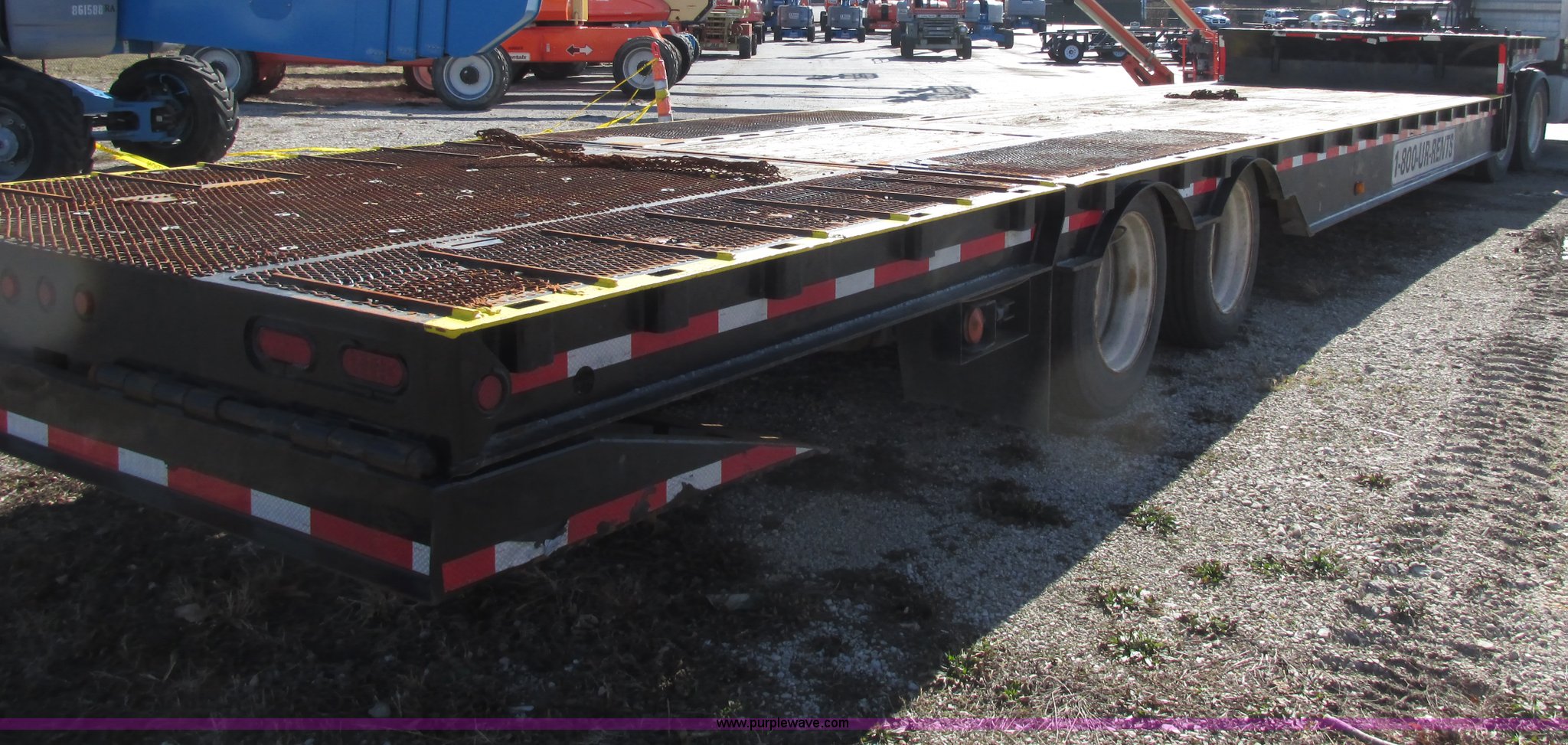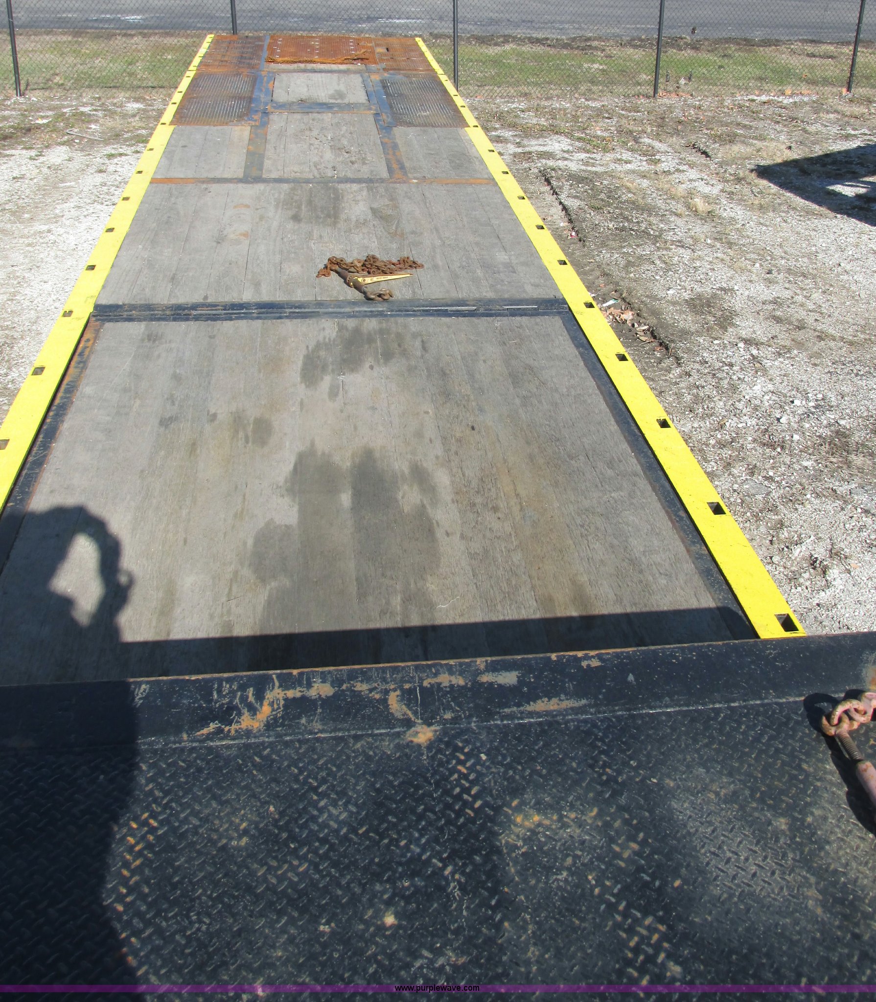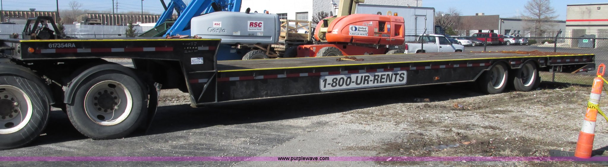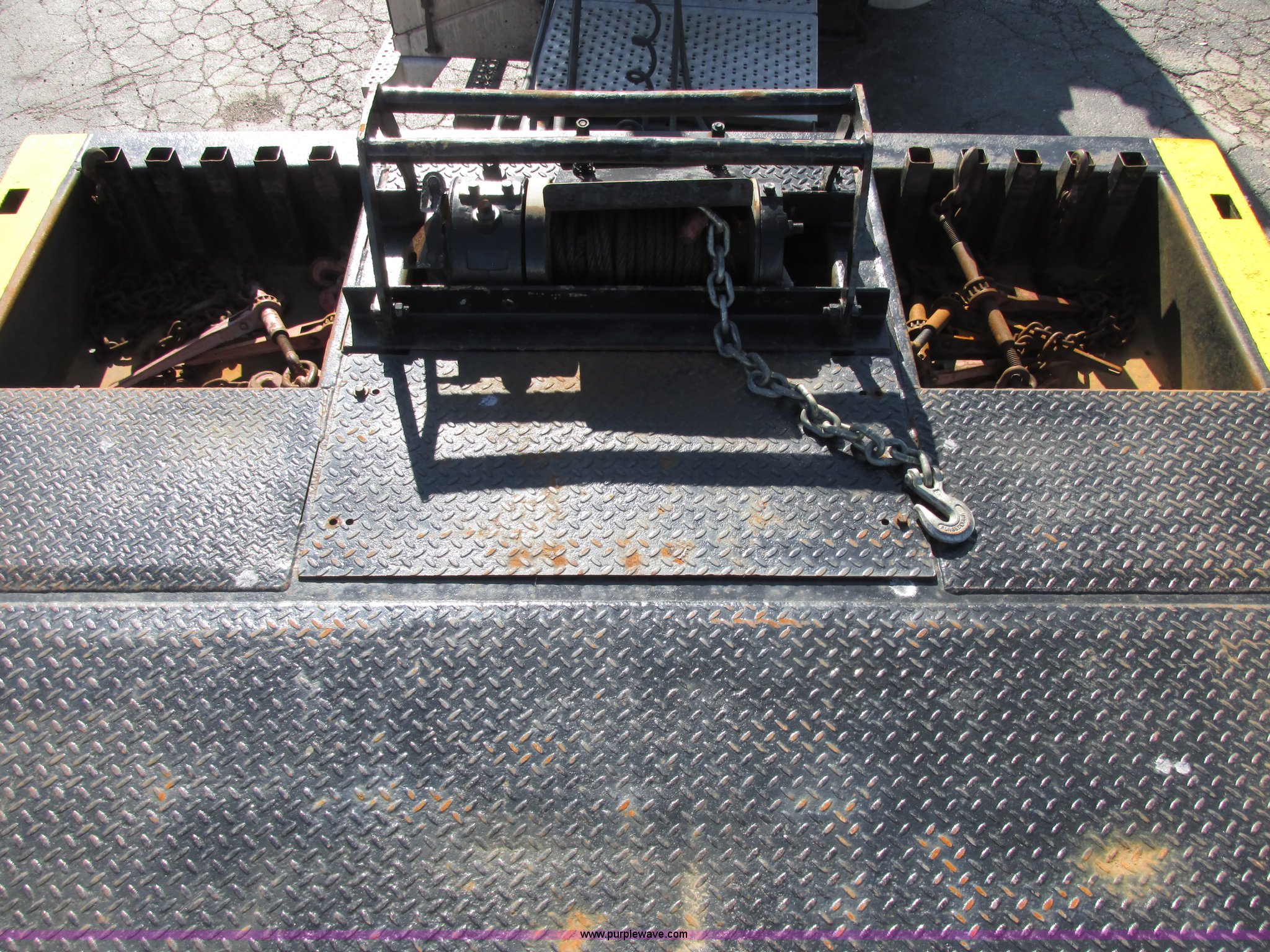 Purple Wave is selling a used Equip. Trailer in Missouri. This item is a 2006 Ledwell LW48HT2 hydraulic tail trailer with the following: 83"L x 102"W upper deck, 48'L x 102"W lower main deck, Including ramp, Braden winch, Chain storage, Stake pockets, Hydraulic fold-out tail, Hydraulic front deck/ramp to neck, 255/70R22.5 tires, Chains and binder not included, Hydraulic leak, Torn mudflap, Surface rust, Has been repainted over rust, EIN 617354RA