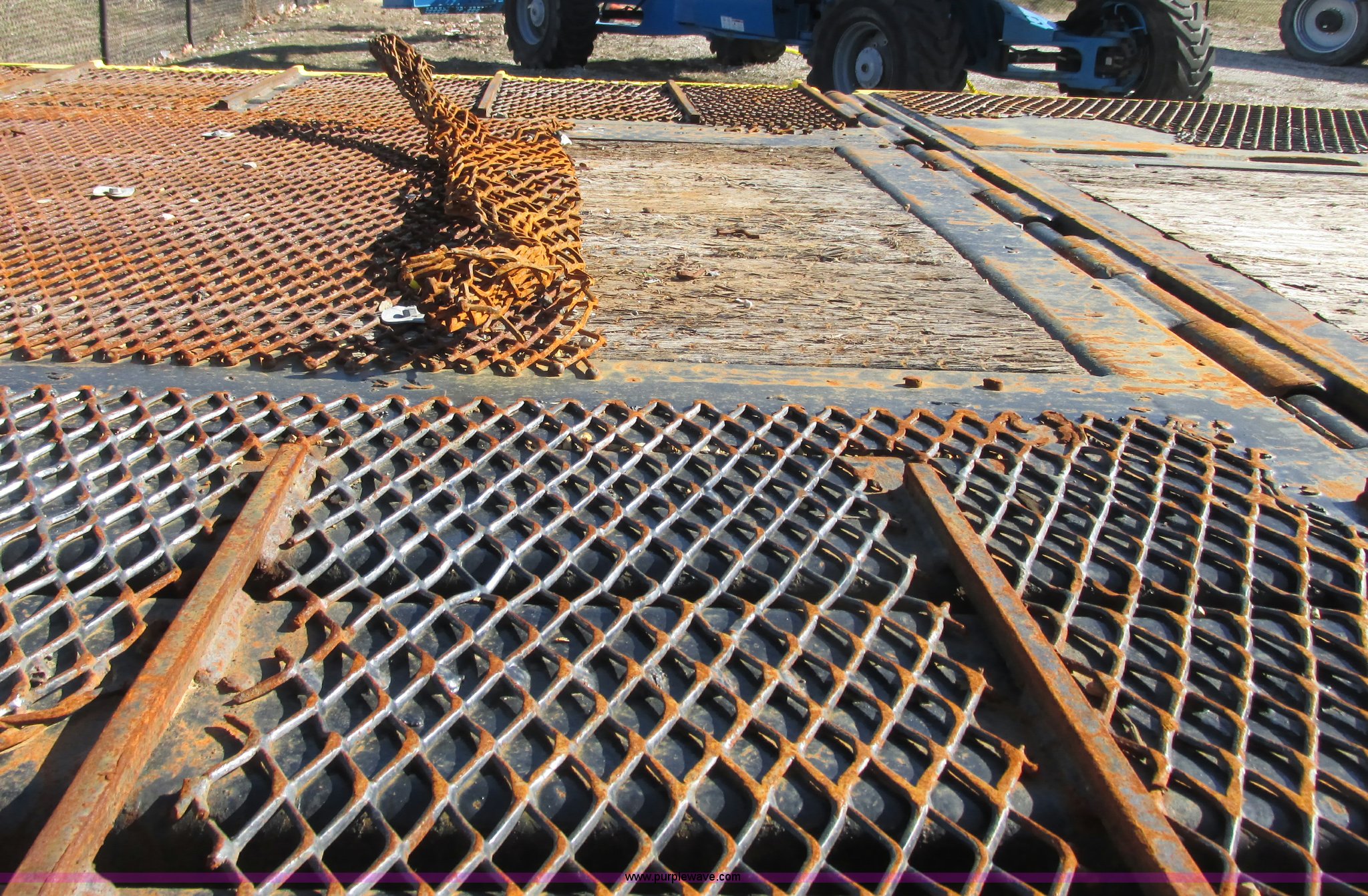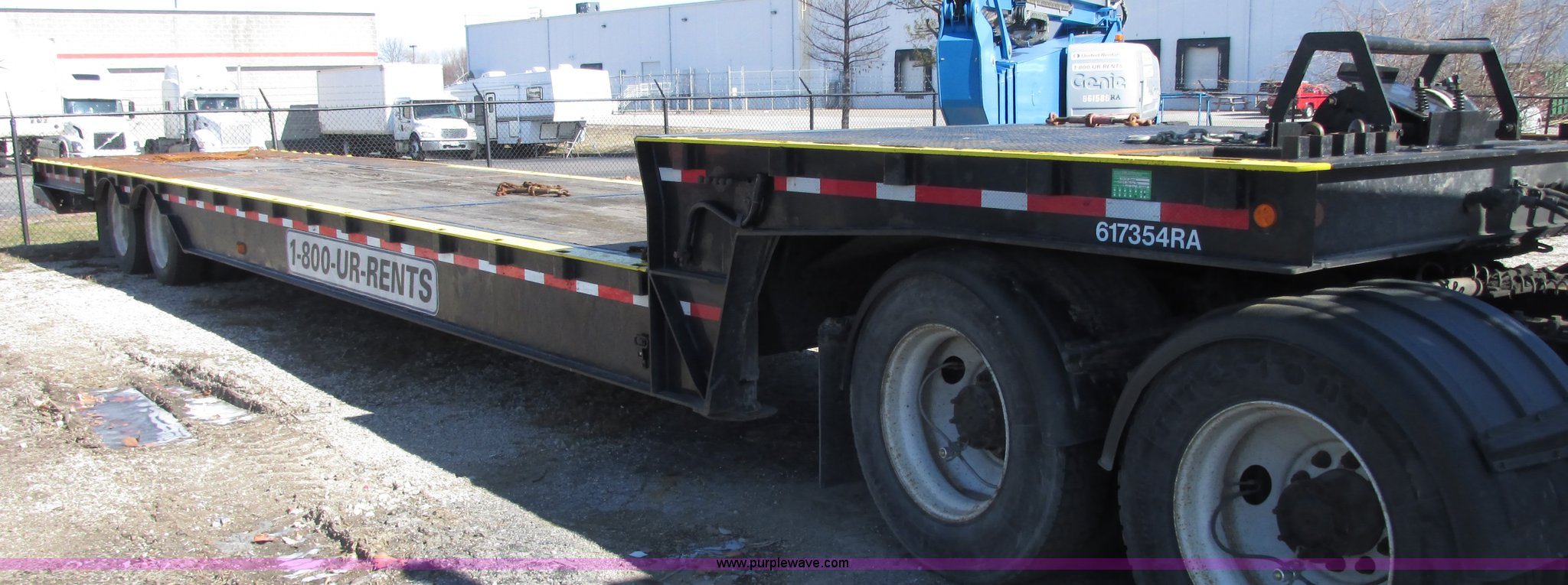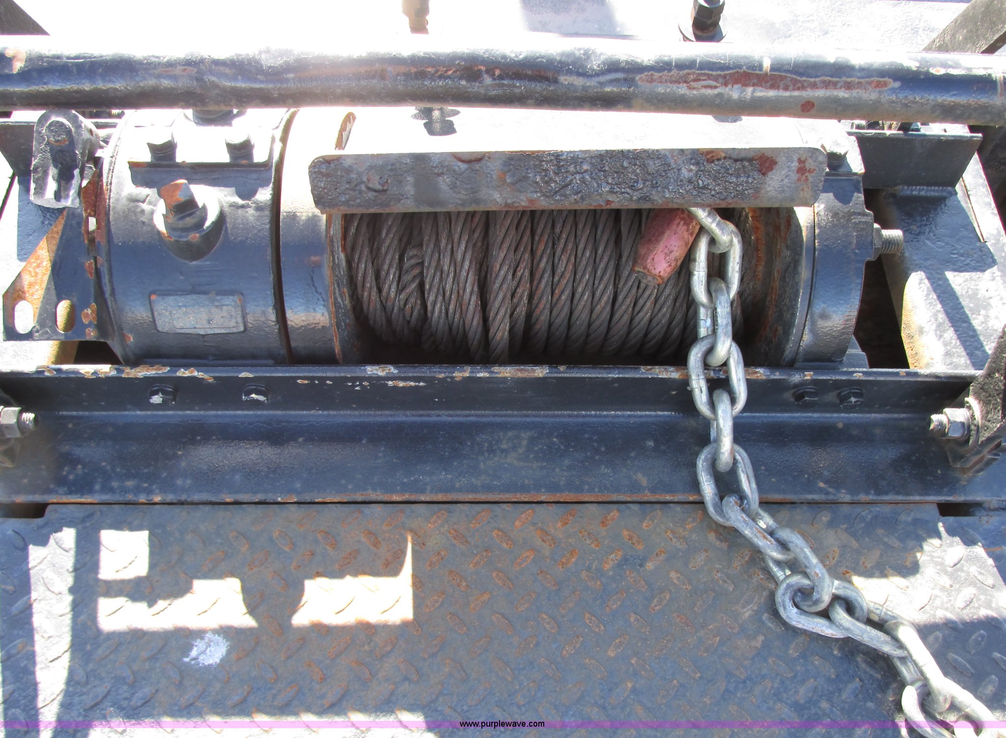 Purple Wave is selling a used Equip. Trailer in Missouri. This item is a 2006 Ledwell LW48HT2 hydraulic tail trailer with the following: 83"L x 102"W upper deck, 48'L x 102"W lower main deck, Including ramp, Braden winch, Chain storage, Stake pockets, Hydraulic fold-out tail, Hydraulic front deck/ramp to neck, 255/70R22.5 tires, Chains and binder not included, Hydraulic leak, Torn mudflap, Surface rust, Has been repainted over rust, EIN 617354RA