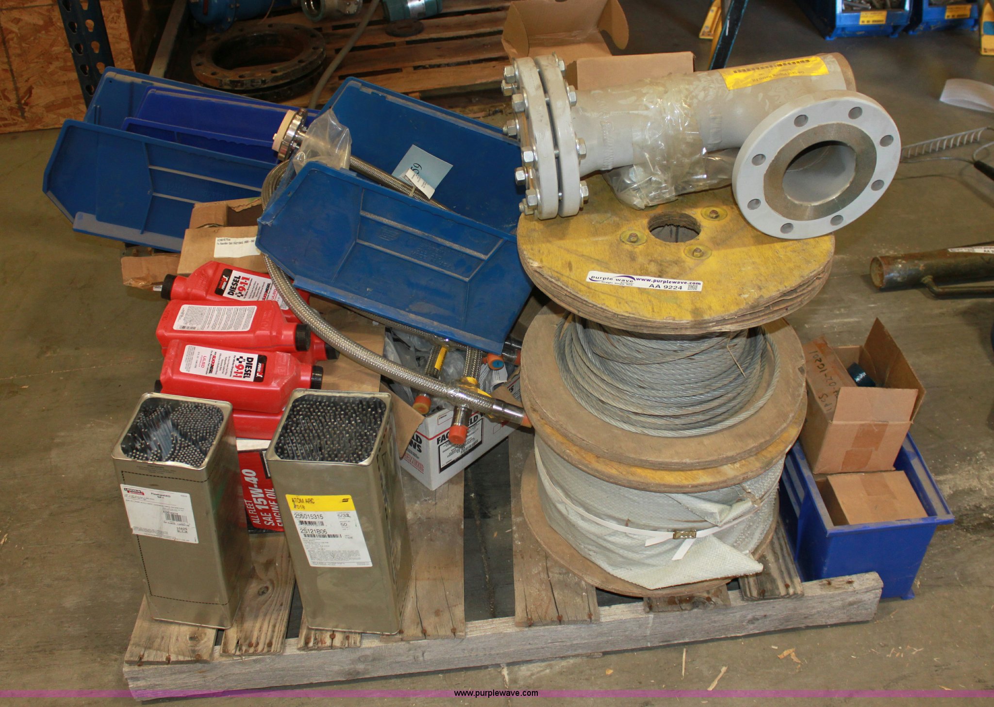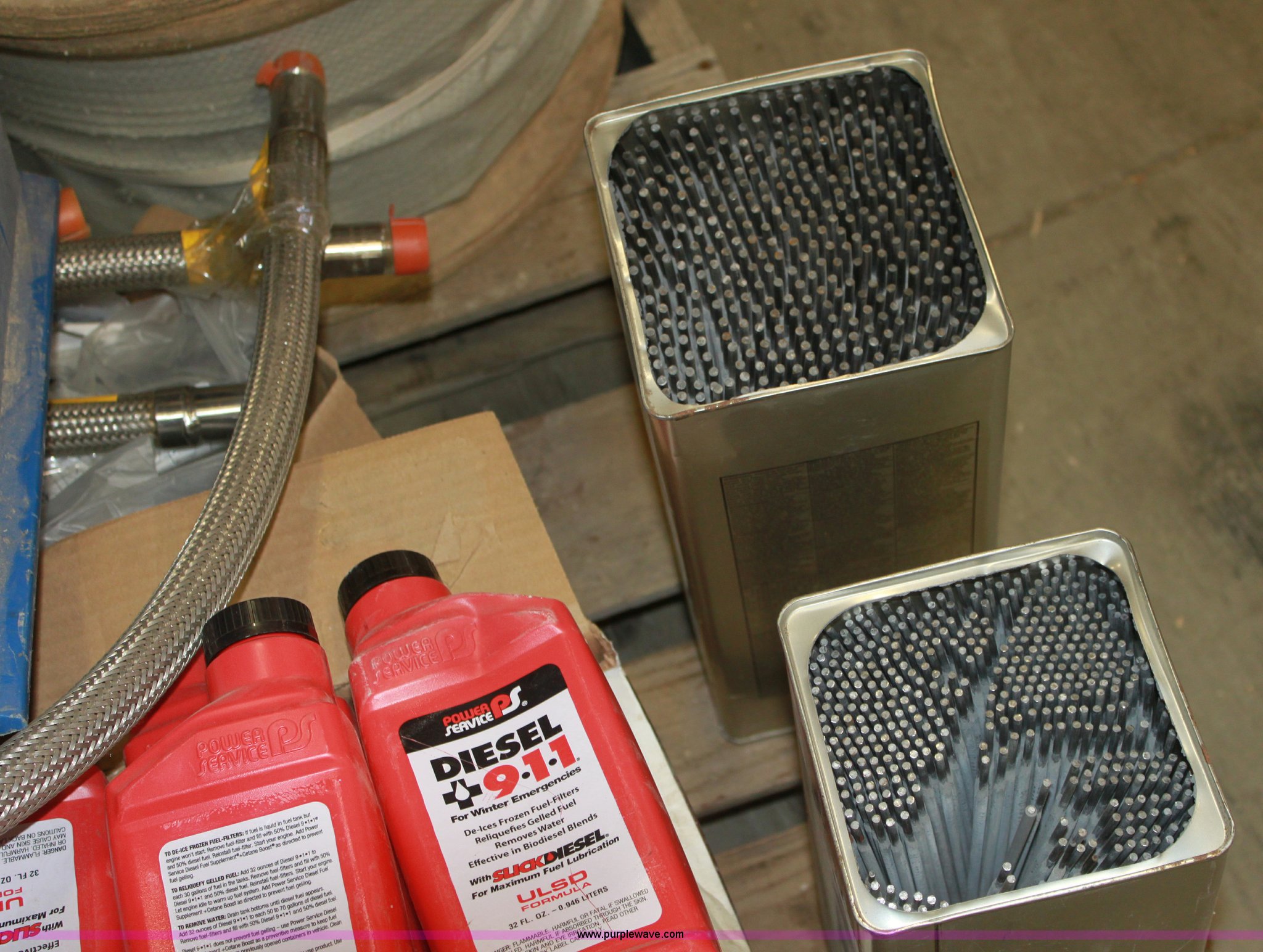 Purple Wave is selling a used Tools in Kansas. This item is a Assorted tools and cable with the following: Partial spool of 3/8" steel cable, (2) 1000' spools of 3/8" steel cable, (2) Allanson 120V transformers, Unused, Fuel can, (8) quarts of Mac-1 15W-40 oil, (7) 32 oz bottles of Diesel Plus 911 power service, Open box of 6010 1/8" welding rod, Open box of 7018-H4R welding rod and more
