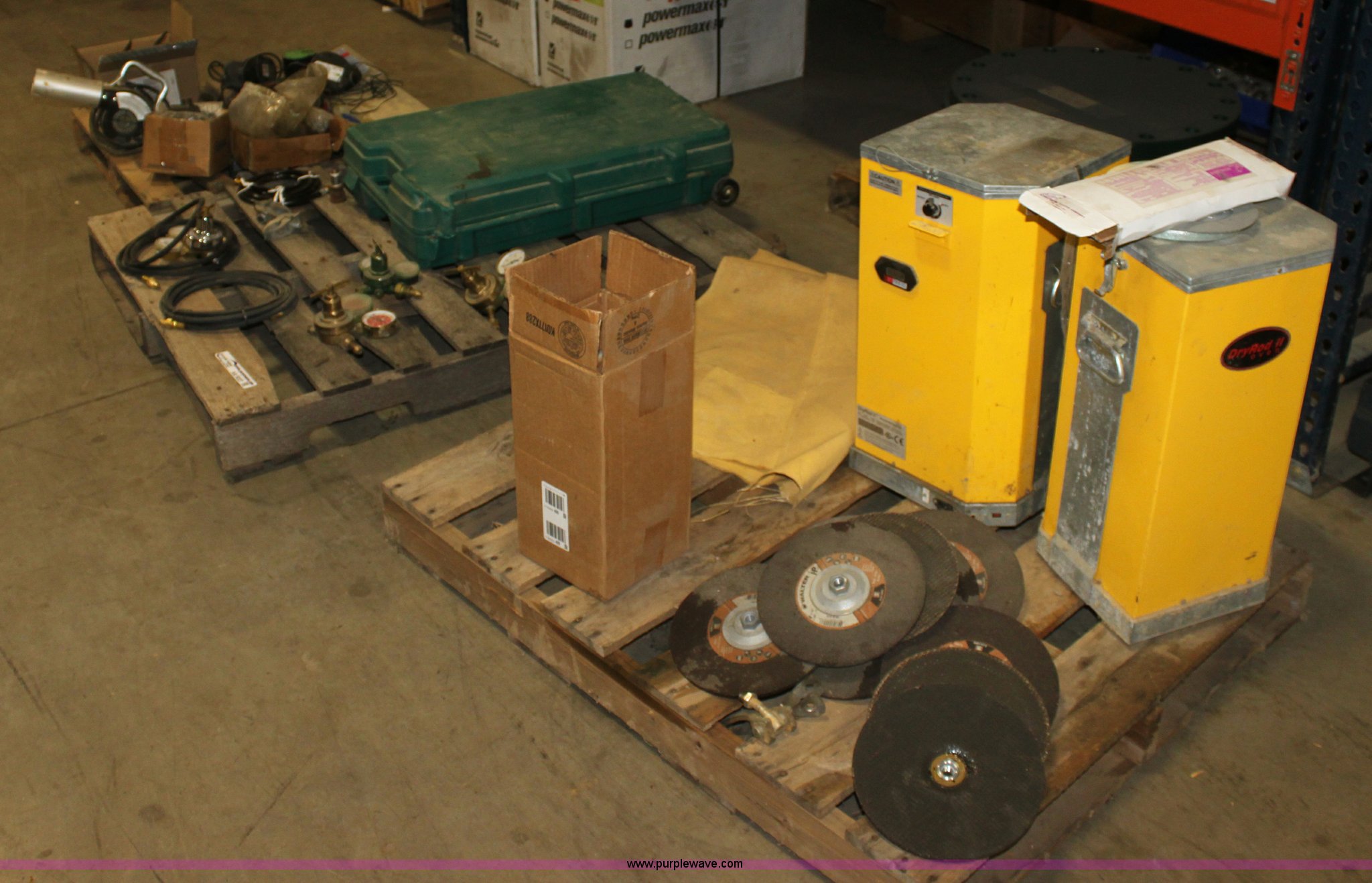 Purple Wave is selling a used Tools in Kansas. This item is a (3) pallets of assorted tools with the following: Jonnesway 10 ton port-a-power kit, (3) assorted regulators, Unknown operating condition, (11) 9" Walter grinding wheels, (2) Phoenix International Dry Rod II electrode stabilizing ovens and more