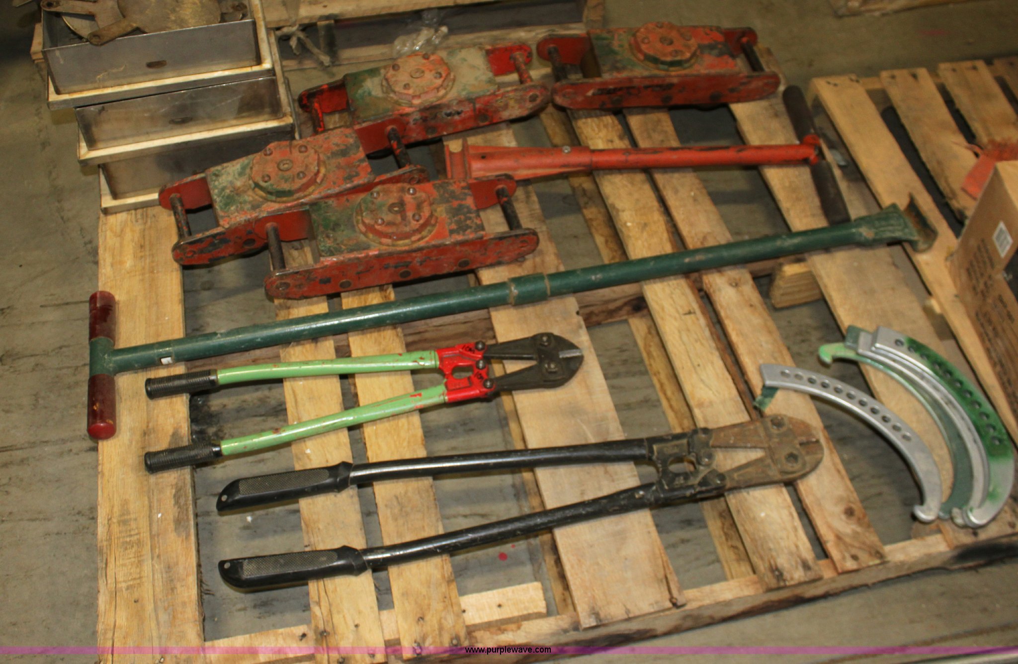 (4) box rollers. Pry bars Various lengths, Large pair of bolt cutters, Small pair of bolt cutters, (2) bar clamps, Assorted drill bits, Assorted hardware and more. Shipping quotes available. ICM. Colwich, KS 67030