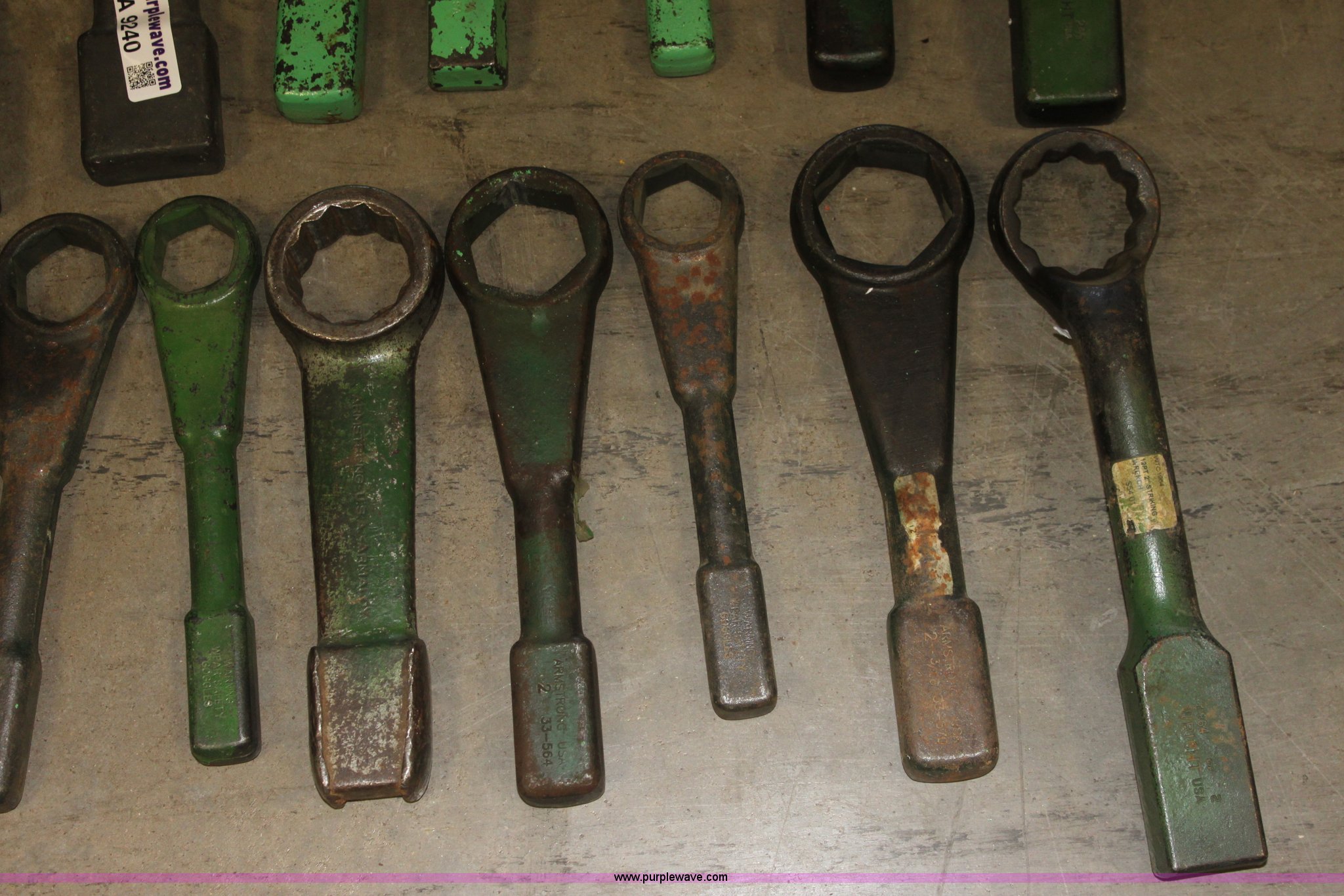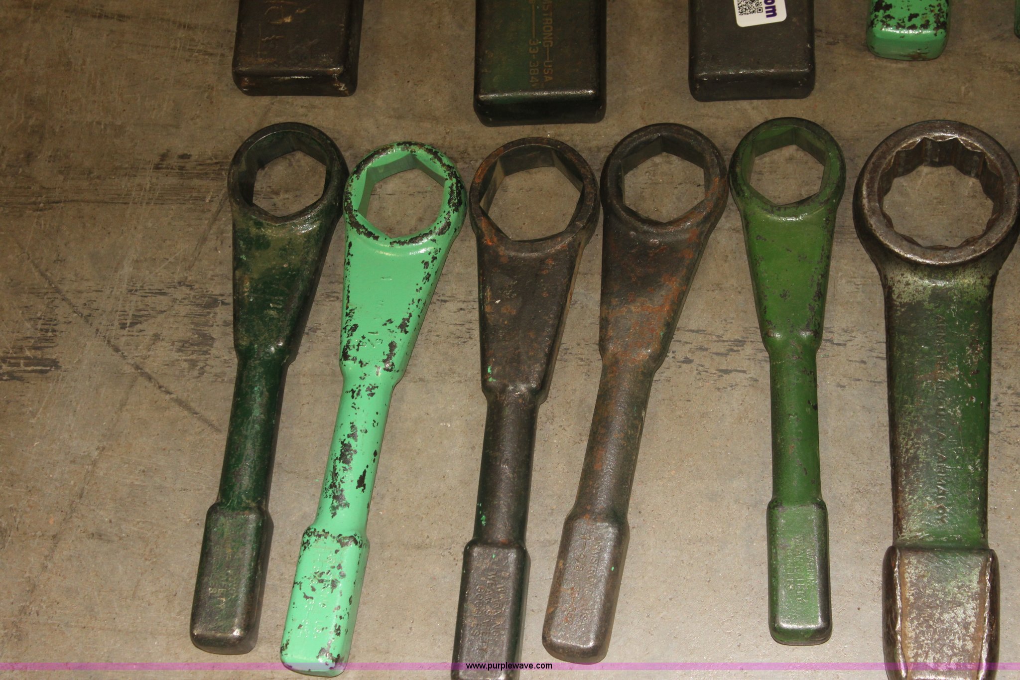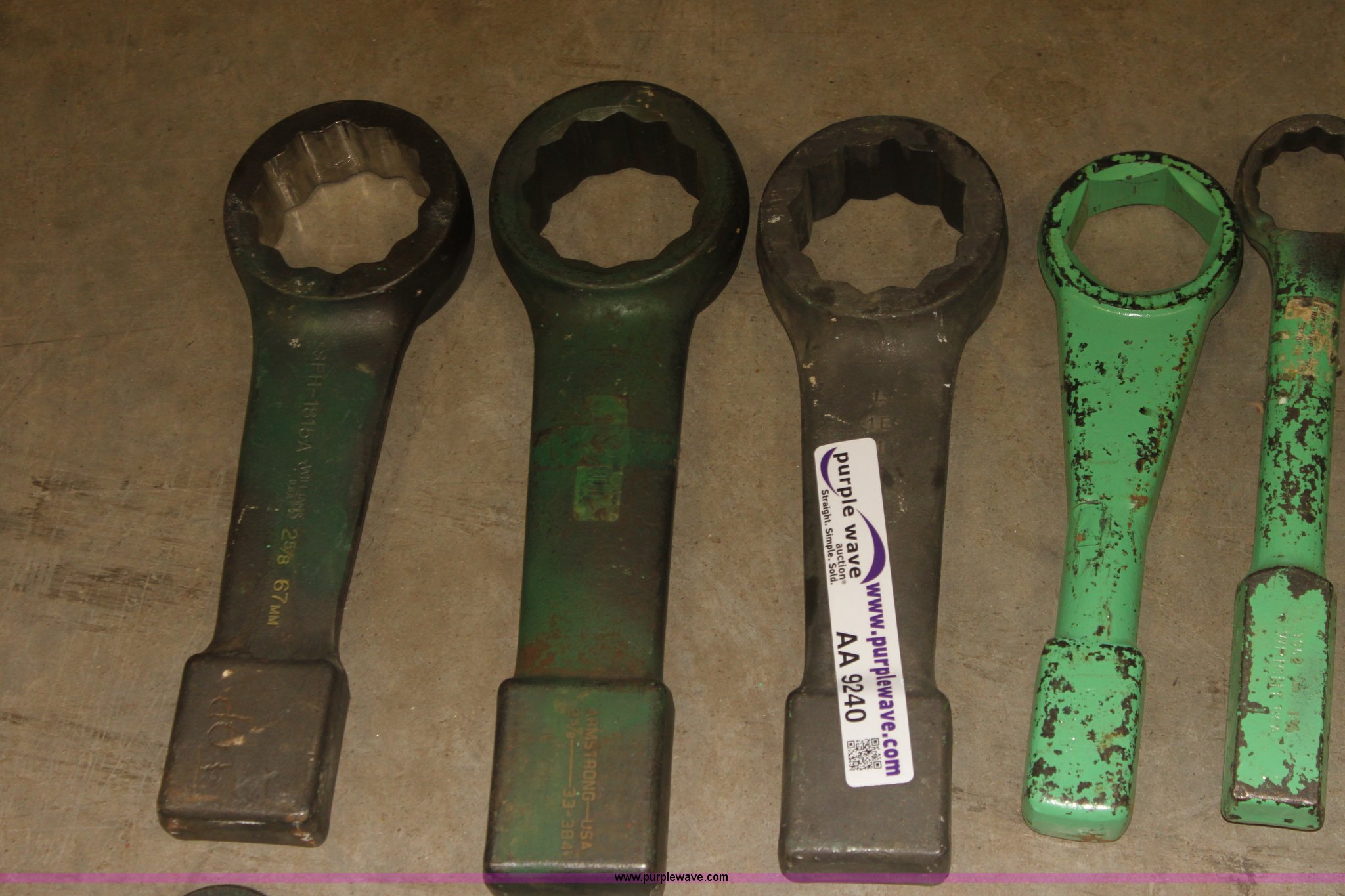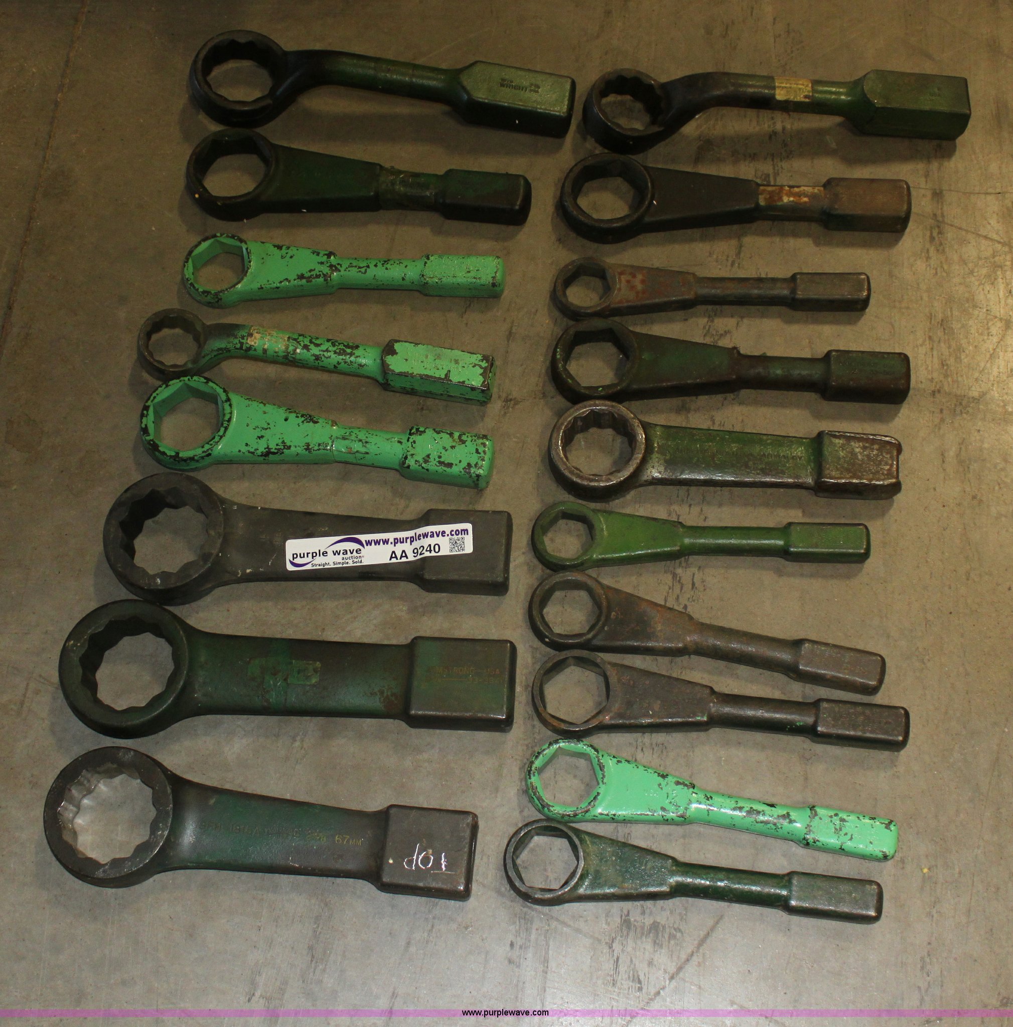 Purple Wave is selling a used Tools in Kansas. This item is a (18) striking wrenches with the following: (3) 2 5/8", (2) 2 3/16", 1 3/8", (2) 1 13/16", (2) 2 3/8", (3) 2", (2) 1 7/16", (3) 1 5/8"