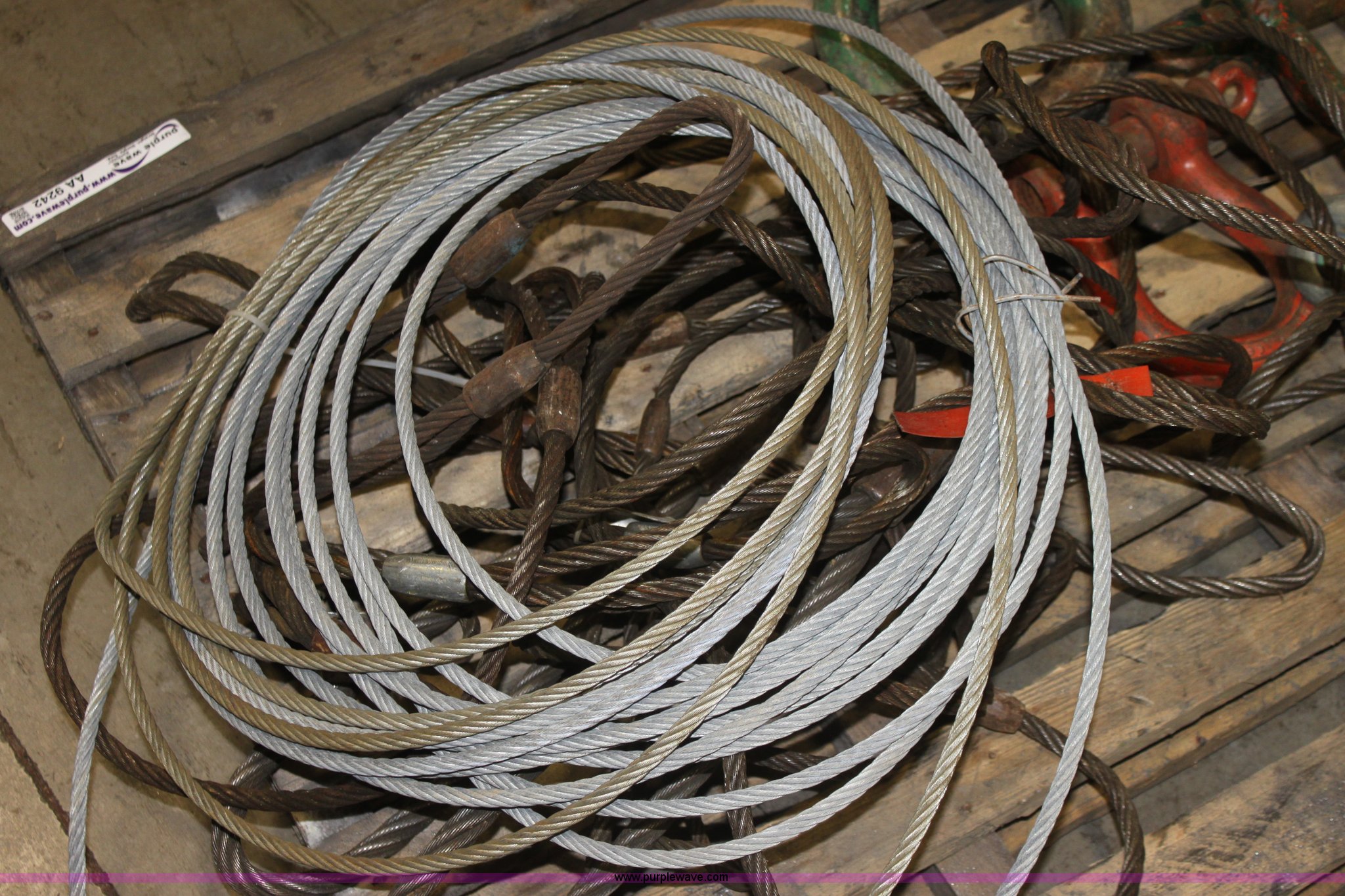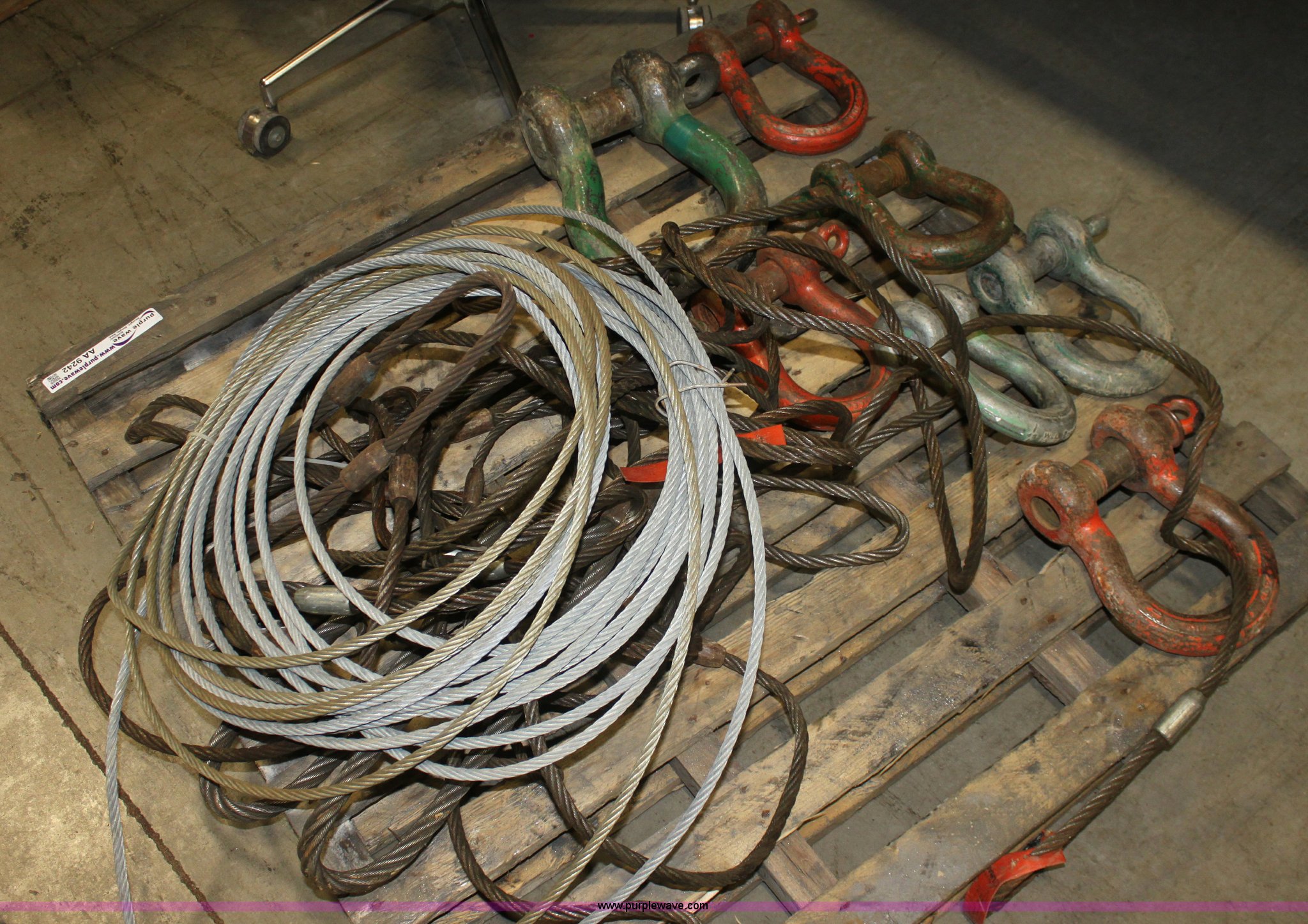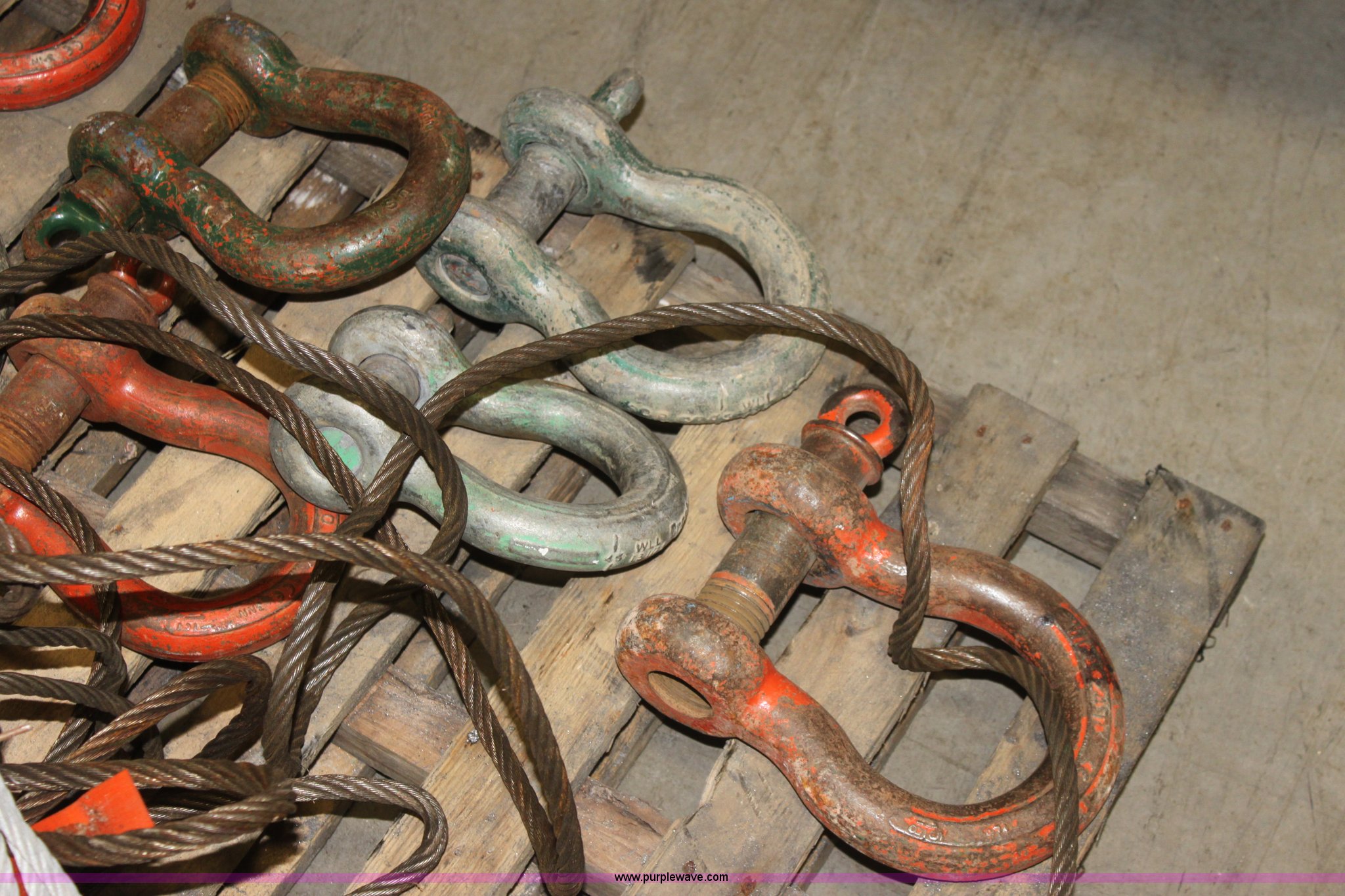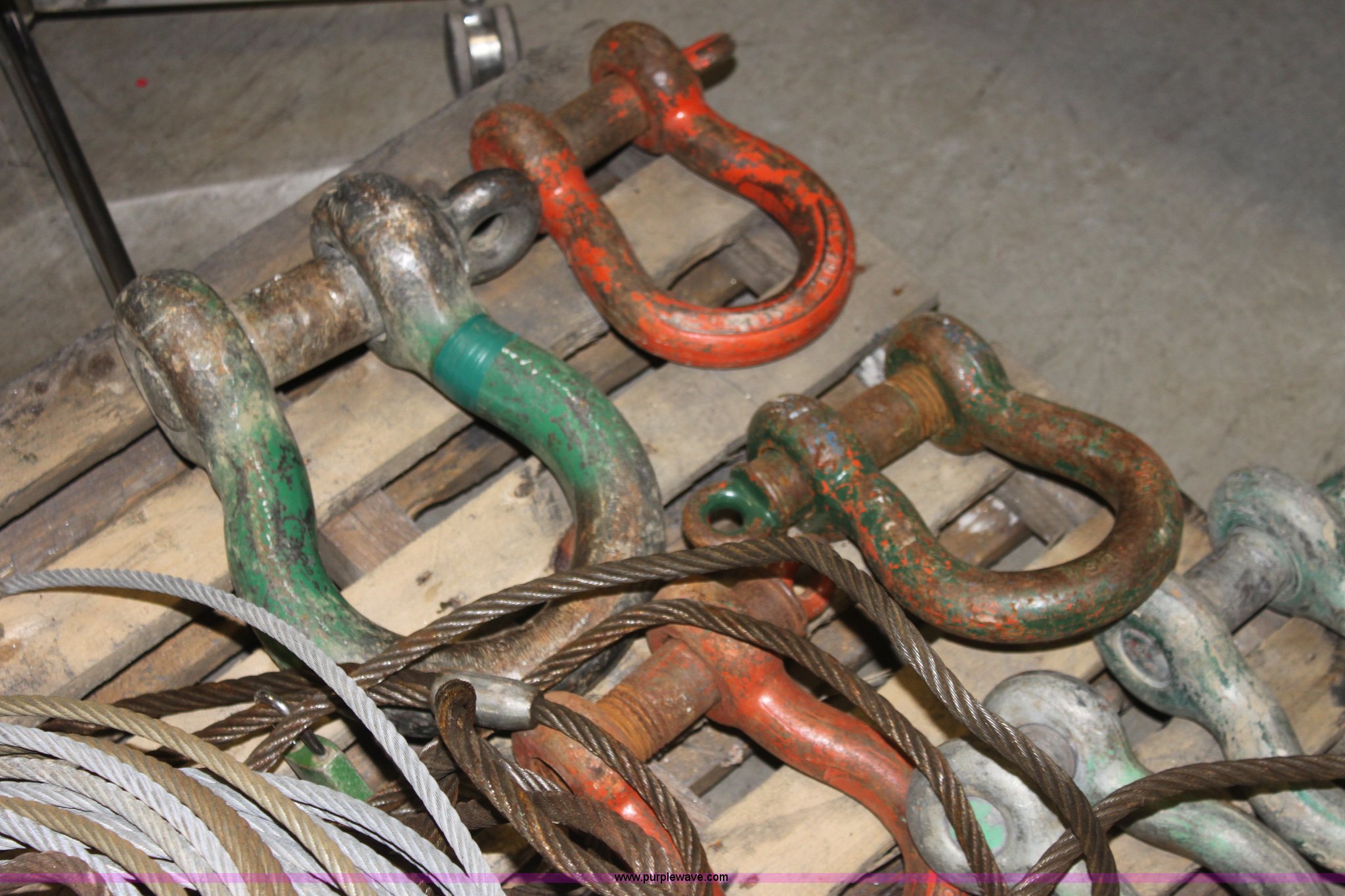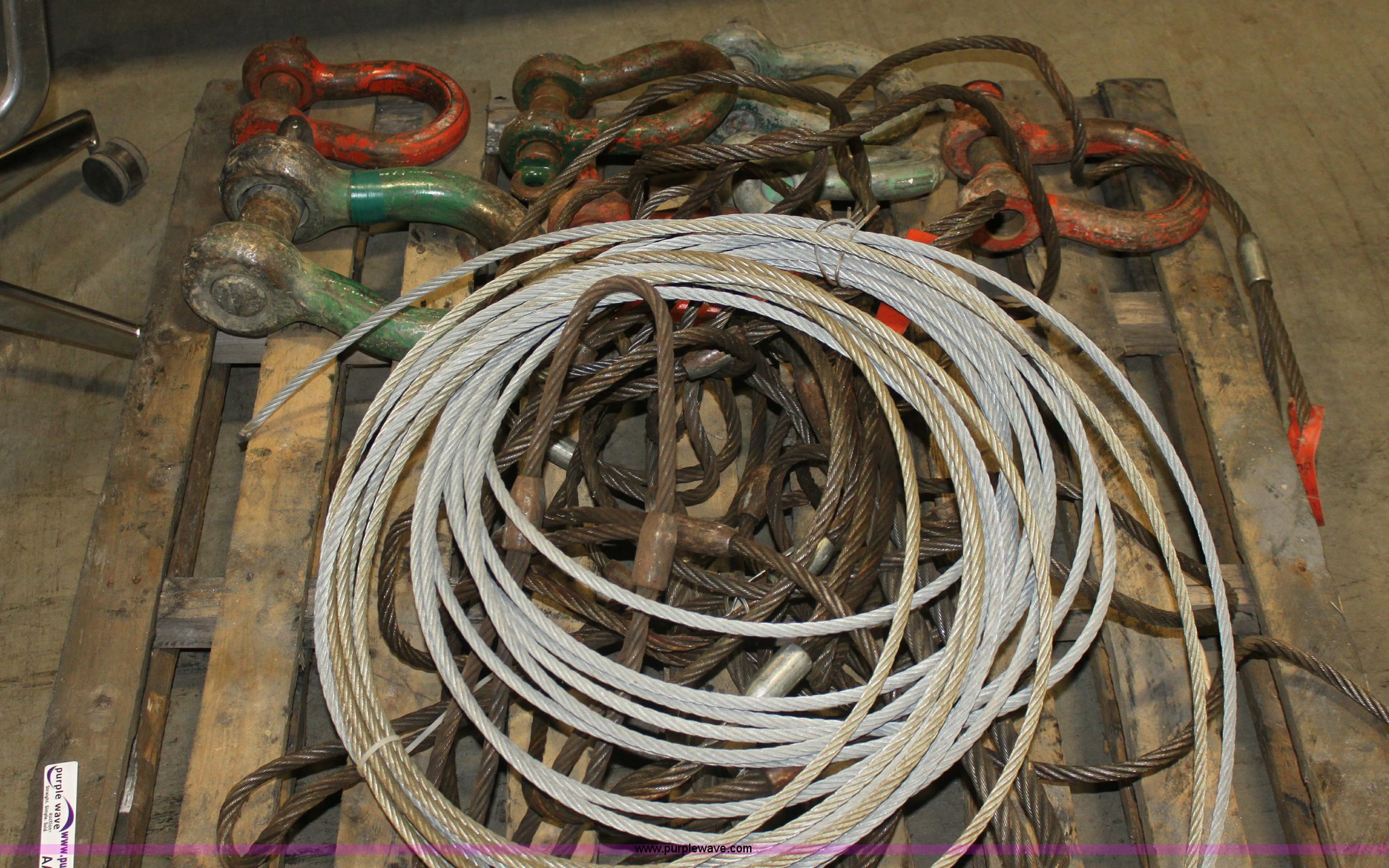 Purple Wave is selling a used Tools in Kansas. This item is a Assorted cable and chokers with the following: 40 ton clevis, (4) 20 ton clevises, 10 ton clevis
