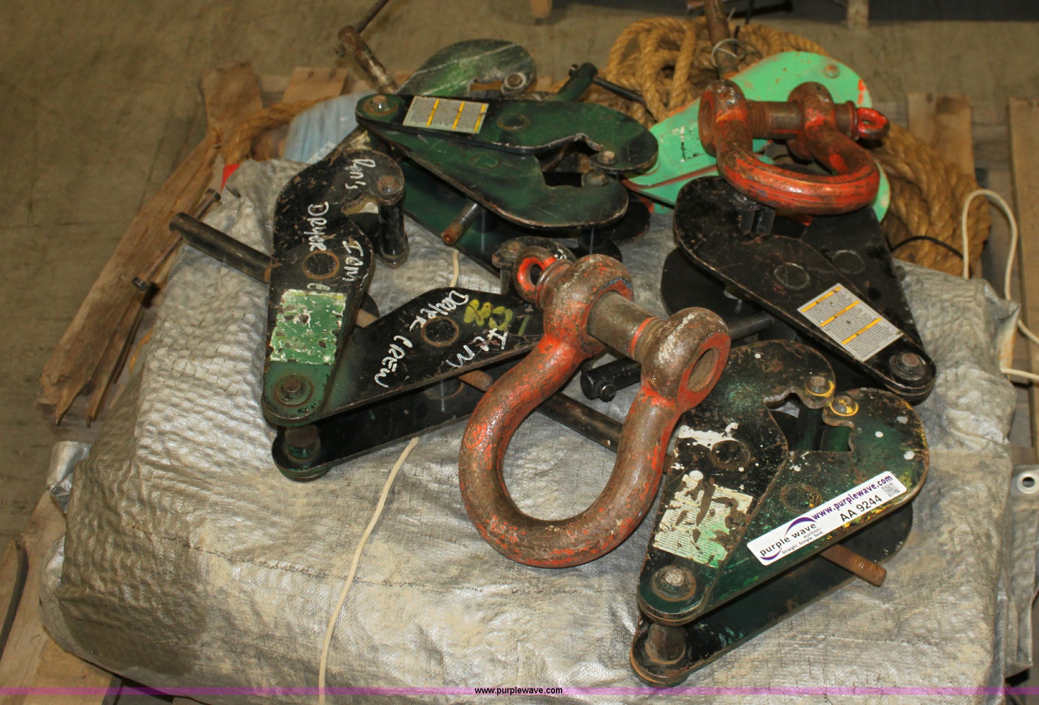 Purple Wave is selling a used Tools in Kansas. This item is a Assorted tools with the following: (6) three ton beam clamps, (2) clevises, Assorted rope, Trap