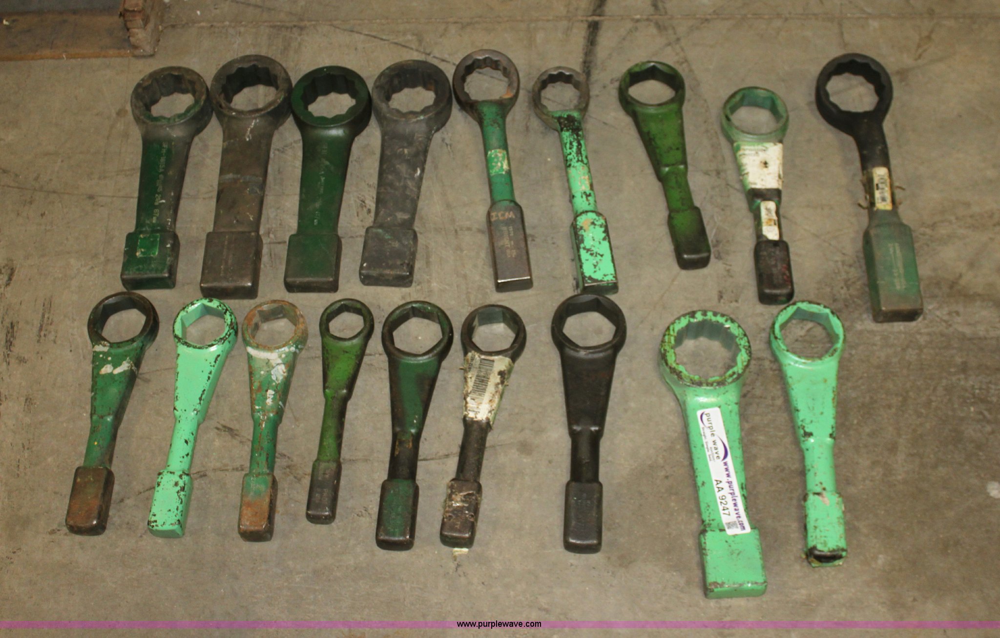 Purple Wave is selling a used Tools in Kansas. This item is a (18) striking wrenches with the following: (4) 2 3/16", (3) 2", 1 5/8", (3) 2 3/8", (6) 2 5/8", 1 1/2"