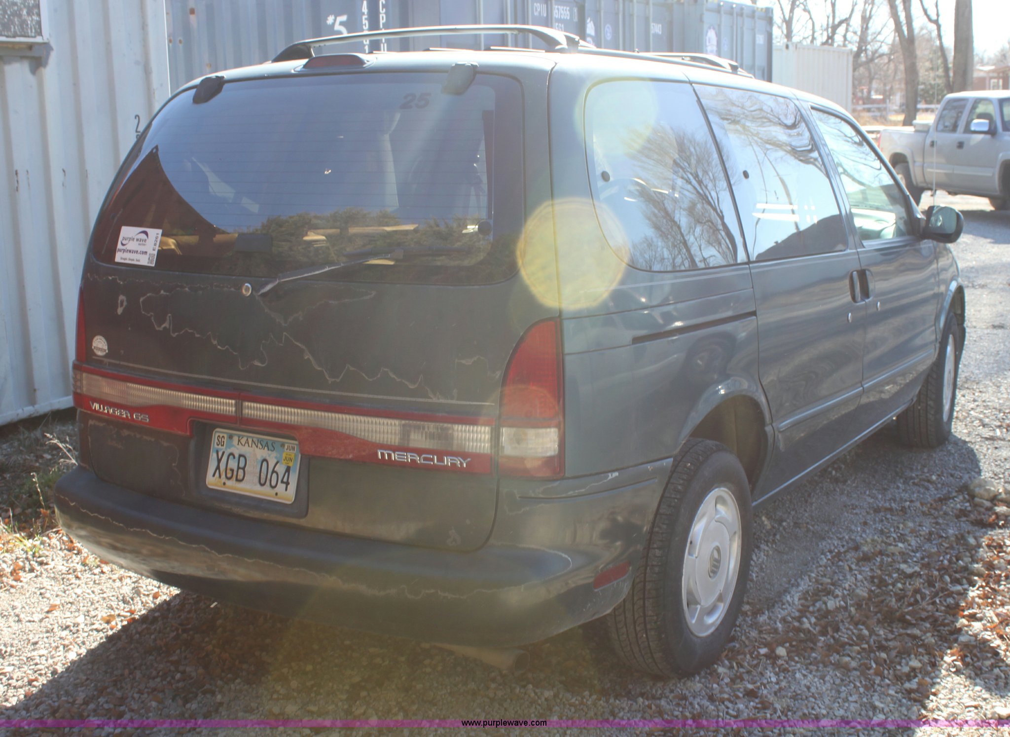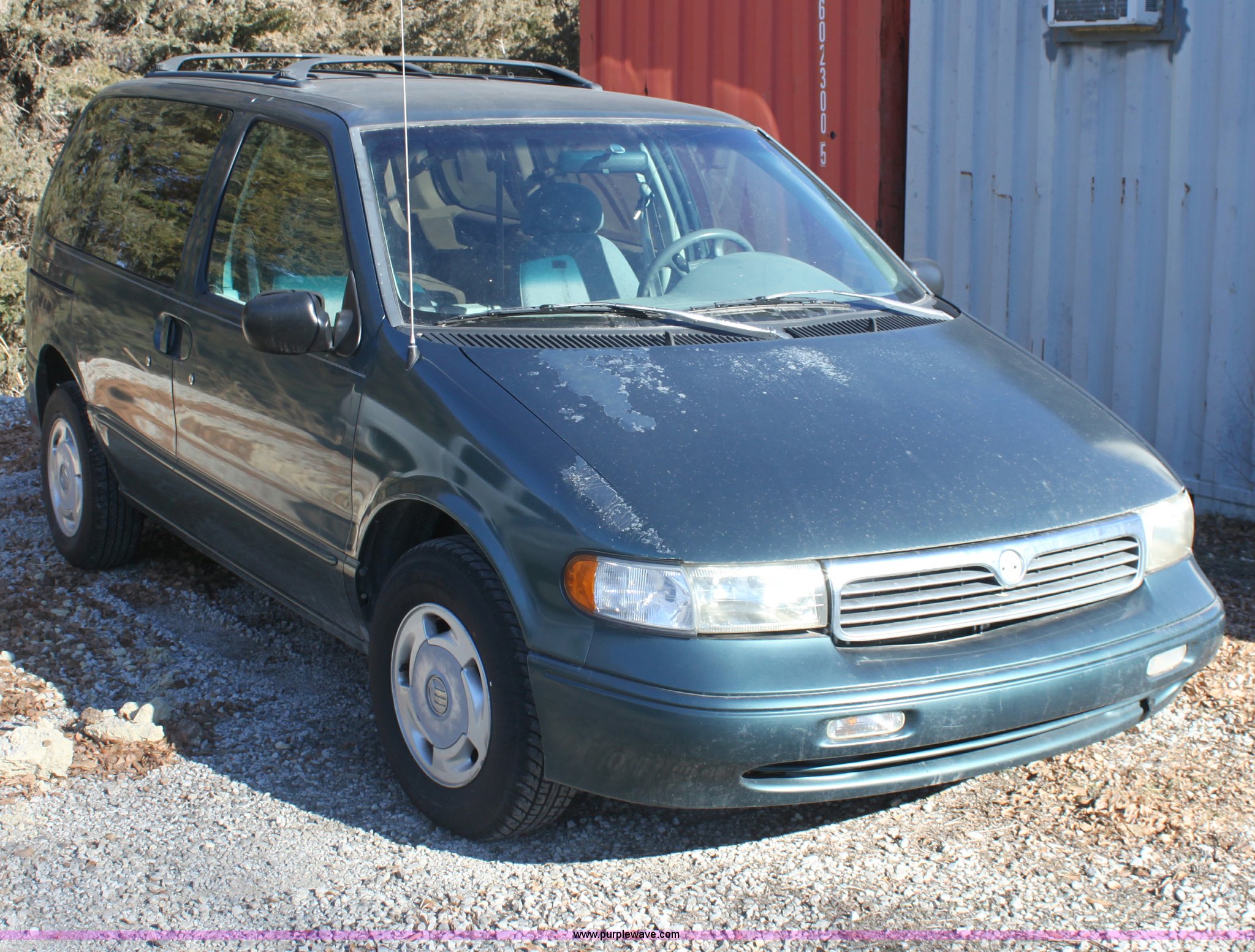 Purple Wave is selling a used Passenger Vehicle in Kansas. This item is a 1997 Mercury Villager GS with the following: 162,391 miles on odometer, 3.0L V6 SOHC 12V gas engine, Automatic transmission, AC and heat, Tilt, Cruise, AM/FM/cassette, Power windows and locks, 205/75R15 tires, Interior/exterior cosmetic damage, Decals will be removed