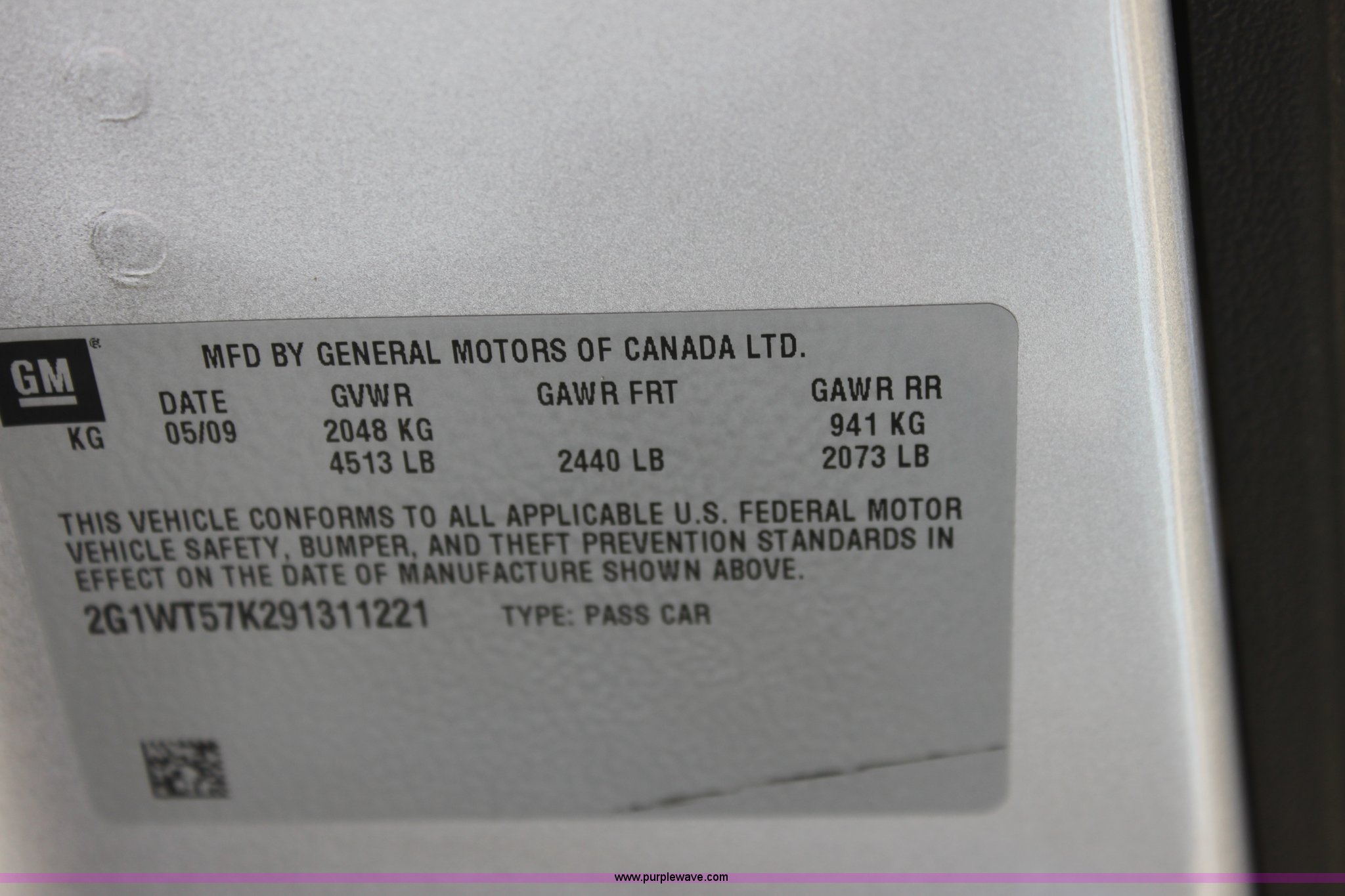 Purple Wave is selling a used Passenger Vehicle in Kansas. This item is a 2009 Chevrolet Impala LT with the following: 107,918 miles on odometer, 3.5L V6 OHV 12V FFV gas engine, Flex fuel, Automatic transmission, AC and heat, Tilt, Cruise, AM/FM/CD, Power windows, locks, and mirrors, Cloth interior, 225/60R16 tires, Interior/exterior cosmetic damage, Decals will be removed