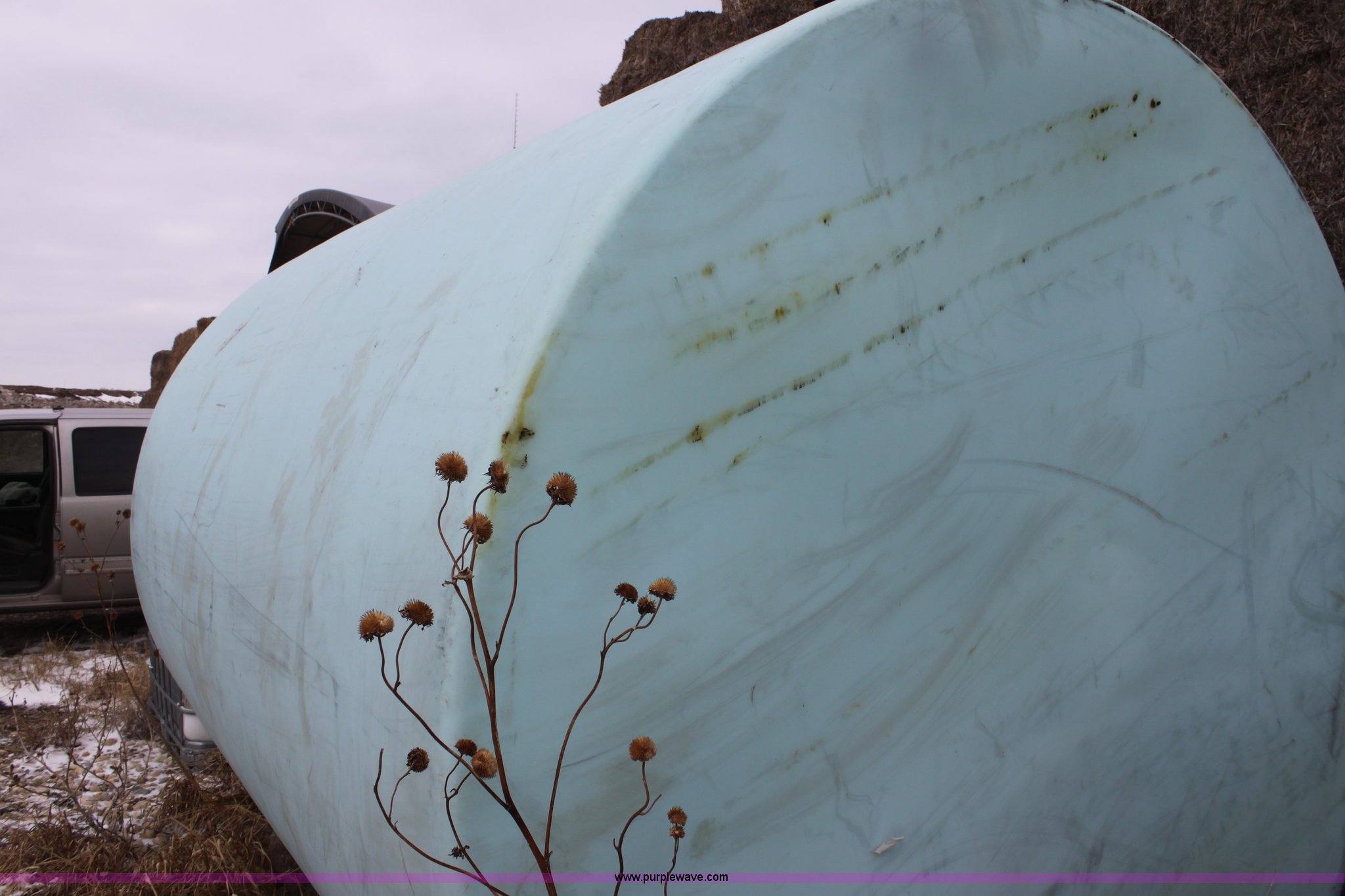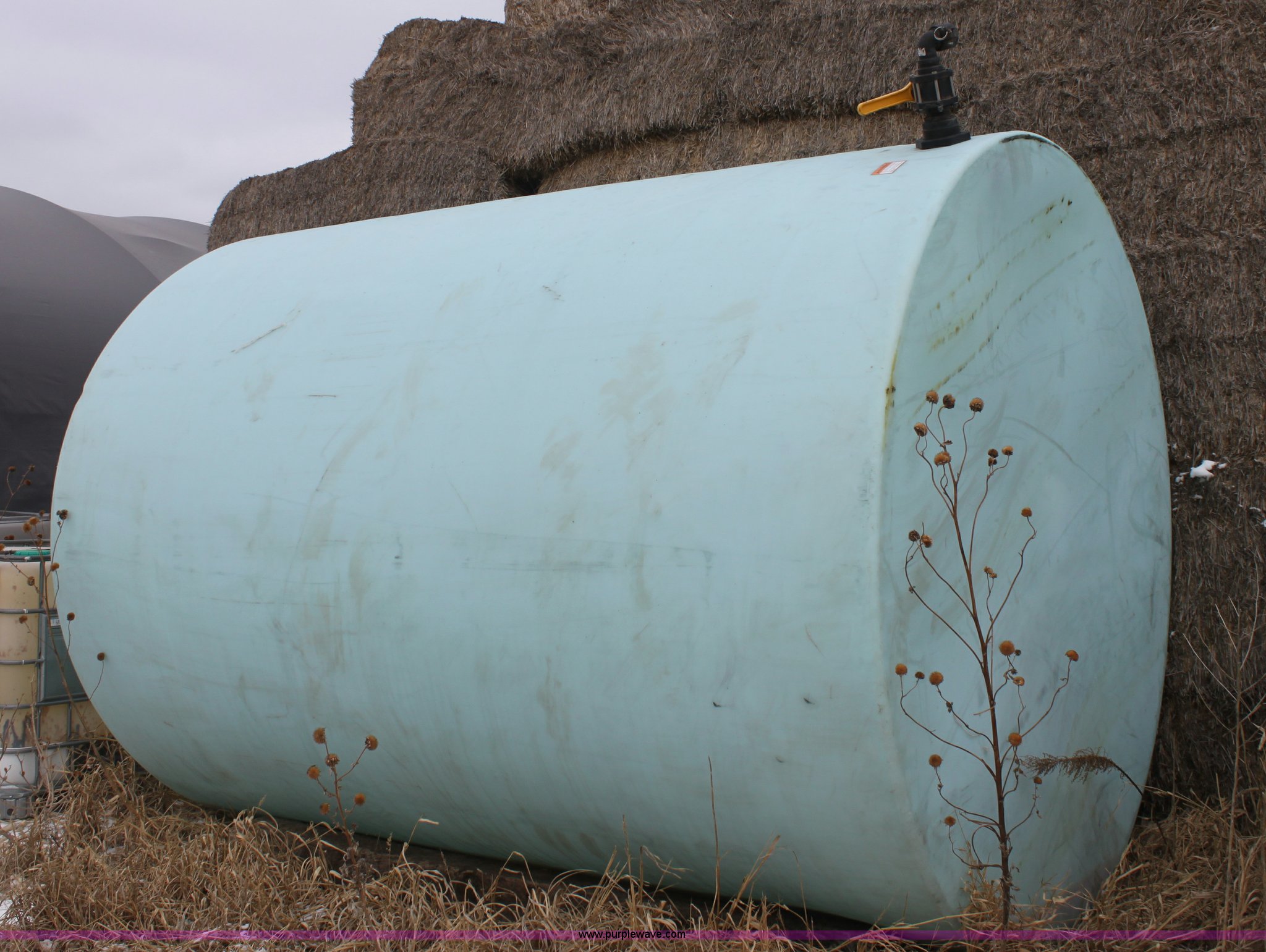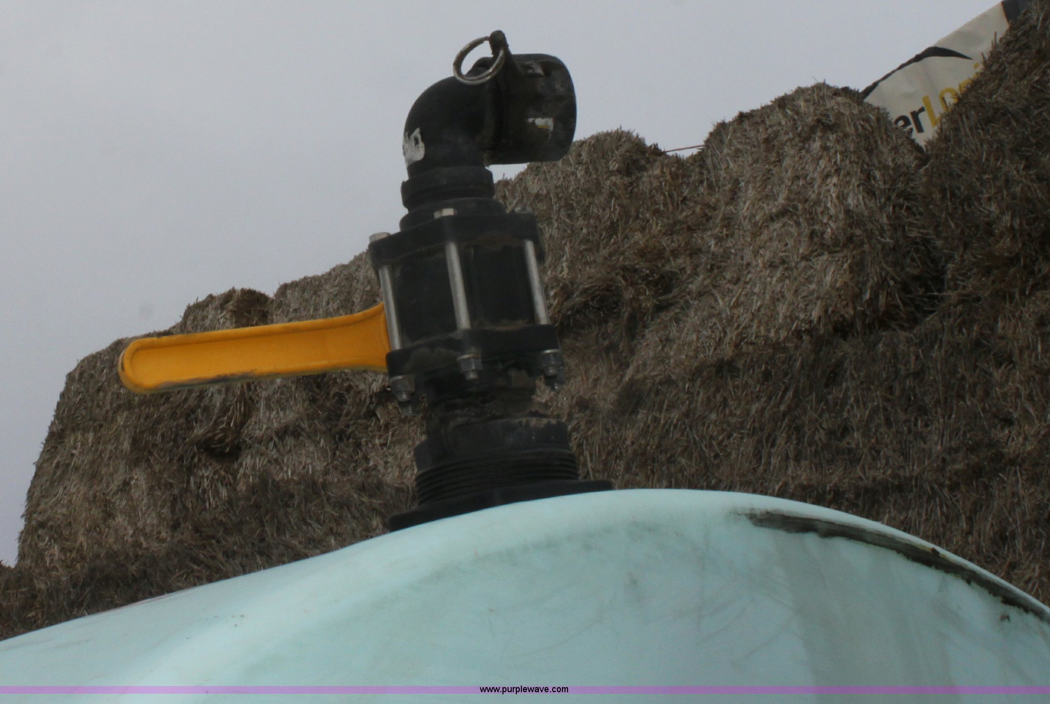 Purple Wave is selling a used Tanks in Kansas. This item is a 5,000 gallon vertical poly tank with the following: 2" banjo plumbing, 2" cam-lock female fitting
