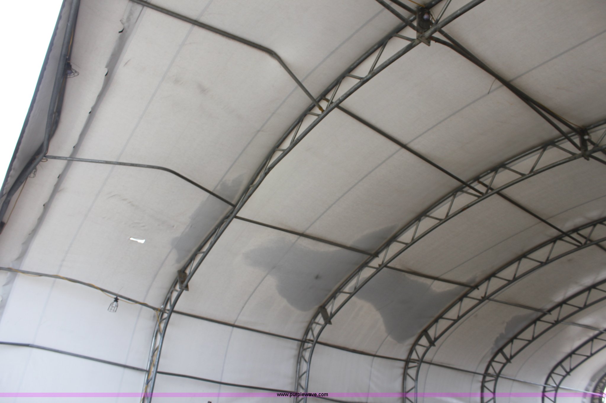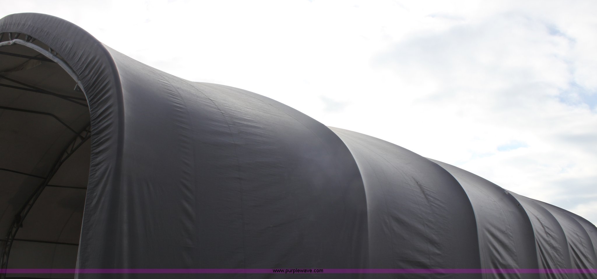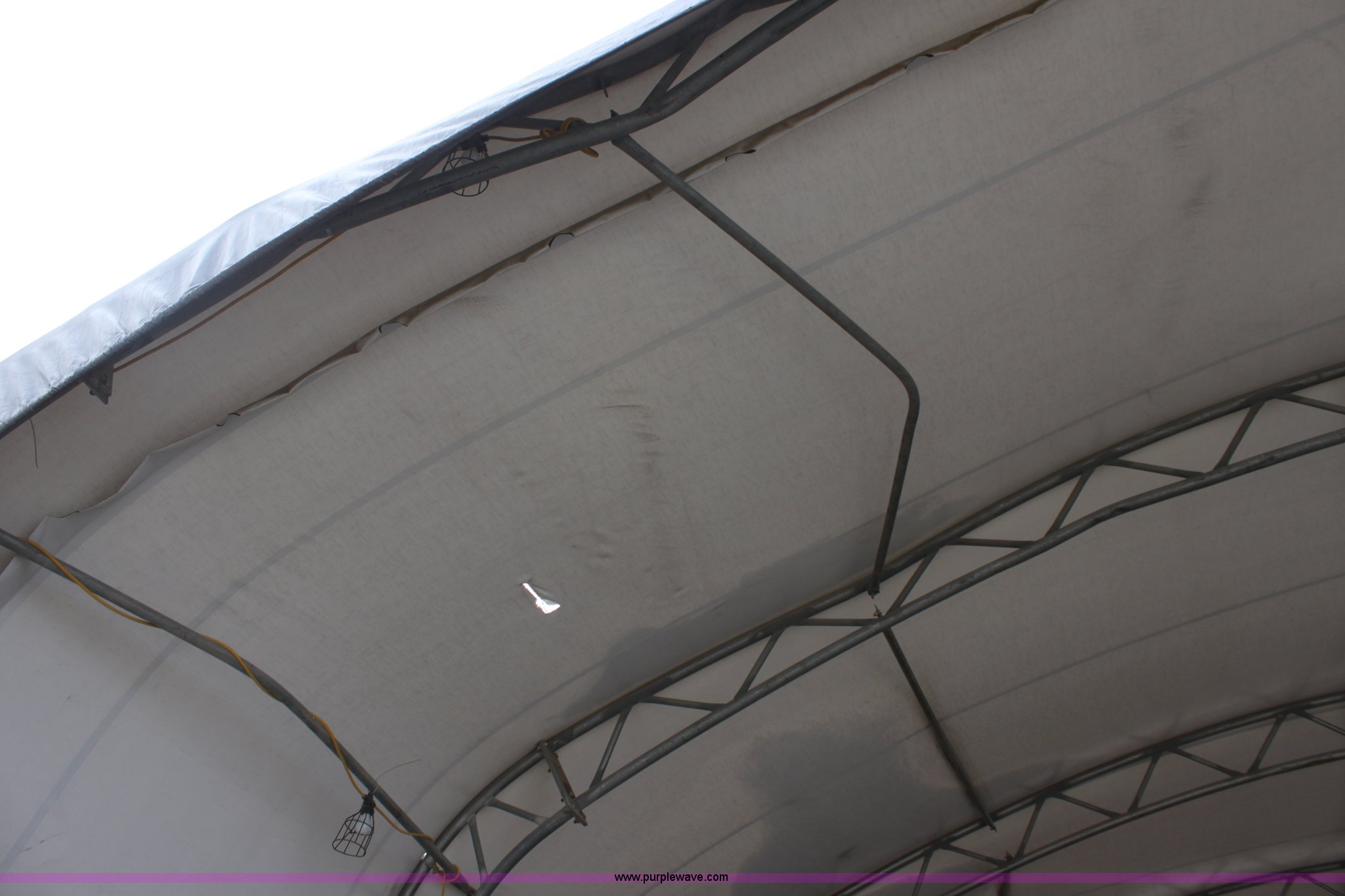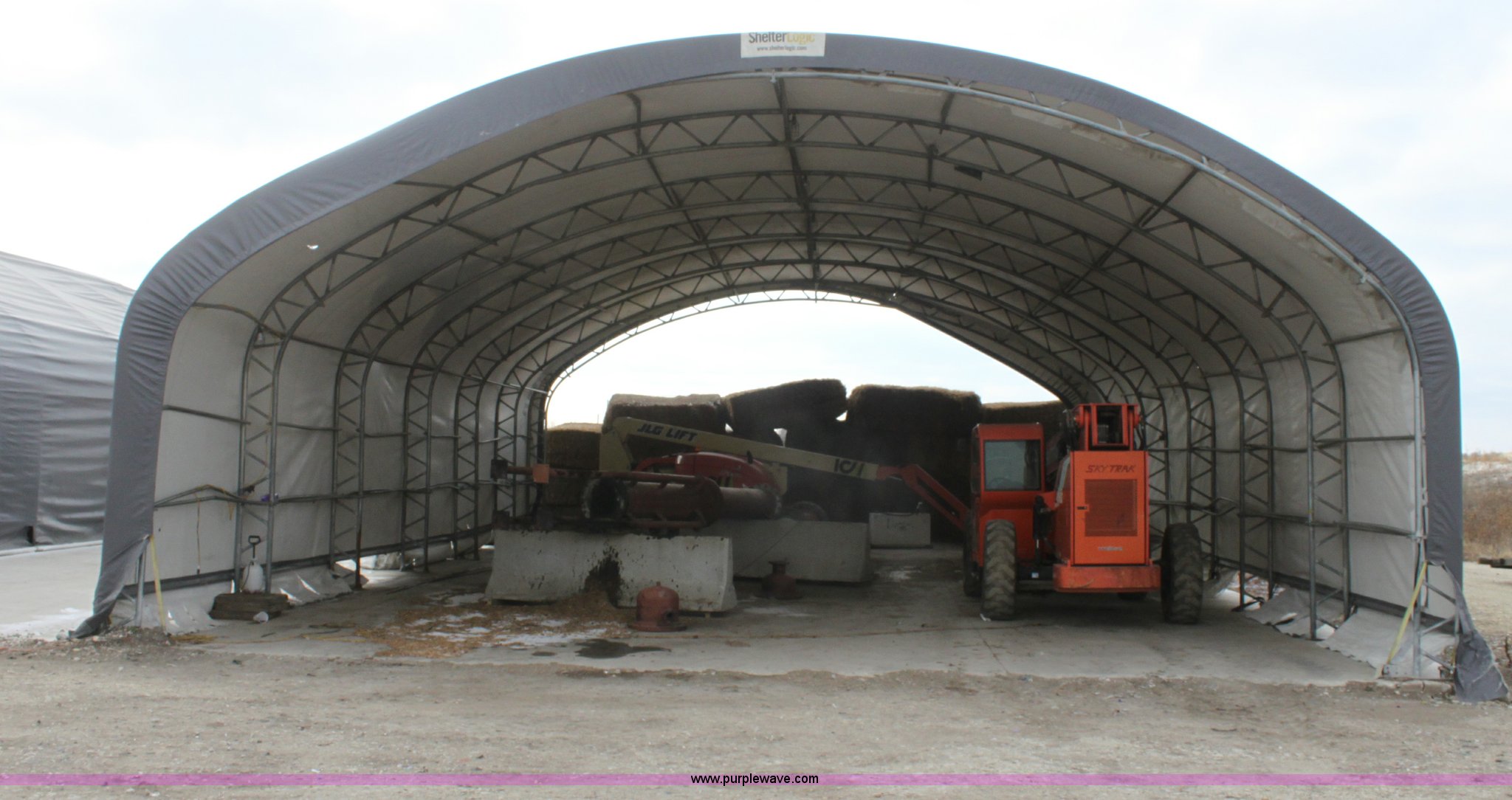Shelter logic tent building. 40' x 60' x 18'H, 2010 canvas Has holes, Bolt together frame Some bent, Contents not included. Buyer is responsible for removal must have proof of a $1,000,000 liability insurance. Must be removed within 30 days. Shipping quotes available. ICM. Colwich, KS 67030