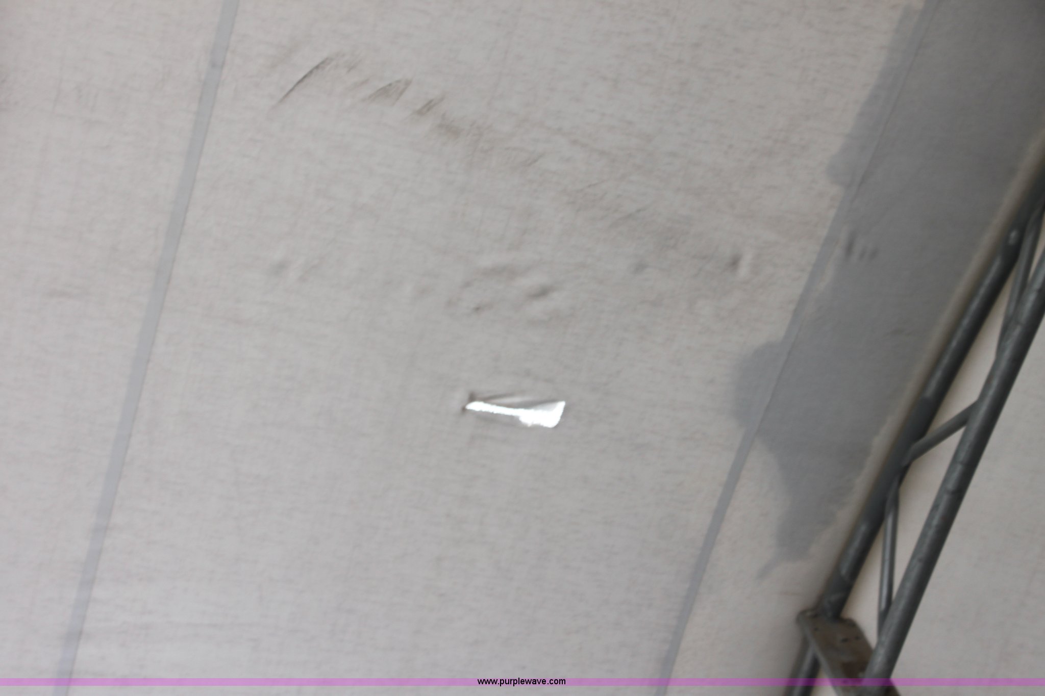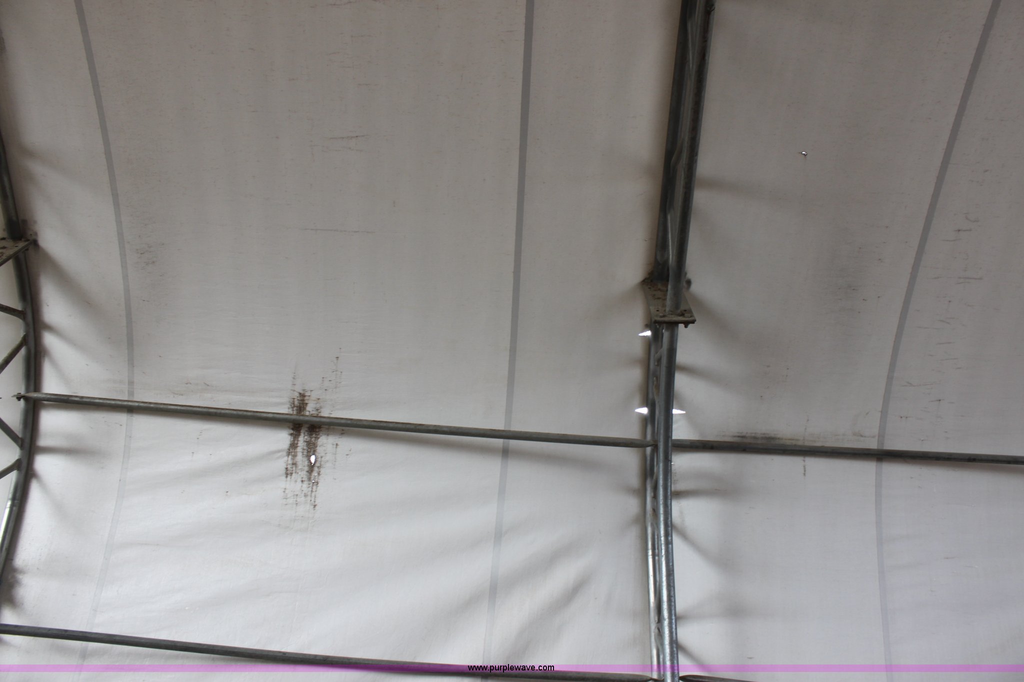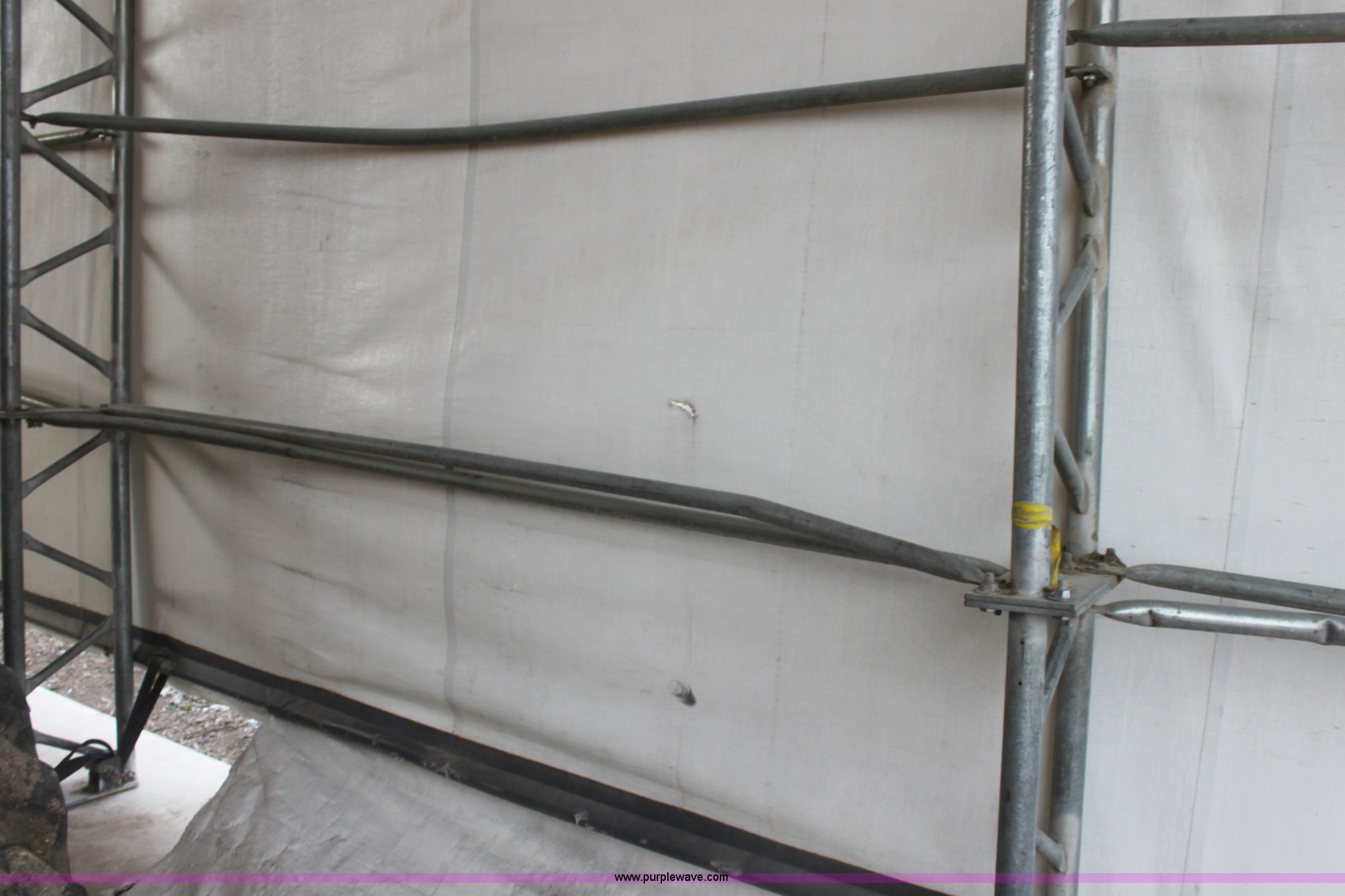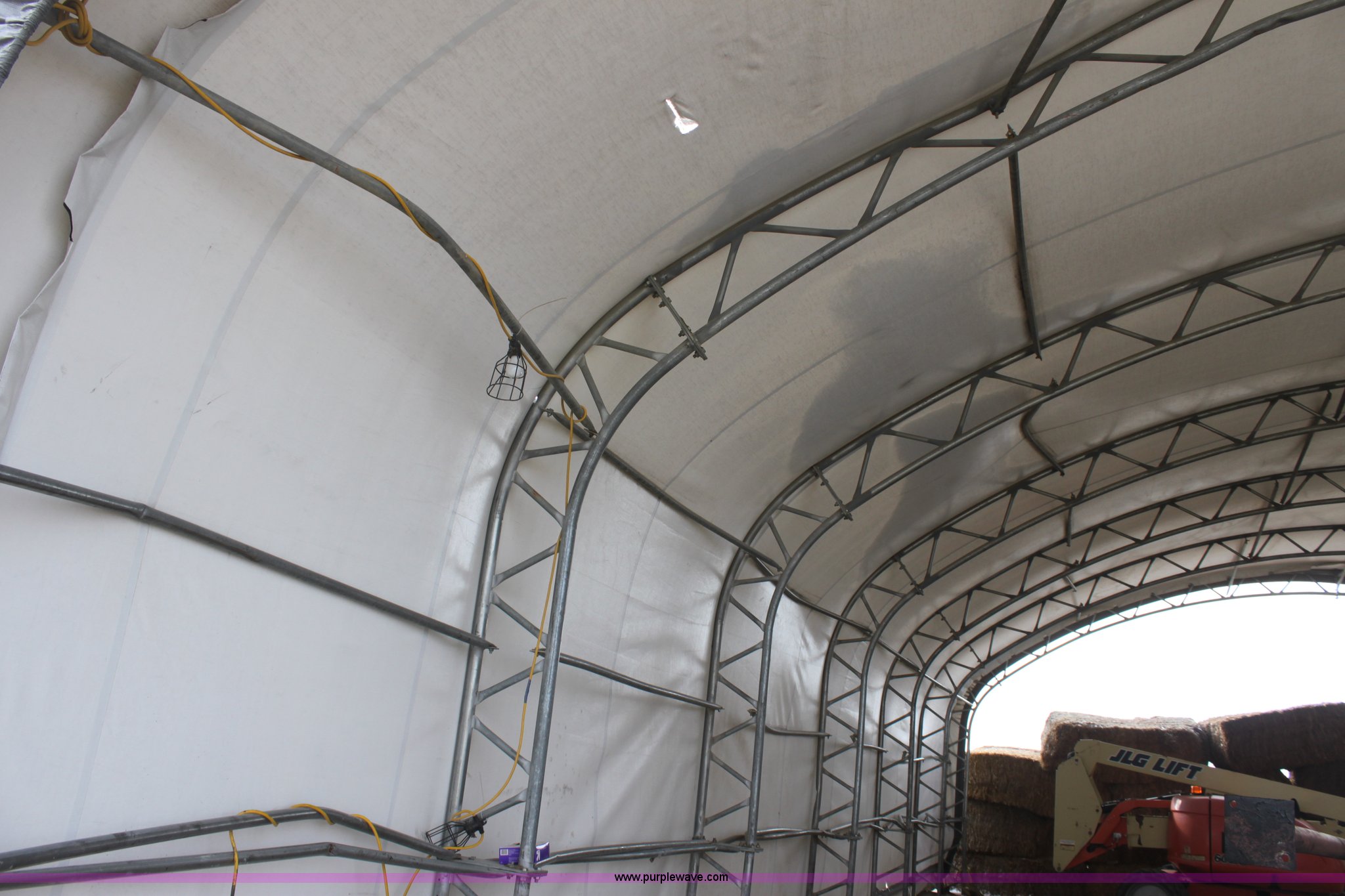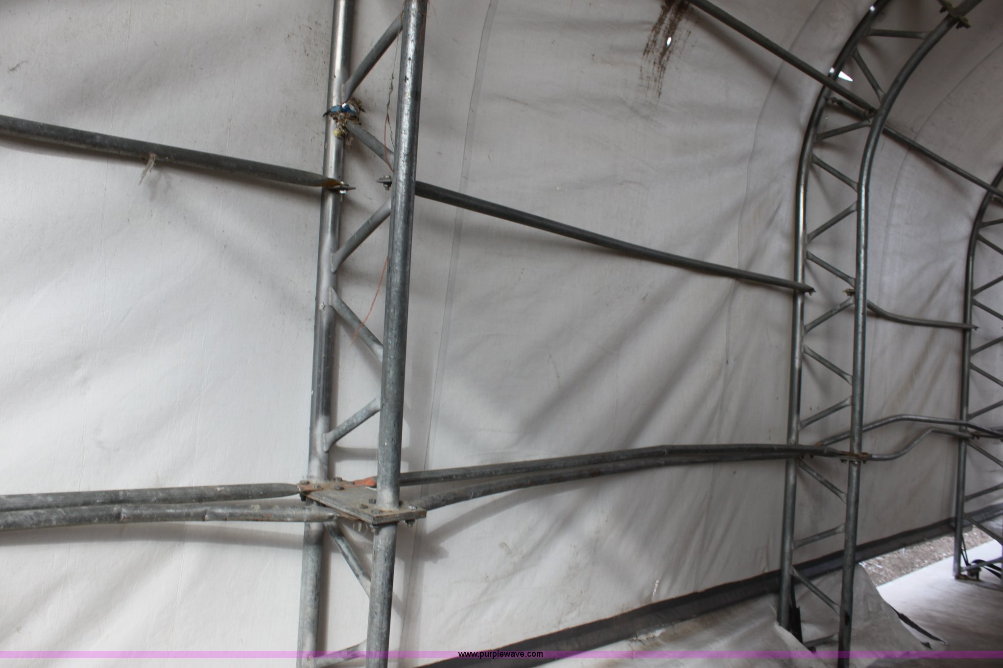 Shelter logic tent building. 40' x 60' x 18'H, 2010 canvas Has holes, Bolt together frame Some bent, Contents not included. Buyer is responsible for removal must have proof of a $1,000,000 liability insurance. Must be removed within 30 days. Shipping quotes available. ICM. Colwich, KS 67030